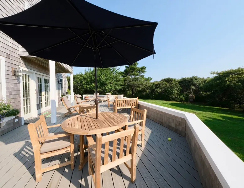 The property is conveniently sectioned off into two distinct living areas, a three bedroom main house and separate addition with King bedroom, two full bathrooms, laundry, and kitchenette. The property offers a lovely first floor primary suite, spacious kitchen, open family room, and an office with ensuite, easily converted to additional guest room. Surrounded by a private front yard and a large back yard, this house is ideal for all of your summer activities! Relax on the back deck after a sunny day at the beach or a bike ride on the nearby Polpis bike path. This lovely home is the perfect Nantucket respite and is ready to be enjoyed this summer! 14 day minimum!