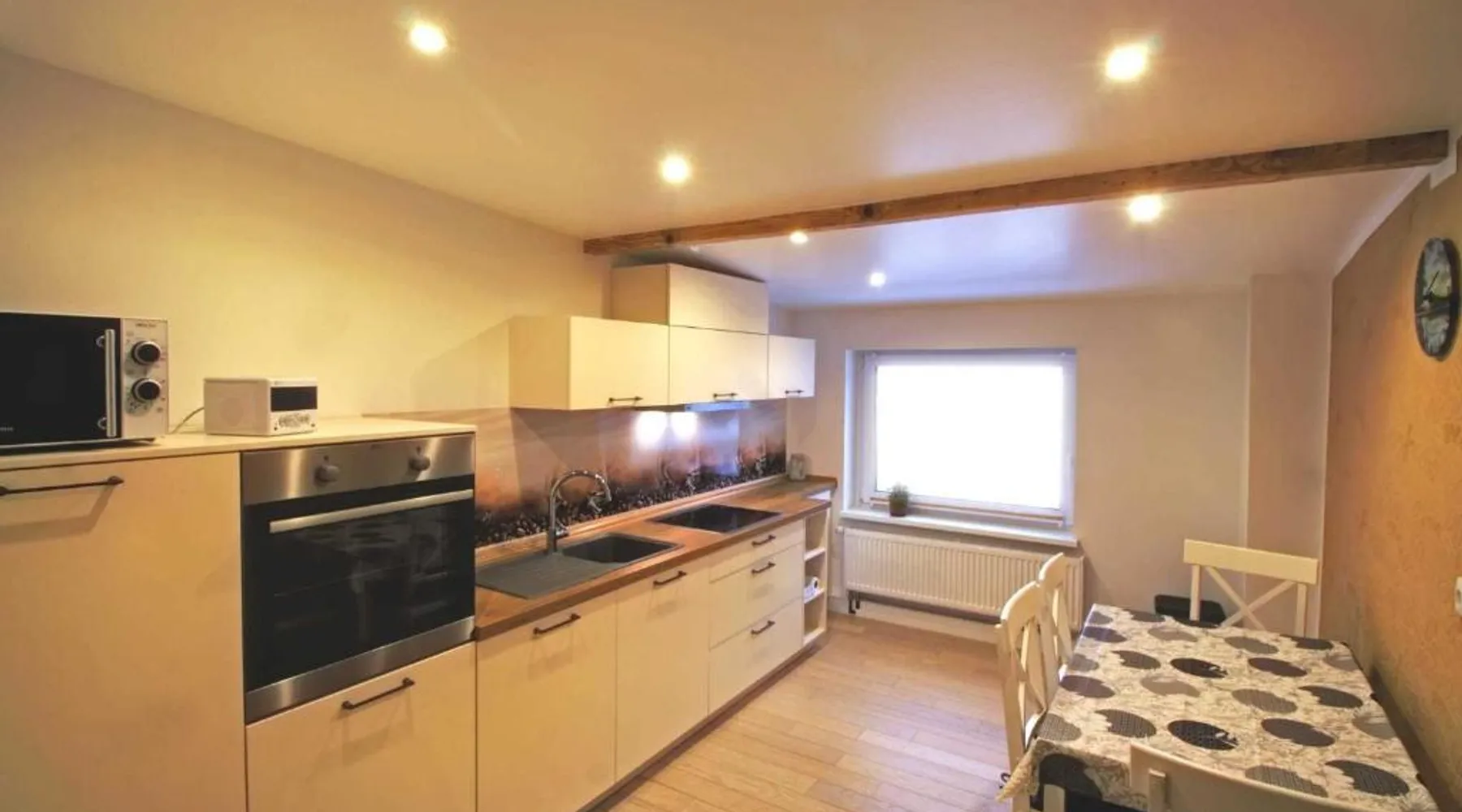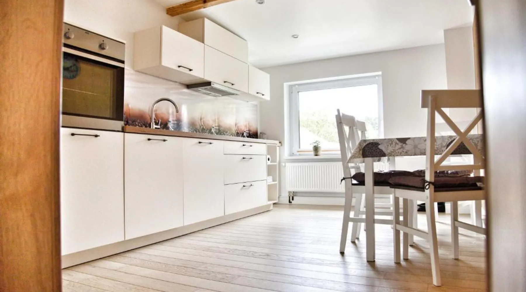 Spacious Accommodations: Ferienwohnung "Küstenliebe" in Ueckermünde offers a spacious apartment with one bedroom, a living room, and a bathroom. Family rooms provide comfort for all guests. Modern Amenities: Guests enjoy free WiFi, a fully equipped kitchen with a refrigerator, microwave, dishwasher, oven, and TV. Additional amenities include a terrace and balcony, hypoallergenic bedding, hairdryer, and shower. Convenient Location: Located 50 mi from Heringsdorf Airport, the apartment is located on Oststrasse. Cycling enthusiasts can explore the surrounding area. This spacious apartment consists of 1 living room, 1 separate bedroom and 1 bathroom with a shower and a hairdryer. Meals can be prepared in the kitchen, which comes with a refrigerator, a dishwasher, an oven and a microwave. This apartment provides heating, a flat-screen TV with cable channels and a terrace. The unit offers 3 beds.