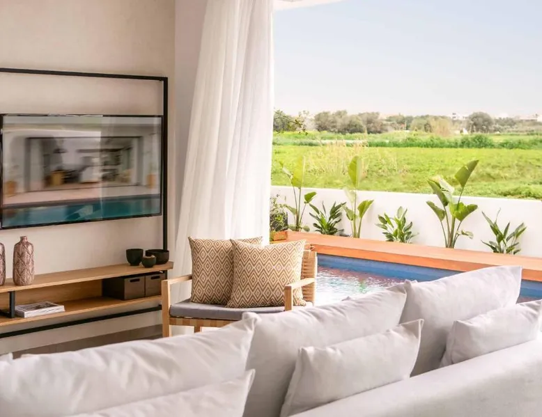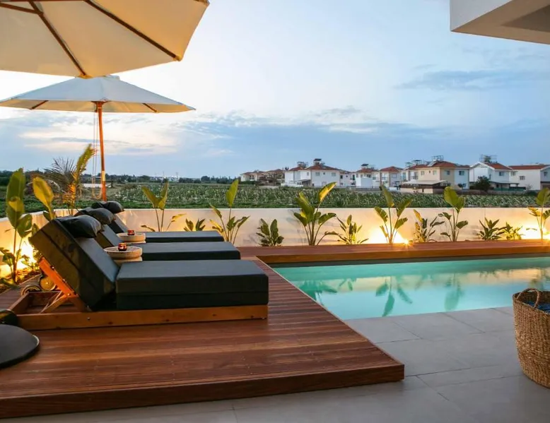 Elegant Accommodations: Lora Pearl Luxury Villa in Vrysoudion, Pernera, Cyprus offers a spacious terrace and an outdoor swimming pool. Guests enjoy free WiFi throughout the property. Modern Amenities: The villa features three bedrooms and three bathrooms, equipped with air-conditioning, a fully fitted kitchen, and a private pool. Additional amenities include a balcony, seating area, and free on-site private parking. Prime Location: Sirena Bay Beach is a five-minute walk away, while Larnaca International Airport lies 36 mi from the property. Nearby attractions include National Forest Park Cavo Greco (6.2 mi) and Cyprus Casinos - Ayia Napa (7.5 mi). Explore the Surroundings: Guests can enjoy scuba diving in the surrounding area, providing ample opportunities for outdoor activities. This villa offers a private pool. Boasting 3 bedrooms, this villa has 3 bathrooms with a shower, a seating area and terrace where you can relax. Guests will find a refrigerator, a dishwasher, an oven and a microwave in the fully equipped kitchen. The villa also comes with a barbecue. This villa features air conditioning, a TV and a balcony. The unit offers 4 beds.