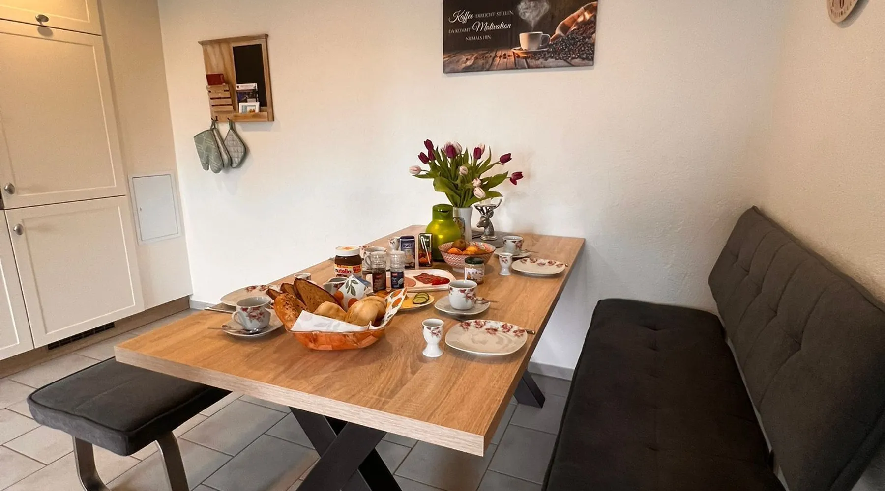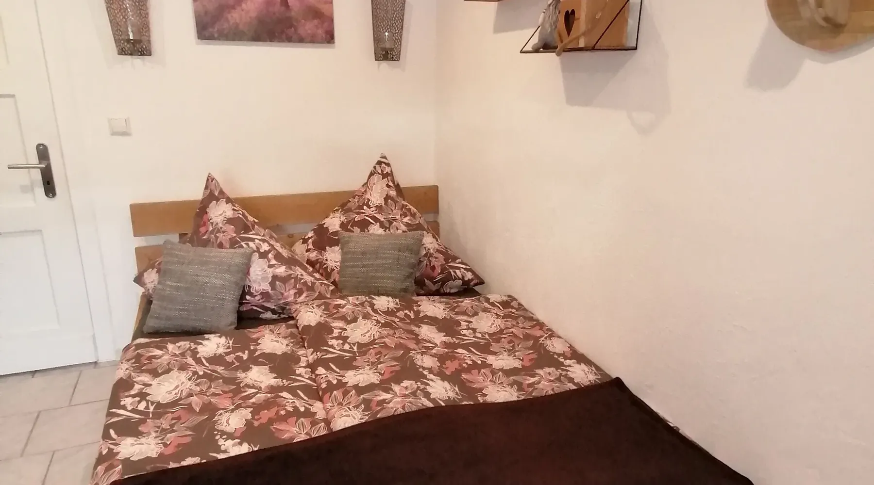 Die Ferienunterkunft wurde 2021/2022 renoviert teilweise saniert und mit modernen Möbeln eingerichtet. Dabei wurde der ländliche Charme beibehalten. Wir haben die Wohnung mit Liebe zum Detail eingerichtet. Unsere Ferienwohnung ist für bis zu fünf Personen + Babybett ausgestattet. Im Erdgeschoss befindet sich die Küche mit Essecke. In der Küche befindet sich auch ein Fernseher. Dann befindet sich auch auf der unteren Etage ein Schlafzimmer mit einem Doppelbett. Die Maße vom Bett ist 140 Meter mal 2 Meter . Es führt eine schöne Steintreppe zur ersten Etage. Dort befindet sich das Wohnzimmer.