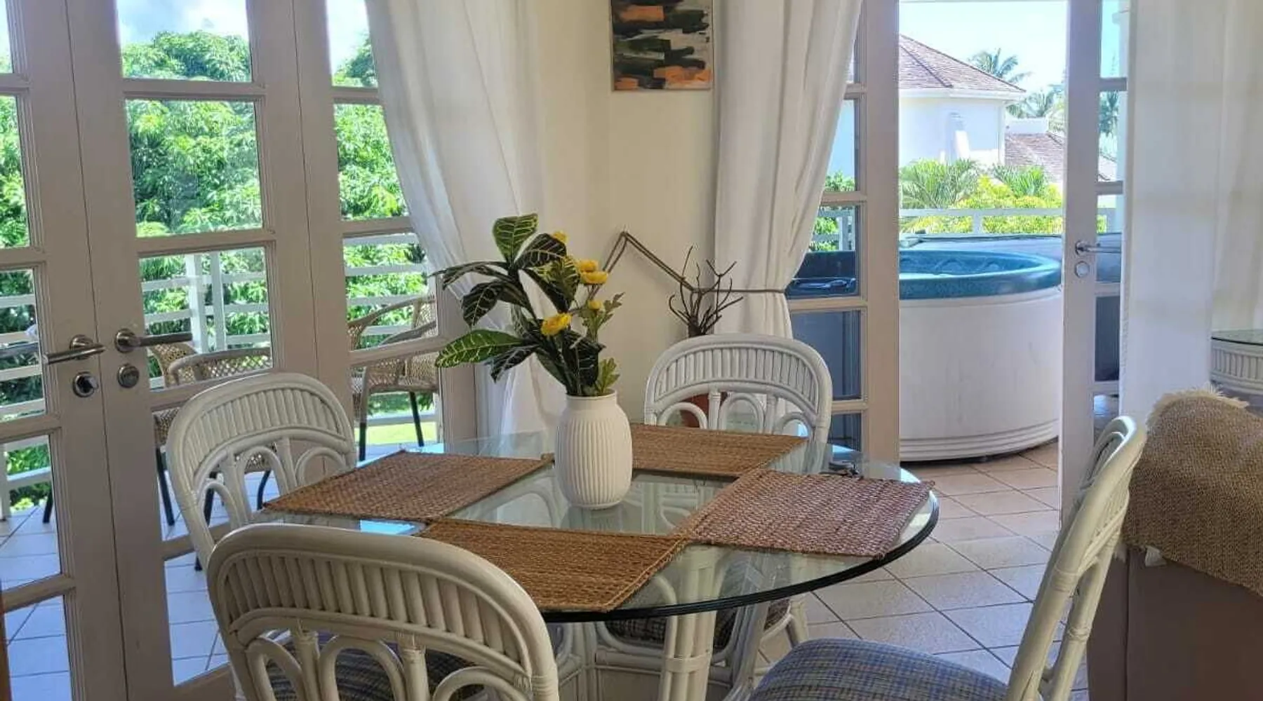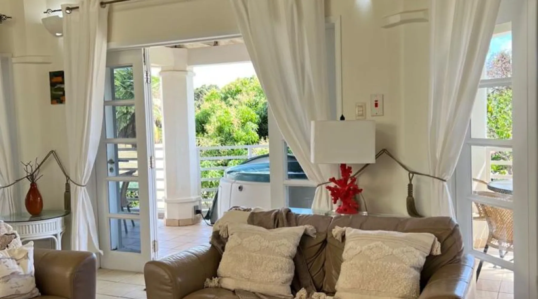 La Villa Sereine, Located on the world-renowned Tobago Plantations estate. Amazing views of the golf course with walking trails along the waterfront where you can enjoy the sunrise or captivating sunsets. Views for days, indoor/outdoor living allows you to enjoy the manicured scenery from every angle in the villa. The villa is organically styled and boasts all kitchen amenities so you can prepare light meals with lots of coffee/tea options. Take a hydro-massage in the spa hot tub and allow the warm water to soothe your body and mind; the powerful jets help improve blood circulation and ease all your stresses so you can recharge during the day and sleep tranquil at night. If you want fine dining, no need to drive, there are on-site restaurants at the Magdalena Grand Hotel and Golf Resort with amazing Atlantic ocean views or enjoy wonderful buffet style meals with local and international cuisine. Grab drinks at the bar or get a day pass to use the beach and pool facilities. All other conveniences are only a 10min drive away, supermarkets, fruit vendors, mall, coffee shop.