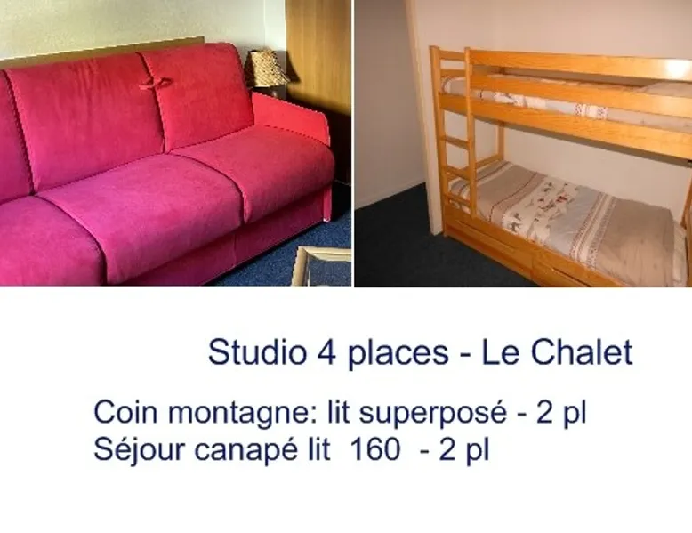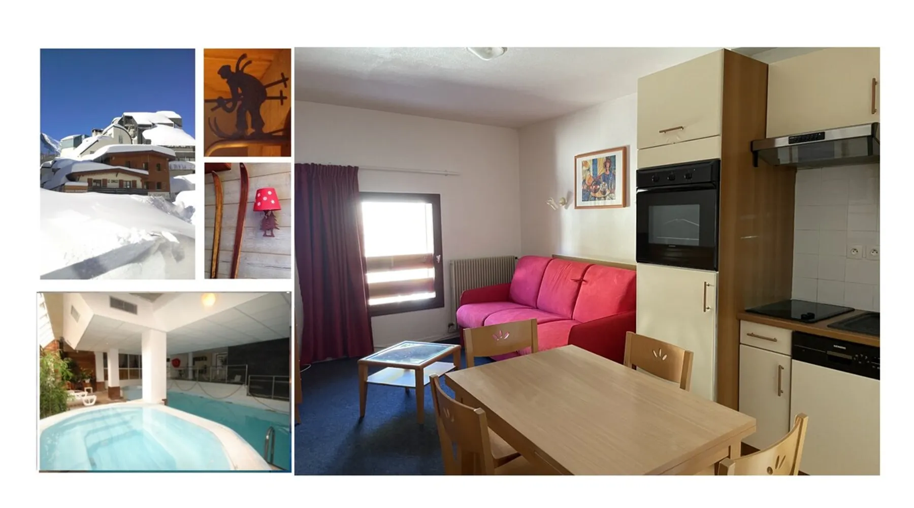 This accommodation is managed by a local estate agency and marketed by maeva, a specialist in seasonal rentals for over 20 years. Res Le Chalet n°14 resort plan, of good standing, 150m from the slopes. Elevator, fireplace bar restaurant, indoor swimming pool, whirlpool bath, sauna, gym. Shops 100m away. WIFI access depending on coverage. Equipped and furnished studio for 4 people,... The space Rés Le Chalet n°14 resort plan, good standing, 150m from the slopes. Elevator, bar restaurant fireplace, indoor swimming pool, whirlpool bath, sauna, gym. Shops 100m away. WIFI access depending on coverage. Equipped and furnished studio for 4 people, 2nd floor, resort view, 29m², north-east exposure, ski locker, central heating. Entrance with mountain corner 2 bunk beds, bathroom with shower, sink, WC, hair dryer. Living room with double sofa bed, TV. Kitchen: 2-burner ceramic hob, oven, fridge, dishwasher, microwave, electric coffee maker, toaster, food processor. NON-SMOKING. SHEETS PROVIDED. The sports facilities (swimming pool, whirlpool, sauna and gym) are open in winter from the Christmas holidays until the resort closes, in summer from 01/07 to 15/09. Extra charge: tourist tax. Pets accepted and payable. Optional: CATERING packages (breakfast, dinner, half-board), bathroom linen, daily and departure cleaning, early arrival. Winter: SKILOC equipment rental, SKIPASS ski lifts. Other things to note You will receive a voucher with all the information you need to hand over the keys once the reservation is made. Star rating Internet access Pets Allowed: extra charge Coffee Maker Ski locker Oven Microwave Dishwasher Number of bedrooms Number of rooms: 1 Number of toilets: 1 Number Bathroom Shared swimming pool Baking sheet, Fridge Area (m²): 29 Television, Security deposit (in euros): 250 Hot tub Dishes and silverware: 1 Hot tub