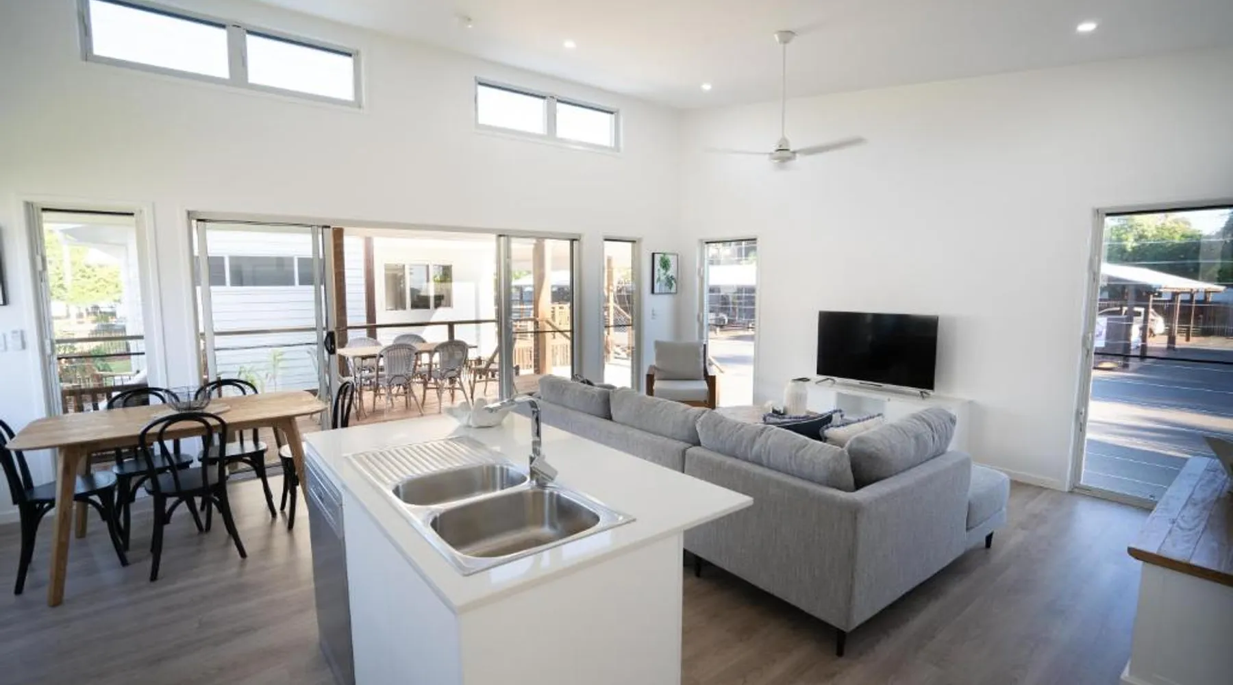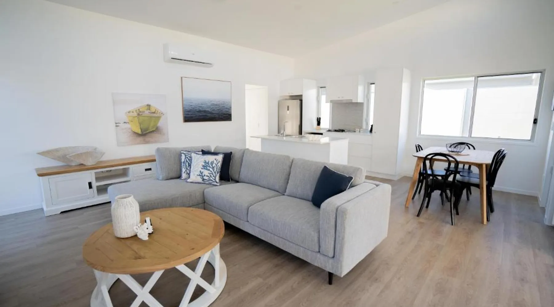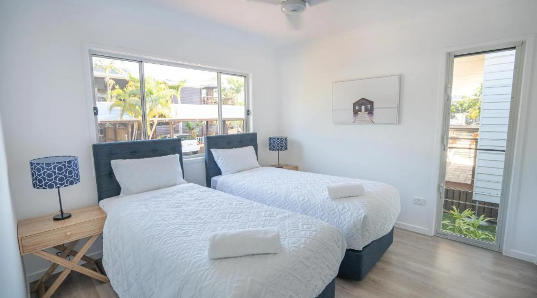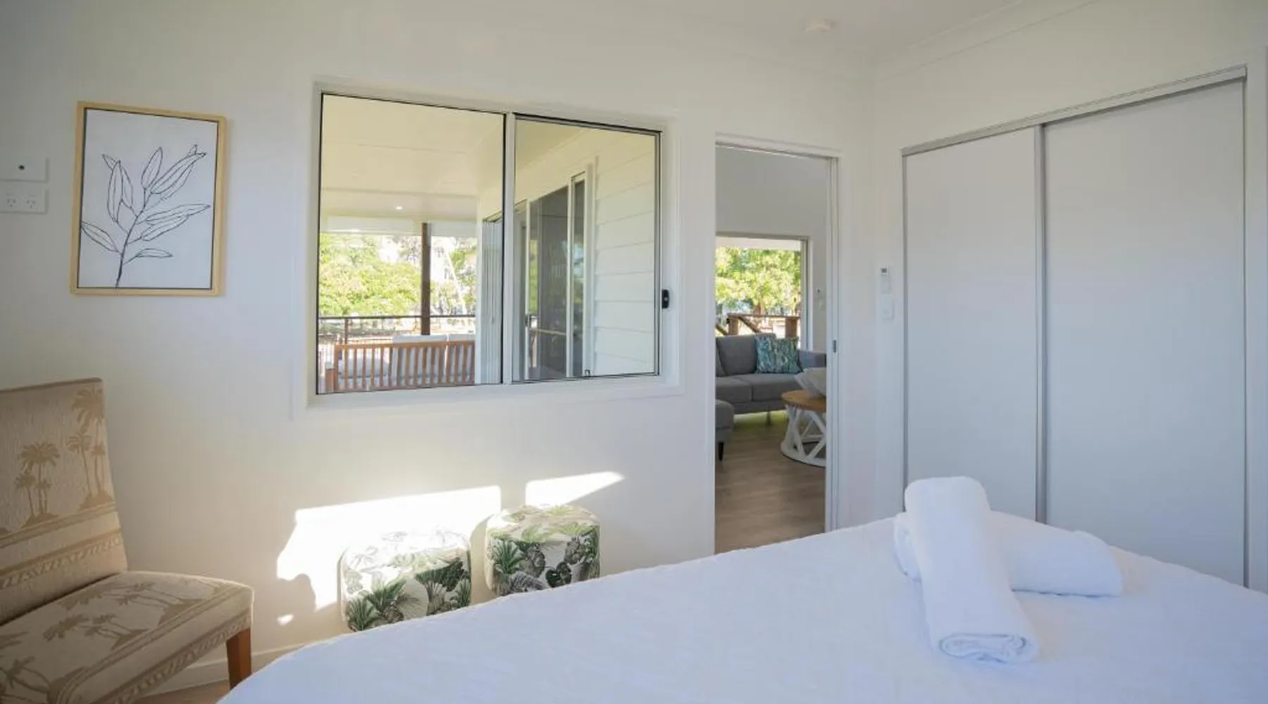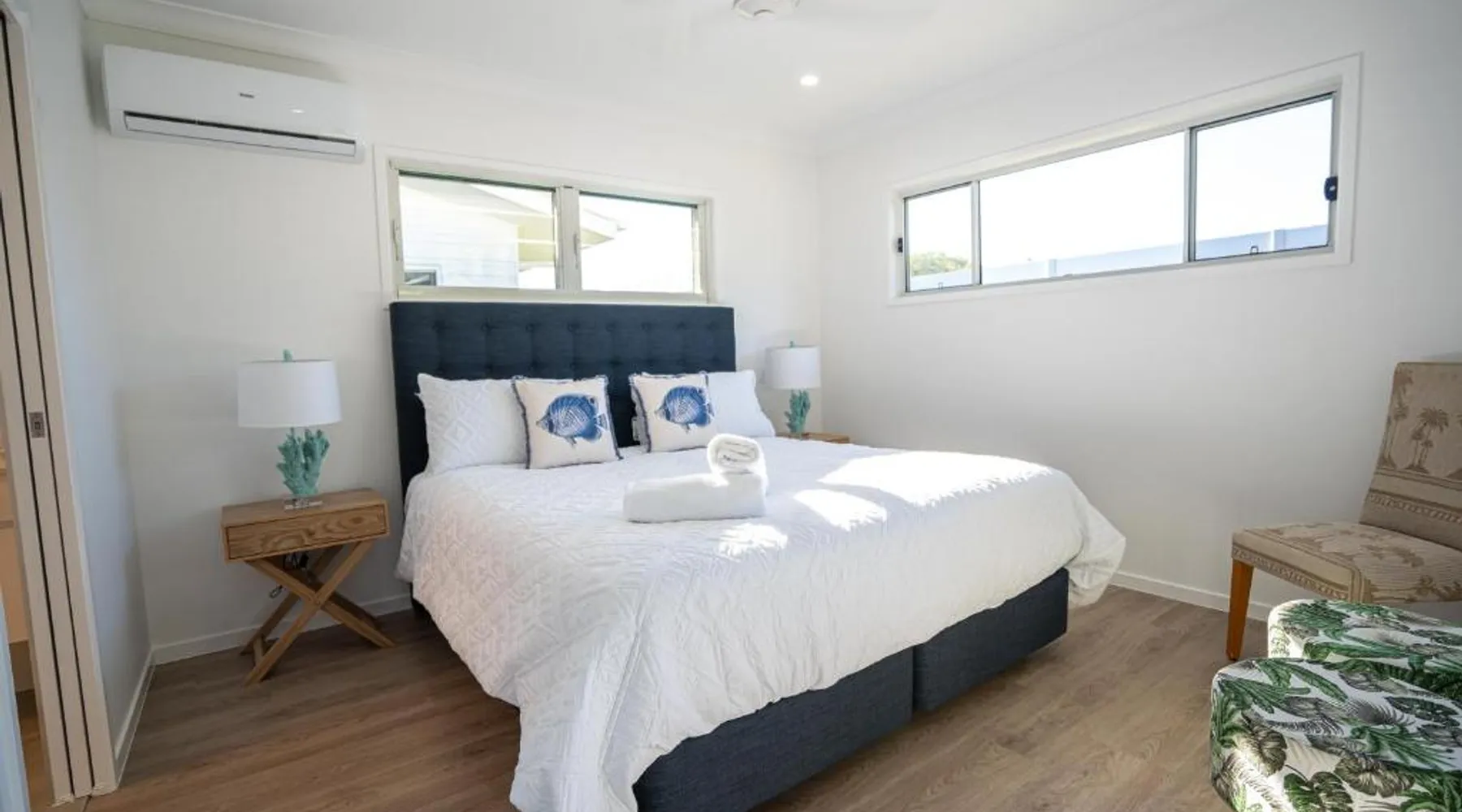 Elegant Accommodations: Crab Cottages in Urangan offers a villa with a garden and a year-round outdoor swimming pool. Guests enjoy free WiFi, ensuring connectivity during their stay. Comfortable Amenities: The property features air-conditioning, a terrace, balcony, washing machine, and a fully equipped kitchen with a dishwasher and microwave. Additional amenities include a barbecue, outdoor furniture, and a work desk. Prime Location: Located 3.7 mi from Hervey Bay Airport, Crab Cottages is close to attractions such as Reefworld Aquarium (15-minute walk), Hervey Bay Botanic Gardens (1.2 mi), and Hervey Bay Marina (9-minute walk). Scuba diving is available in the surroundings. Highly rated for beach access and room comfort. This spacious villa is consisted of of 1 living room, 3 separate bedrooms and 4 bathrooms with a shower and free toiletries. Guests will find a stovetop, a refrigerator, a dishwasher and kitchenware in the fully equipped kitchen. The villa also has a barbecue. This villa is air-conditioned and features a seating area with a flat-screen TV, a washing machine, a private entrance, a tea and coffee maker, as well as a dining area. The unit offers 3 beds.