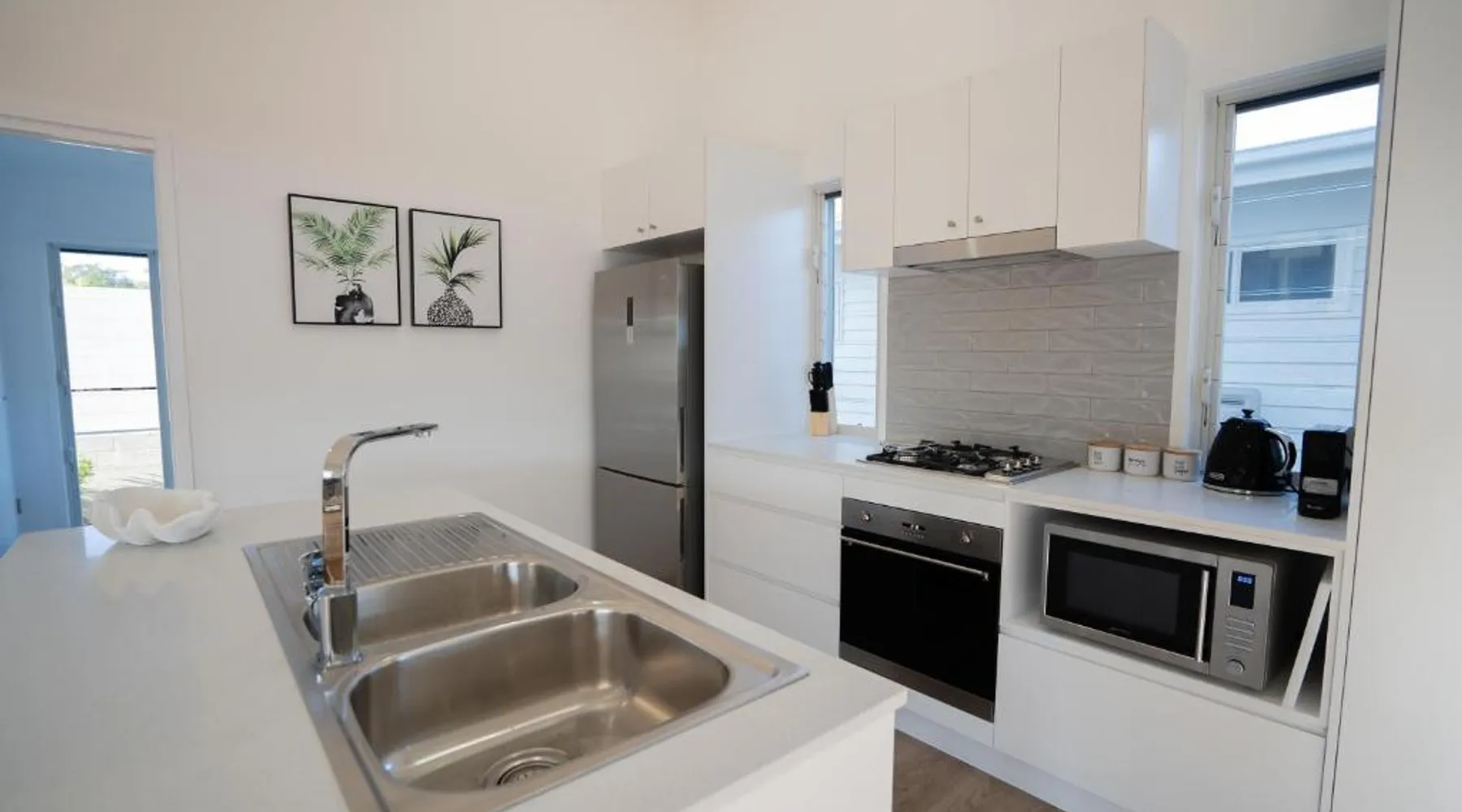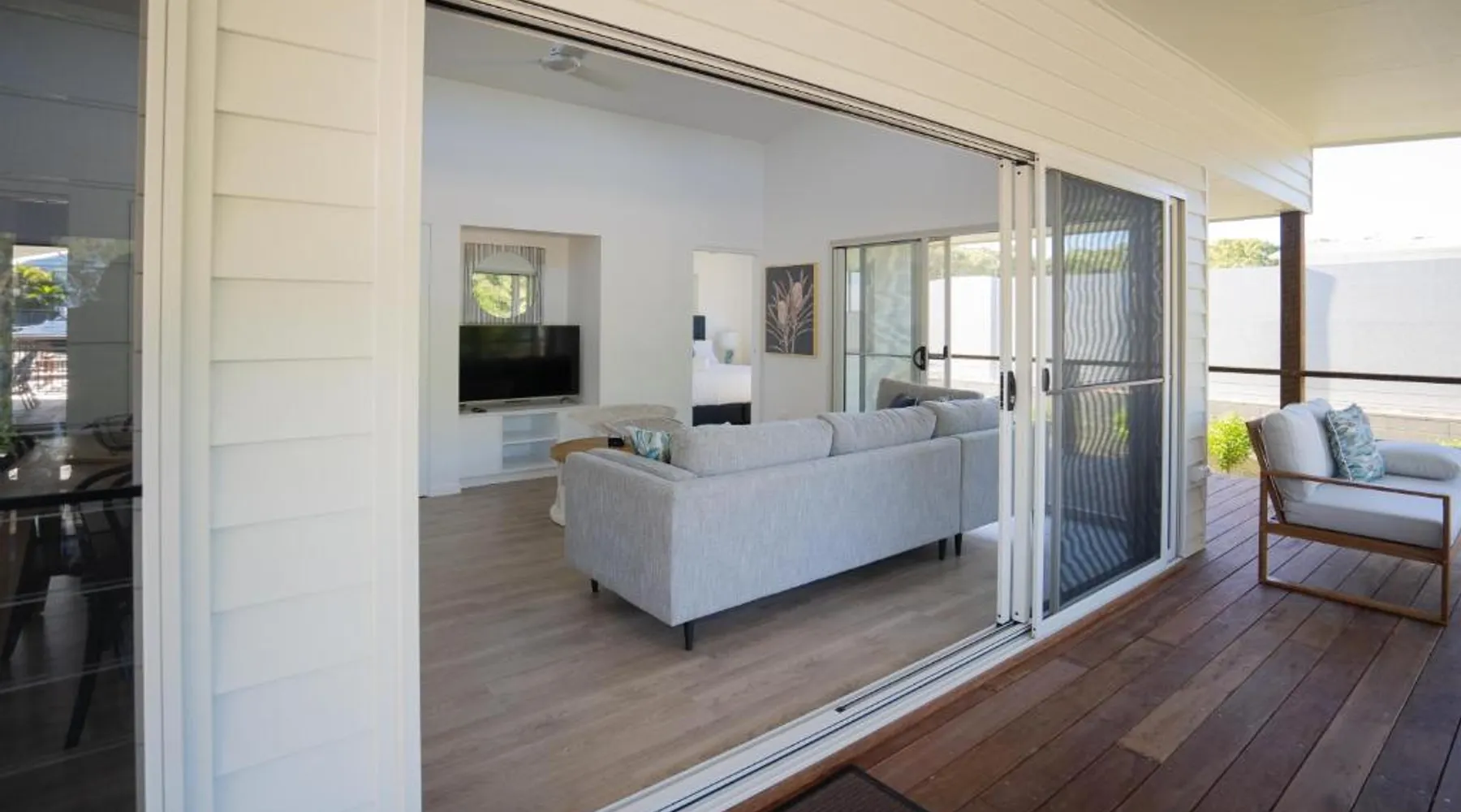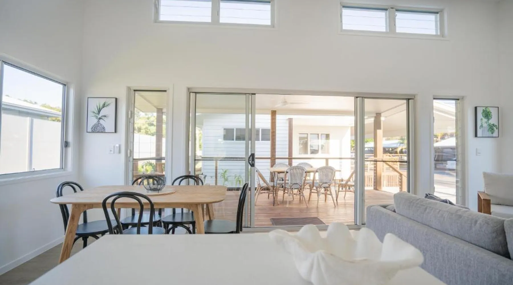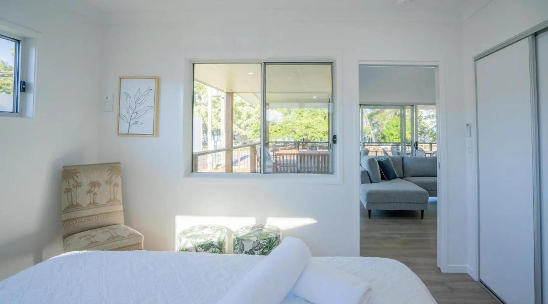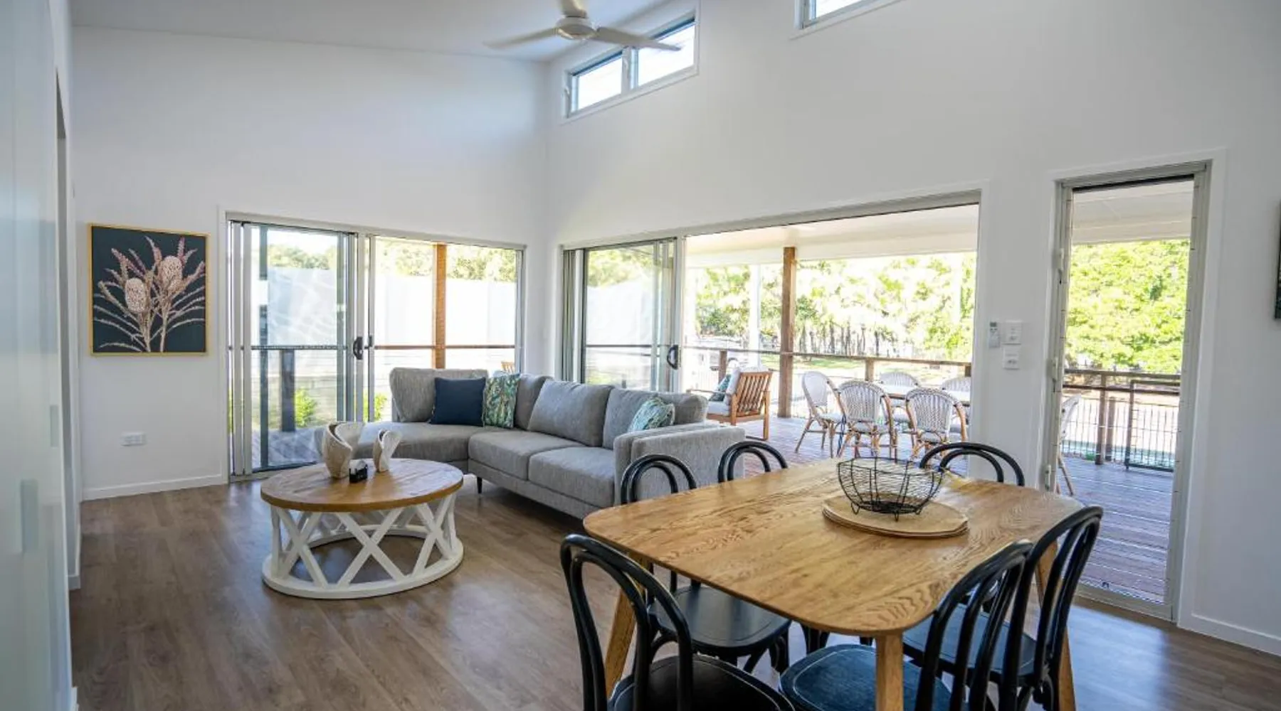 Elegant Accommodations: Crab Cottages in Urangan offers a villa with a garden and a year-round outdoor swimming pool. Guests enjoy free WiFi, ensuring connectivity during their stay. Comfortable Amenities: The property features air-conditioning, a terrace, balcony, washing machine, and a fully equipped kitchen with a dishwasher and microwave. Additional amenities include a barbecue, outdoor furniture, and a work desk. Prime Location: Located 3.7 mi from Hervey Bay Airport, Crab Cottages is close to attractions such as Reefworld Aquarium (15-minute walk), Hervey Bay Botanic Gardens (1.2 mi), and Hervey Bay Marina (9-minute walk). Scuba diving is available in the surroundings. Highly rated for beach access and room comfort. This spacious villa is consisted of of 1 living room, 3 separate bedrooms and 4 bathrooms with a shower and free toiletries. Guests will find a stovetop, a refrigerator, a dishwasher and kitchenware in the fully equipped kitchen. The villa also has a barbecue. This villa is air-conditioned and features a seating area with a flat-screen TV, a washing machine, a private entrance, a tea and coffee maker, as well as a dining area. The unit offers 3 beds.