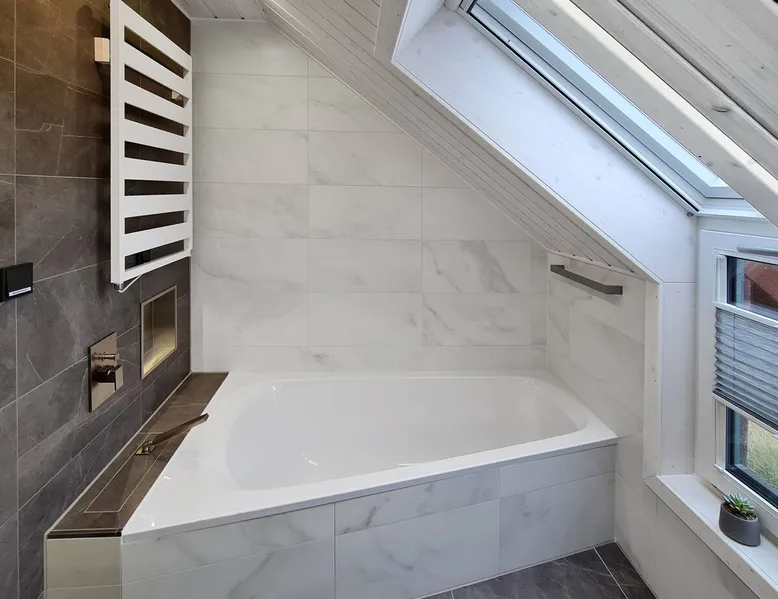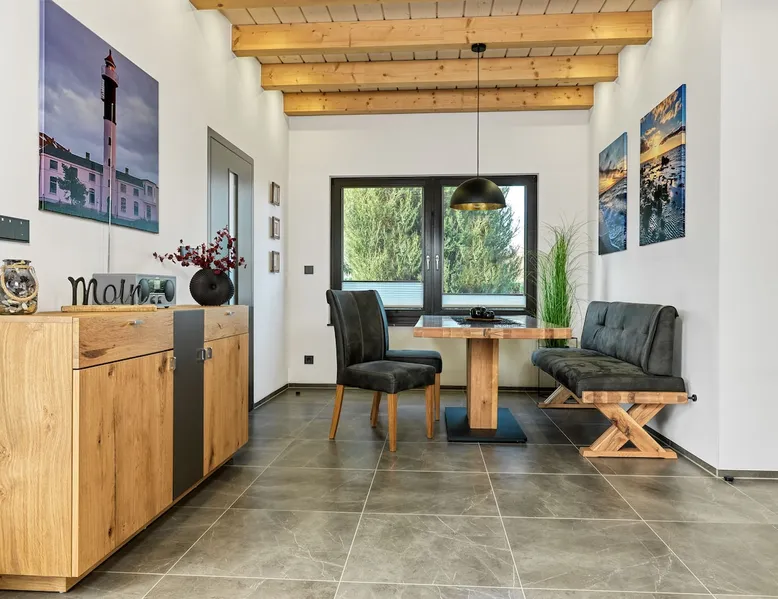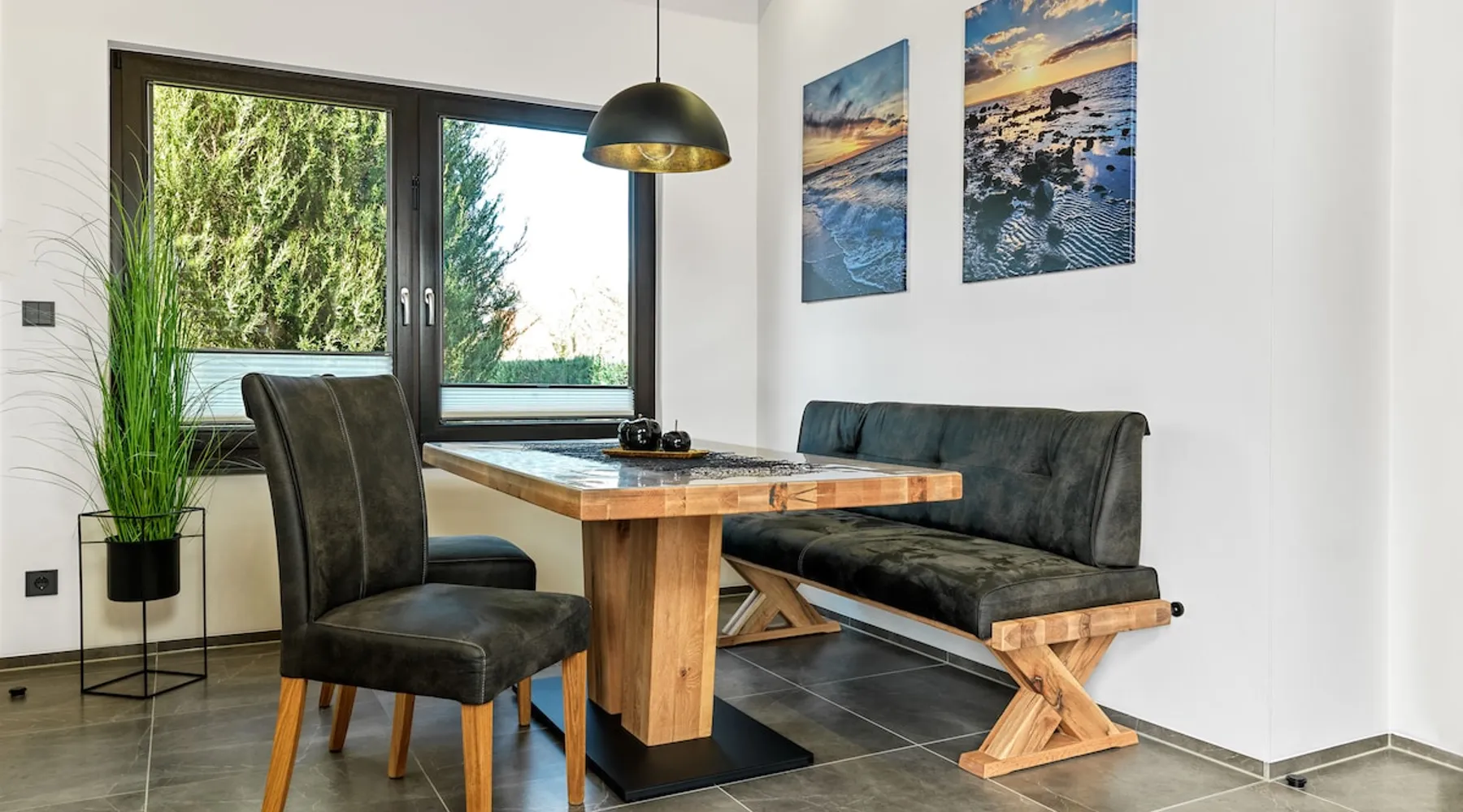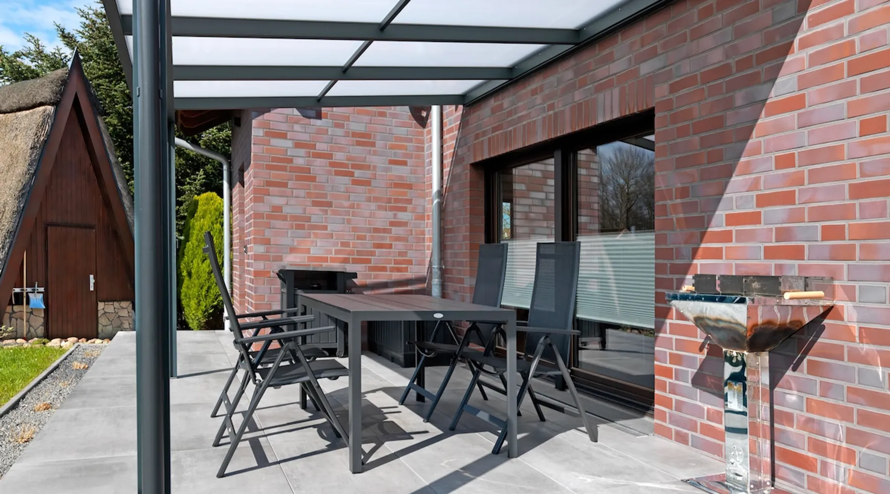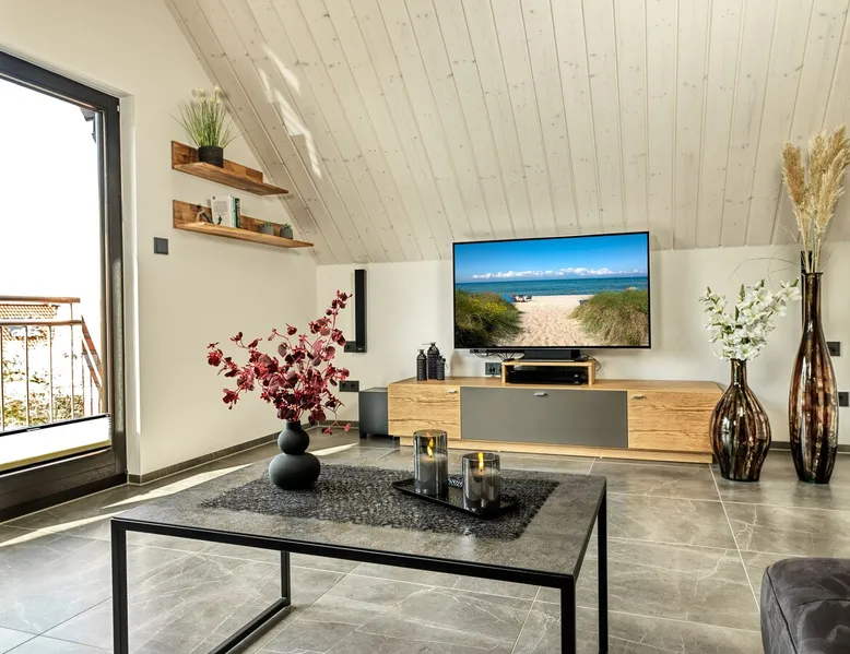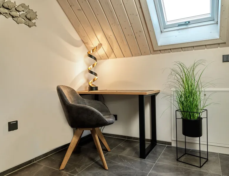 Far away from the hustle and bustle, you can enjoy the peace and quiet and are still close to the harbor with a sandy beach (approx. 500 m away). Other things to note Take a dream vacation with up to 4 people in this house, newly renovated in 2022, close to the beach! The large living area with a beautiful dining area and couch corner as well as TV makes your vacation something special. This area particularly invites families with children to spend time together. Board games are available. A bedroom with two single beds for two people, a bathroom with a large shower and toilet, a fully equipped kitchen with microwave/oven/ceramic hob/dishwasher and fridge-freezer awaits you on the ground floor. On the upper floor there is a bedroom with a double bed, a bathroom with a bathtub and a spacious living room with a comfortable seating area with TV/DVD and free Netflix. There is also a desk with an internet connection. The covered terrace with garden furniture, grill, swing and view of the greenery invites you to read, grill or play around. Children's travel cot and high chair are available in the house for our little guests. The use of washing machines and dryers can be booked for an additional charge of €2.50 per night. Free Wi-Fi is available throughout the house. No Smoking!!! Pets not allowed for allergy reasons! Up to two cars can park in a row on the driveway. There is also a charging station for electric vehicles. We look forward to your booking and to welcoming you to Haus Muschelperle!