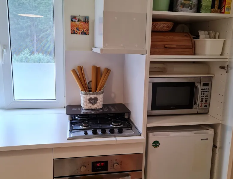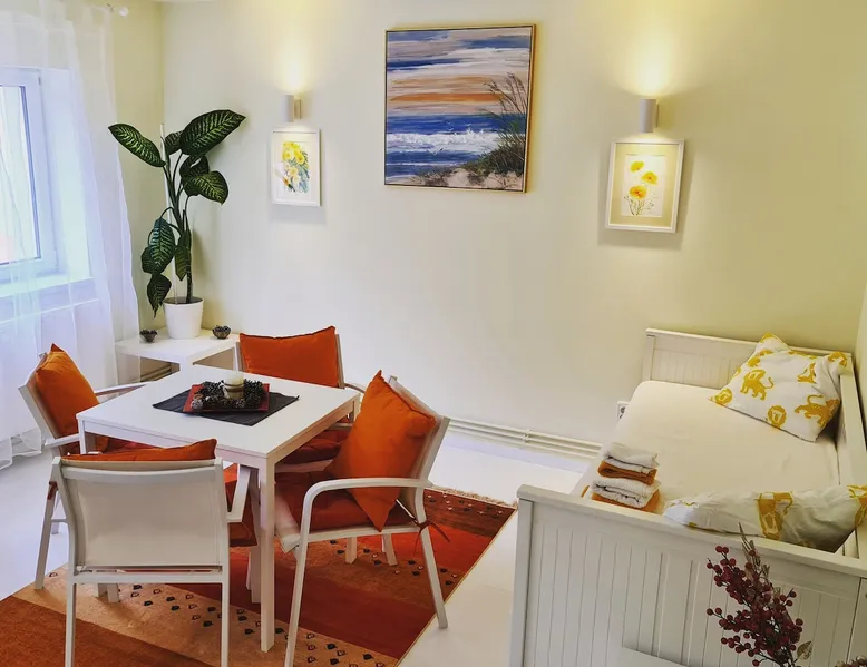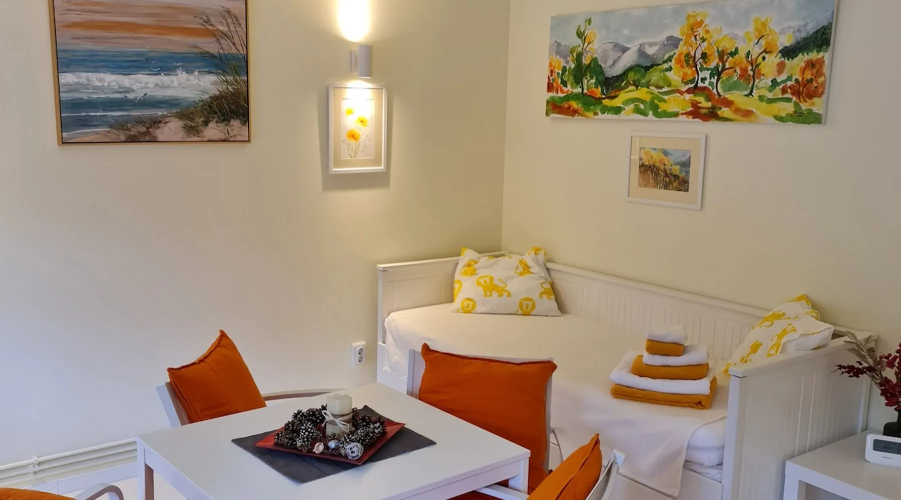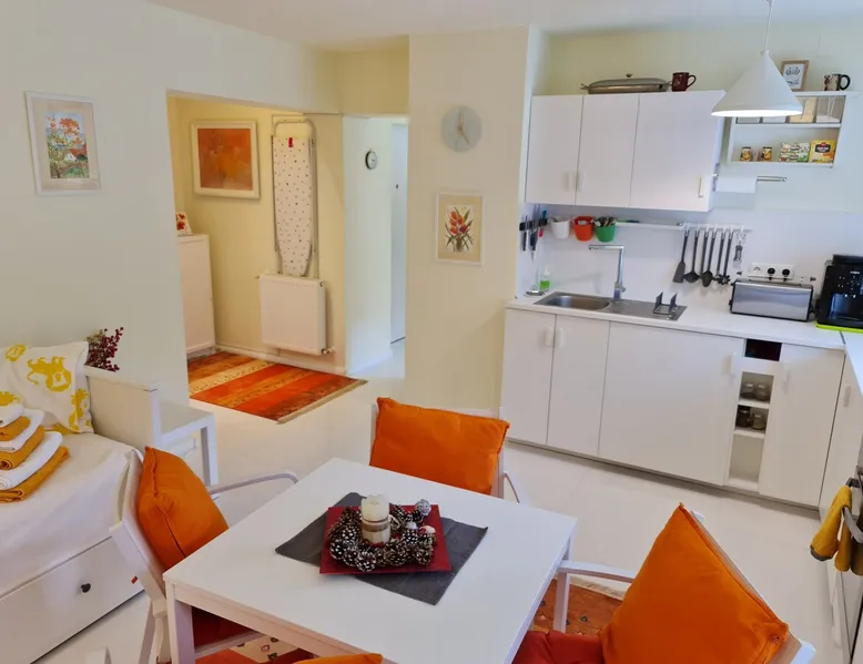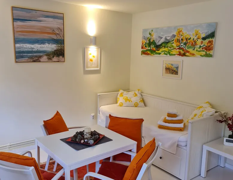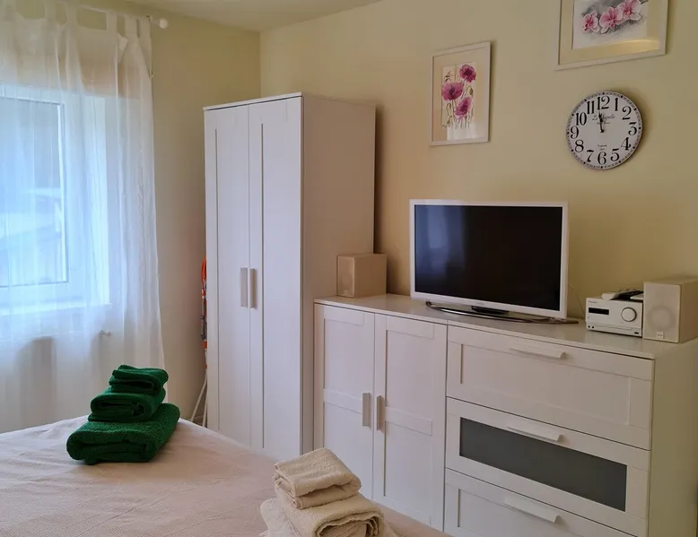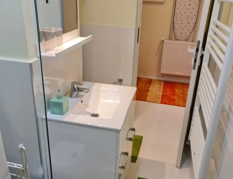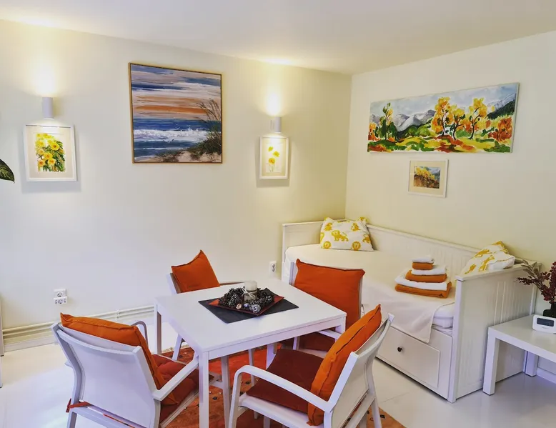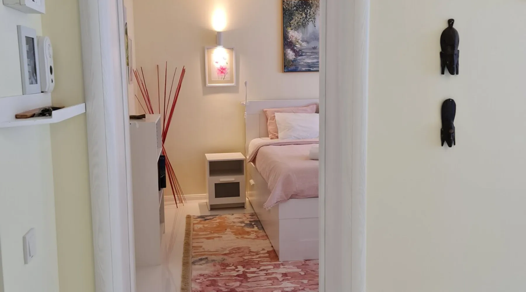 The apartment is located at the foot of the Bucegi Mountains, the immediate vicinity of Hotel Silva (50m) and the Busteni cable car (100m). The location is quiet, welcoming and offers you a gorgeous view to Bucegi Mountains. Spacious, consisting of a living room , bedroom, one bathroom, office area, hallway, sofa bed , fully equipped kitchen with dishwasher and laundry machine. Ideal for families (and with kids), tourists who want to feel at home, young people,couples or for a mountain getaway. The space The white apartment is where we hope you can feel at home. It is located a stone's throw from the cable car in Busteni and the Silva Hotel, overlooking the sun, the creek, the forest and the mountain. Perfectly soundproofed and thermally insulated, with its own boiler and thermoregulation, it has opaque blinds in sleeping areas and smart lock, with temporary custom code for each guest. Besides the complete facilities, the white apartment is arranged in Scandinavian style, with straw-colored walls and contrasting color spots in tones of solar yellow, orange and pale pink. The paintings are original, signed, in watercolor, acrylic or oil and benefit from warm led lighting. Carpets are made of short, anti-allergic silk, adding hard shades of balancing the pastel of the walls. We look forward to having an espresso from freshly ground beans. Guest access The guests have access to the entire apartment.