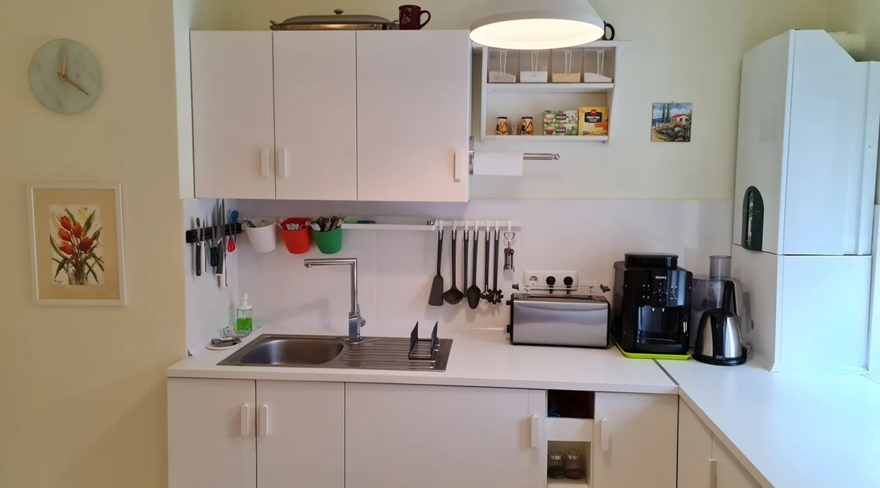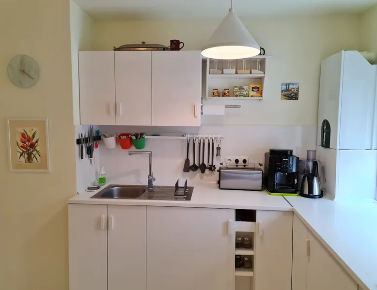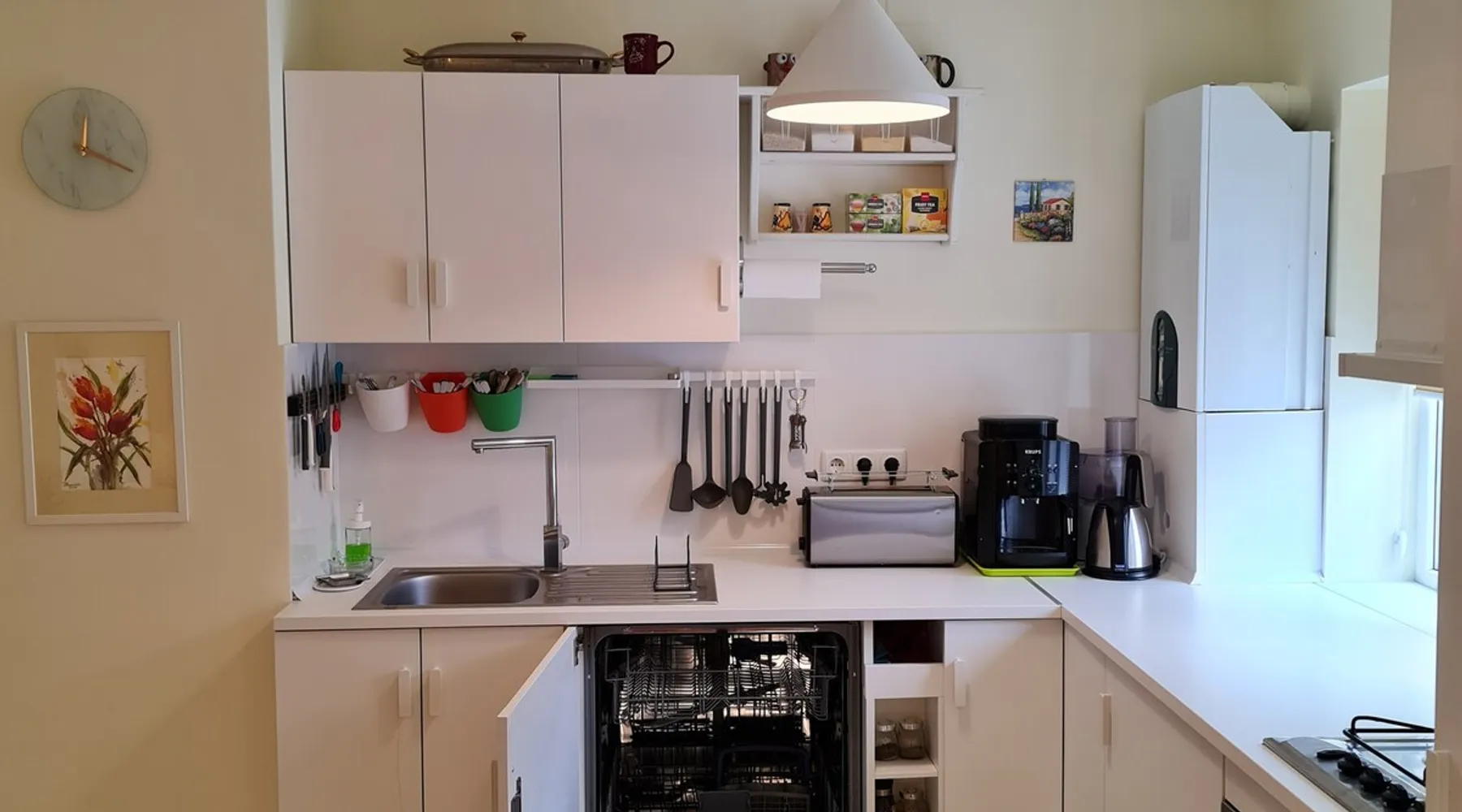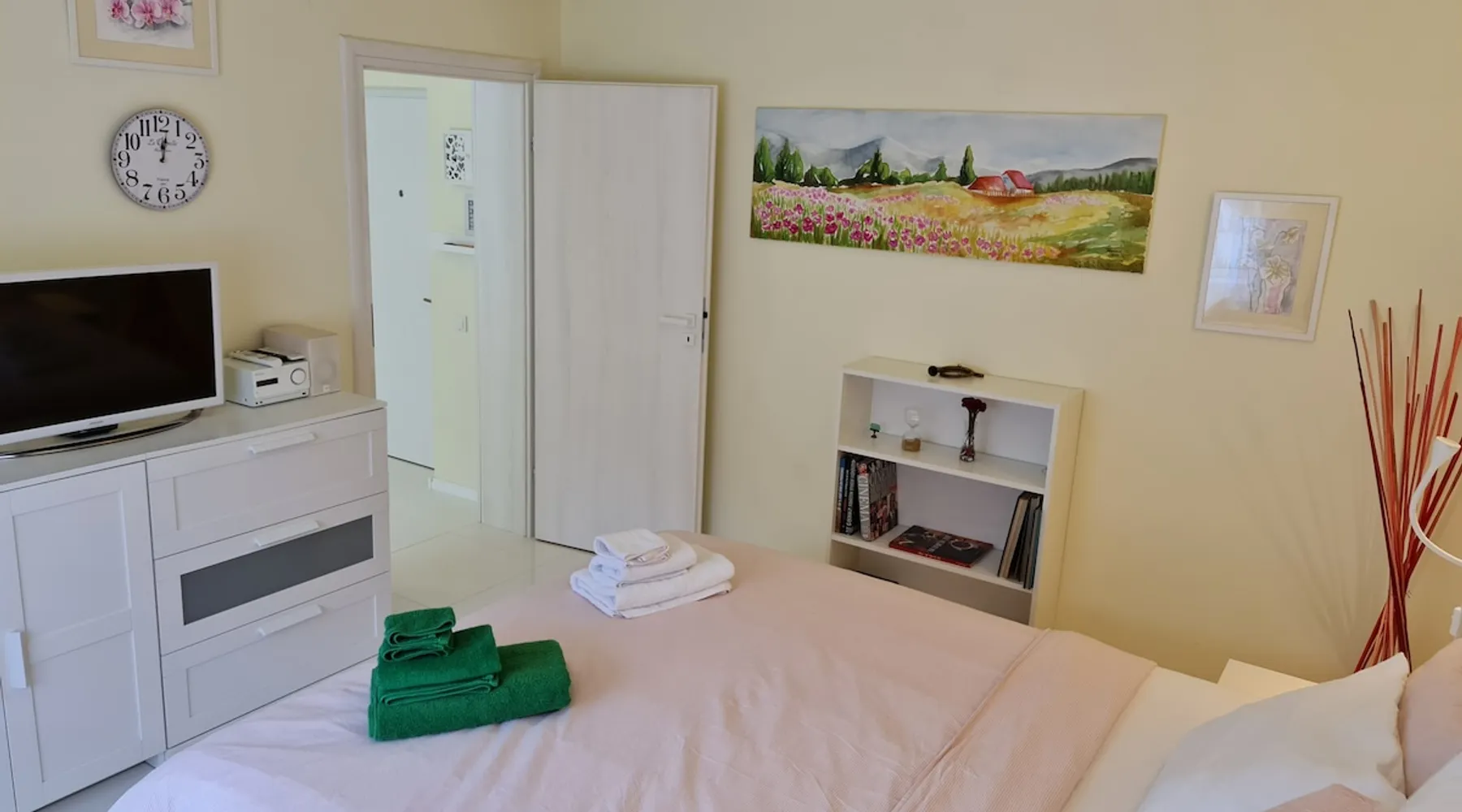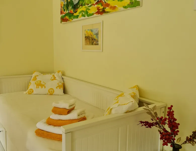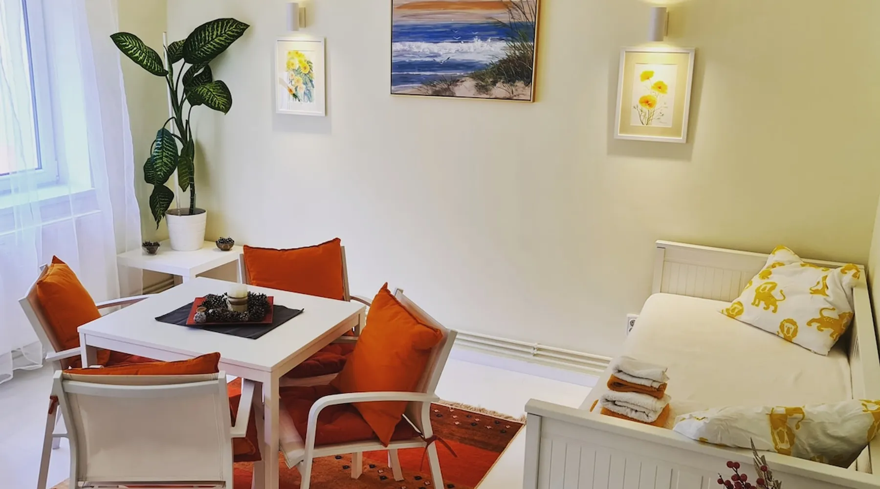 The apartment is located at the foot of the Bucegi Mountains, the immediate vicinity of Hotel Silva (50m) and the Busteni cable car (100m). The location is quiet, welcoming and offers you a gorgeous view to Bucegi Mountains. Spacious, consisting of a living room , bedroom, one bathroom, office area, hallway, sofa bed , fully equipped kitchen with dishwasher and laundry machine. Ideal for families (and with kids), tourists who want to feel at home, young people,couples or for a mountain getaway. The space The white apartment is where we hope you can feel at home. It is located a stone's throw from the cable car in Busteni and the Silva Hotel, overlooking the sun, the creek, the forest and the mountain. Perfectly soundproofed and thermally insulated, with its own boiler and thermoregulation, it has opaque blinds in sleeping areas and smart lock, with temporary custom code for each guest. Besides the complete facilities, the white apartment is arranged in Scandinavian style, with straw-colored walls and contrasting color spots in tones of solar yellow, orange and pale pink. The paintings are original, signed, in watercolor, acrylic or oil and benefit from warm led lighting. Carpets are made of short, anti-allergic silk, adding hard shades of balancing the pastel of the walls. We look forward to having an espresso from freshly ground beans. Guest access The guests have access to the entire apartment.