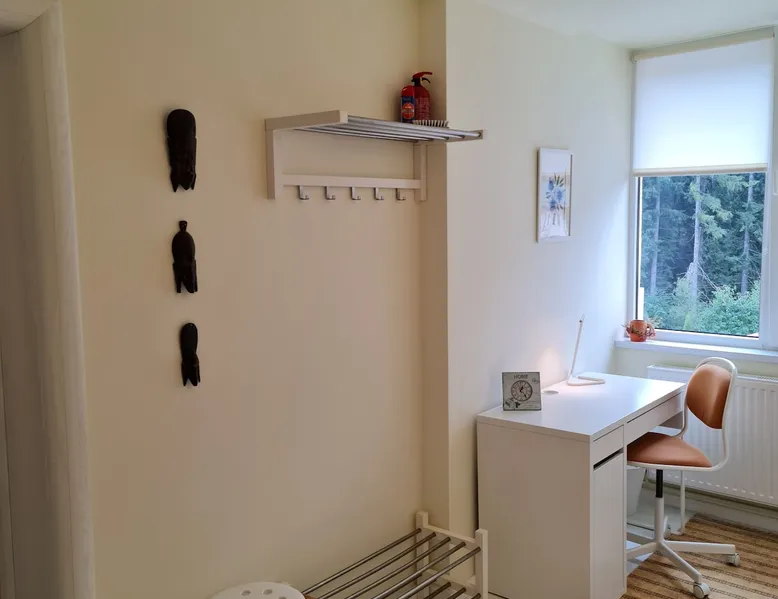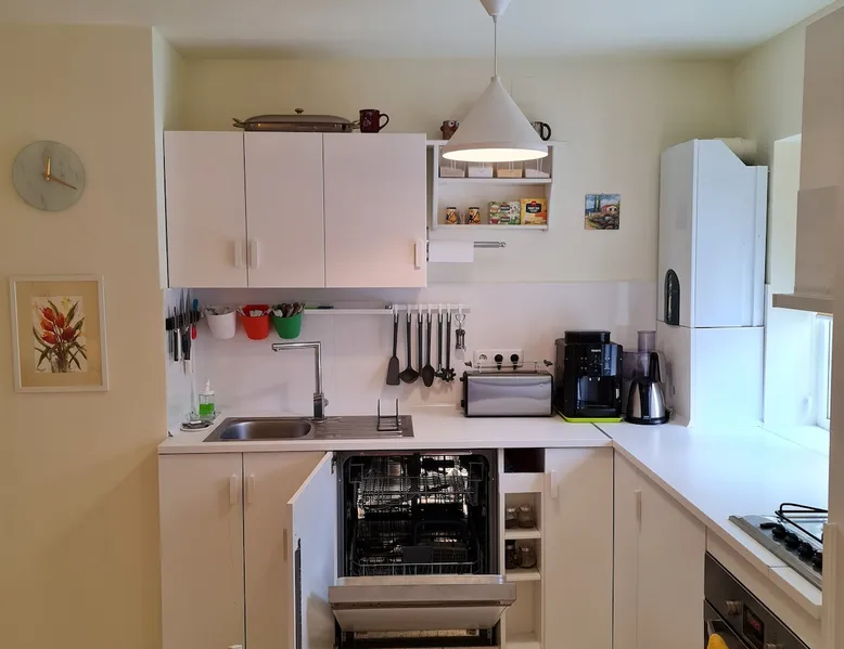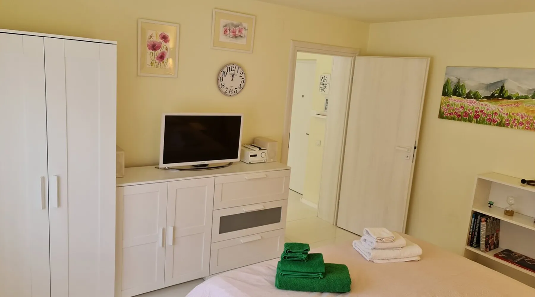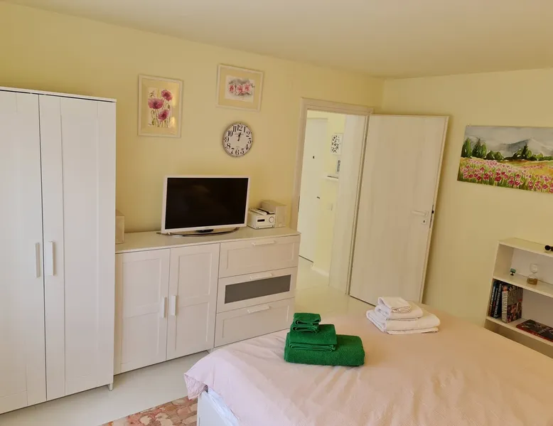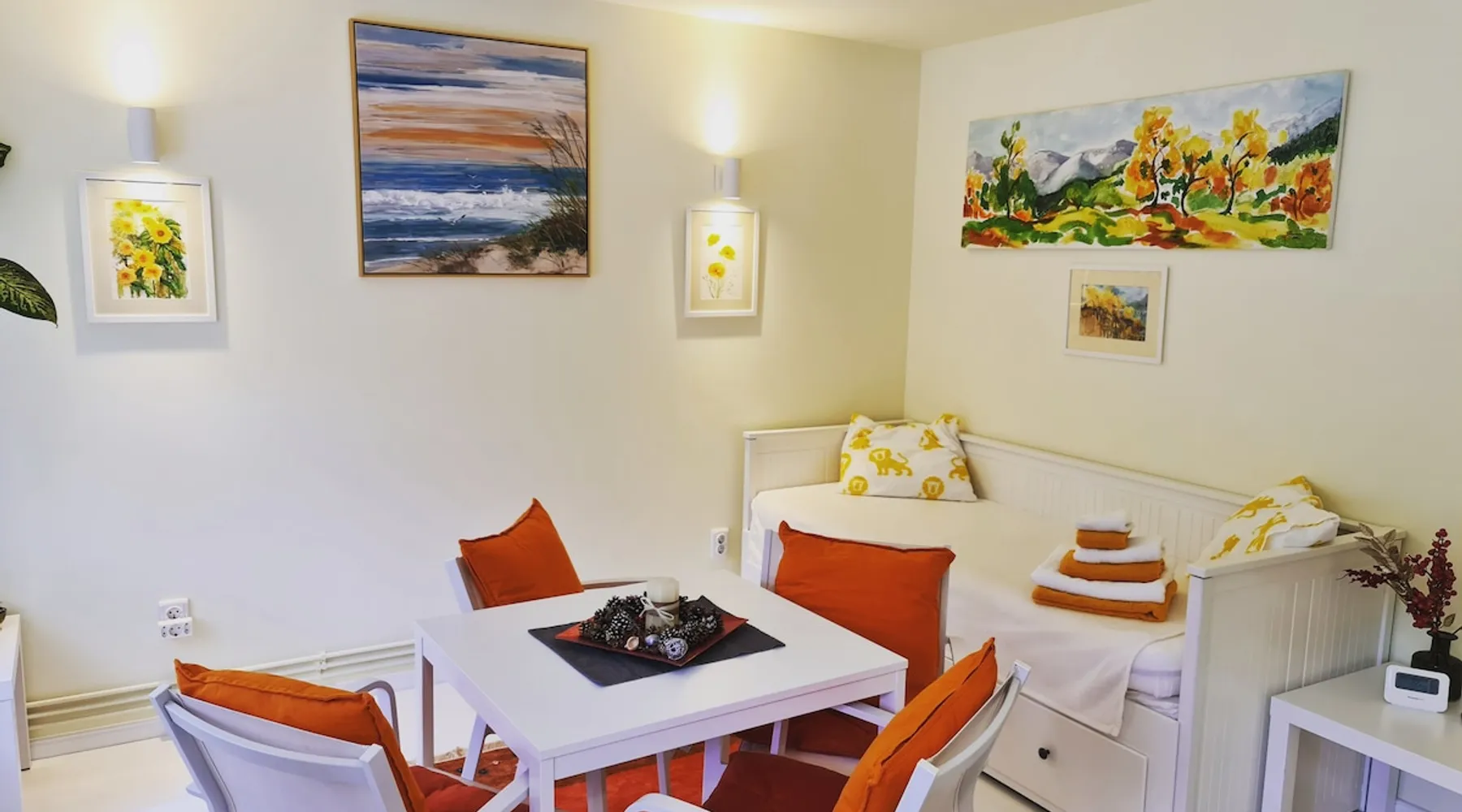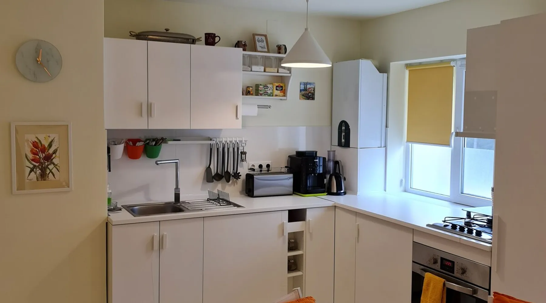 The apartment is located at the foot of the Bucegi Mountains, the immediate vicinity of Hotel Silva (50m) and the Busteni cable car (100m). The location is quiet, welcoming and offers you a gorgeous view to Bucegi Mountains. Spacious, consisting of a living room , bedroom, one bathroom, office area, hallway, sofa bed , fully equipped kitchen with dishwasher and laundry machine. Ideal for families (and with kids), tourists who want to feel at home, young people,couples or for a mountain getaway. The space The white apartment is where we hope you can feel at home. It is located a stone's throw from the cable car in Busteni and the Silva Hotel, overlooking the sun, the creek, the forest and the mountain. Perfectly soundproofed and thermally insulated, with its own boiler and thermoregulation, it has opaque blinds in sleeping areas and smart lock, with temporary custom code for each guest. Besides the complete facilities, the white apartment is arranged in Scandinavian style, with straw-colored walls and contrasting color spots in tones of solar yellow, orange and pale pink. The paintings are original, signed, in watercolor, acrylic or oil and benefit from warm led lighting. Carpets are made of short, anti-allergic silk, adding hard shades of balancing the pastel of the walls. We look forward to having an espresso from freshly ground beans. Guest access The guests have access to the entire apartment.