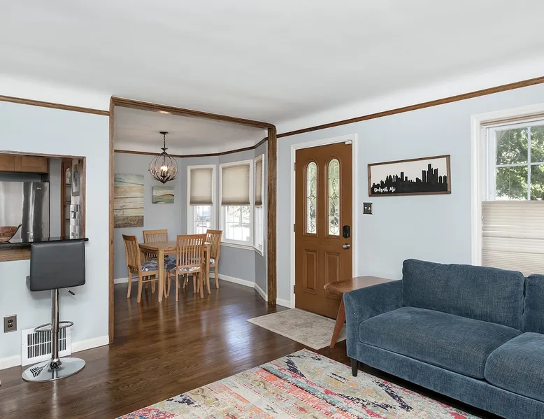 Experience unparalleled convenience and comfort at our centrally-located Ferndale 3 bedroom home. This updated bungalow features new furniture, fixtures, beds, and bedding. Enjoy a newly renovated bathroom and a fully furnished kitchen, ideal anyone seeking a clean and comfortable stay. Situated just 10-20 minutes from Detroit, Birmingham, and Royal Oak, our home offers easy access to all major freeways. Plus, we warmly welcome dogs, ensuring every member of your family feels at home. The space The house sits on a quiet dead end street Driveway and street parking available Fully fenced in backyard with outdoor furniture Hardwood floors throughout the house *No parties *No smoking cigarettes in the house (all cigarette butts must be put in the outside garbage can or fire pit) Pets must be approved - guests are responsible for picking up their pets poop. Dogs are not allowed on the furniture or beds. Fees will be applied for dog maintenance if we have to clean up after your pet. Guest access You have full access to the entire house and fenced in yard Other things to note There is a $50 pet fee. We allow 1 dog 40lbs and under for this fee. Please contact us if you have a larger dog, or interested in bringing more than one pet. Exceptions are made.