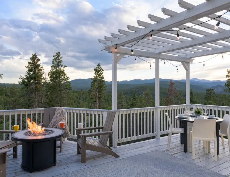 Welcome to this luxurious mountain home perched on Starr Peak! Immerse yourself in the allure of the Rocky Mountains. Experience unmatched adventure and tranquility in this cozy haven. Discover charming nearby towns or unwind in mountain seclusion. Explore nearby hiking trails, whitewater rafting, and prime fishing waters within a short distance, alongside top-tier downhill and cross-country skiing opportunities. Finish up the day with a relaxing sweat in our gorgeous cedar wood sauna. The space Enjoy the stunning view of the continental divide from our deck space offering breathtaking views of the Rocky Mountains. The home has no air conditioning however it sits at 8600 ft so it very rarely gets over 80 and the home stays in about the 70s even on the hottest. The temperature stays about 40-50 degrees at night even in the summer. The main level boasts an open kitchen, wood-burning fireplace, half bath, and a spacious dining area for 8. 75in smart TV, laundry, and comfy seating are also provided. The second level features a master bedroom with a king bed, walk-in closet, and a small deck with seating. Bedroom 2 on the second level has a twin bunk over a queen bed and a small game area. Bedroom 3 offers a king bed with mountain views and a walk-in closet. The lower level includes bedroom 4 (king), a kitchenette, full bathroom, and a cozy living room with smart TV. Humidifiers, fans, and heaters ensure your comfort. You are not likely to miss A/C at Starry Peak due to the 8000 ft of elevation. WiFi and Smart TVs are available, with AT&T and T-Mobile cell service. In rare instances, WiFi may be unavailable. Max 2 dogs allowed; no other pets. ----WINTER WEATHER INFO--- **In winter months, AWD/4WD vehicles are required to drive in the mountains. Depending on the conditions you may rarely require traction devices or chains between the months of Nov/Dec and March/April to navigate the last 0.1 mile of the drive. Please arrive prepared to use these devices if needed. Plows will only be deployed when 6" of snow accumulates on the road. Management is not responsible for clearing the road until 6" or more have accumulated. We do have a plowing service but despite this, the last 0.1 mile of the drive (Rocky Ridge Rd) is often snow packed with icy spots.*** Book now so you can spend your vacation marveling at the snowy peaks of the continental divide from Starry Peak's deck. Guest access • Parking for 3- 4 vehicles depending on size • Ride share services do not typically service this area due to rural location. • We are located on a gravel/dirt road. In summer months a vehicle with decent tires should have no difficulty accessing the property. • PLEASE NOTE Vehicles with AWD/4WD and all weather tires are necessary oct-may in the mountains ----WINTER WEATHER INFO--- **Depending on the conditions you may rarely require traction devices or chains between the months of Nov/Dec and March/April to navigate the last 0.1 mile of the drive. Please arrive prepared to use these devices if needed.*** IMPORTANT: 4 x 4 vehicle required in winter months and we strongly suggest having a traction device/chains for inclement weather. Plows will only be deployed when 6" of snow accumulates on the road. Management is not responsible for clearing the road until 6" or more have accumulated. We do have a plowing service but despite this, the last 0.1 mile of the drive (Rocky Ridge Rd) is often snow packed with icy spots. PLEASE check out Colorado Dept of Transportation traction laws which are in effect from Sept 1 to May 1 throughout the state. Following these will help ensure you don't get stuck on the highways during a storm. Other things to note ##Distance from other cities/attractions## *Within 30 minutes Eldora Ski Area- **NORDIC AND DOWNHILL SKI Brainard Lake Recreation Area-**SNOWSHOE AND HIKE Blackhawk Casino's Central City Mining Town and Opera House Golden State Park- **SNOWSHOE AND HIKE Rainbow Lakes Hessie Trailhead Peak to Peak Highway Nederland**GREAT FOOD AND SHOPPING Barker Meadow Reservoir/Gross Reservoir **Within 1 hour Rocky Mountain National Park Mt Evans Scenic Byway Downtown Denver Golden: River Walk Boulder: Pearl Street, Chautauqua Red Rocks Amphitheater Coors Field First bank center St Mary's Glacier *Within 1.5 hours Denver International Airport Copper Mountain**DOWNHILL SKI Winter Park**DOWNHILL SKI AND TUBE Loveland Skiing**DOWNHILL SKI Keystone Mountain**DOWNHILL SKI Arapahoe Basin**DOWNHILL SKI Reservations may be subject to extra guest fees, as well as additional charges for optional services such as adding pets or requesting early check-ins.