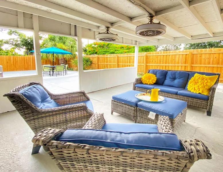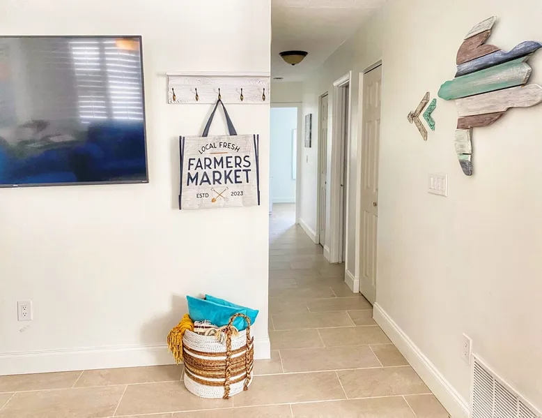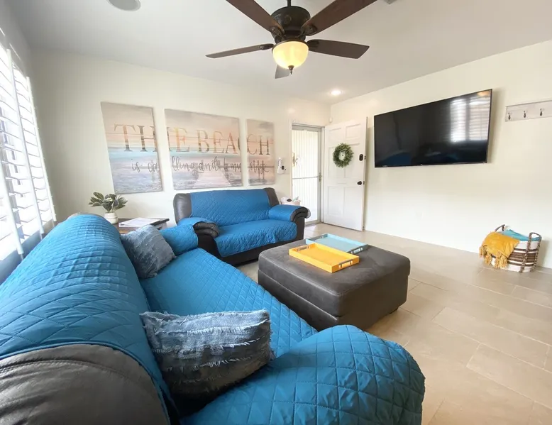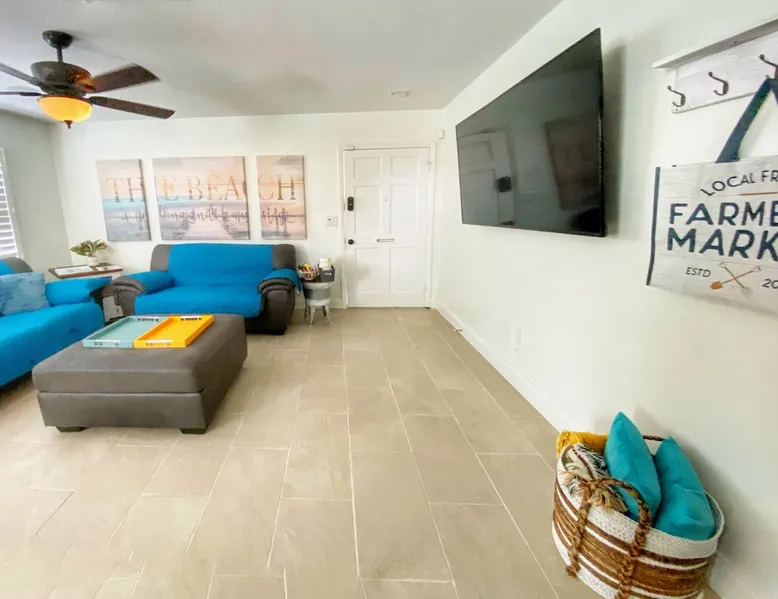 Shop, Dine, Beach Hop 🌴 Stay like a local and be treated like family Plan your next family vacation, remote work retreat, or house hunting trip at this cozy 3-bedroom home. Only a quick 2-mile drive to downtown's vibrant shopping and dining scene and 6 miles from Lido Beach and St. Armand's Circle, you'll discover the best of Florida's beaches. Siesta Key, a top beach in the US, is only 7 miles away. Enjoy Sarasota Bay's scenic views and sounds with nearby marinas, cruises and restaurants! We invite you to vacation like a local and be treated like family. Escape to sunny Sarasota and book our vacation home for your family or group! Enjoy 3 bedrooms, each equipped with a TV, and plenty of living and entertaining space for your comfort. The master bedroom features an oversized king bed and half bathroom, while the second and third bedrooms have a king and queen bed, respectively. Need more space? Our vacation home includes a versatile bonus room that can be used as a playroom, office or extra sleeping space— featuring a sofa sleeper and desk, you'll have all the space you need for a relaxing and productive stay. Stay entertained with 65-inch TVs in both the living room and bonus room. The dining area seats 6, and the well-stocked kitchen and in-home laundry facilities offer added convenience. Take in the Florida sunshine on the fenced patio, with both covered and uncovered areas. This pet, child and infant-friendly home is conveniently located near all Sarasota has to offer, including downtown’s vibrant shopping and dining scene! Guest Access: Enjoy a fully-equipped home with all the amenities you need, including a private fenced patio, in-unit washer and dryer, and complimentary parking for two vehicles. With a smart door lock entry code provided the morning of your arrival, check-in will be a breeze. Enjoy complete privacy and exclusivity as there are no shared spaces - the entire property is yours to enjoy! The home's attached garage is very small and therefore used as housekeeping storage space. Languages English, Spanish