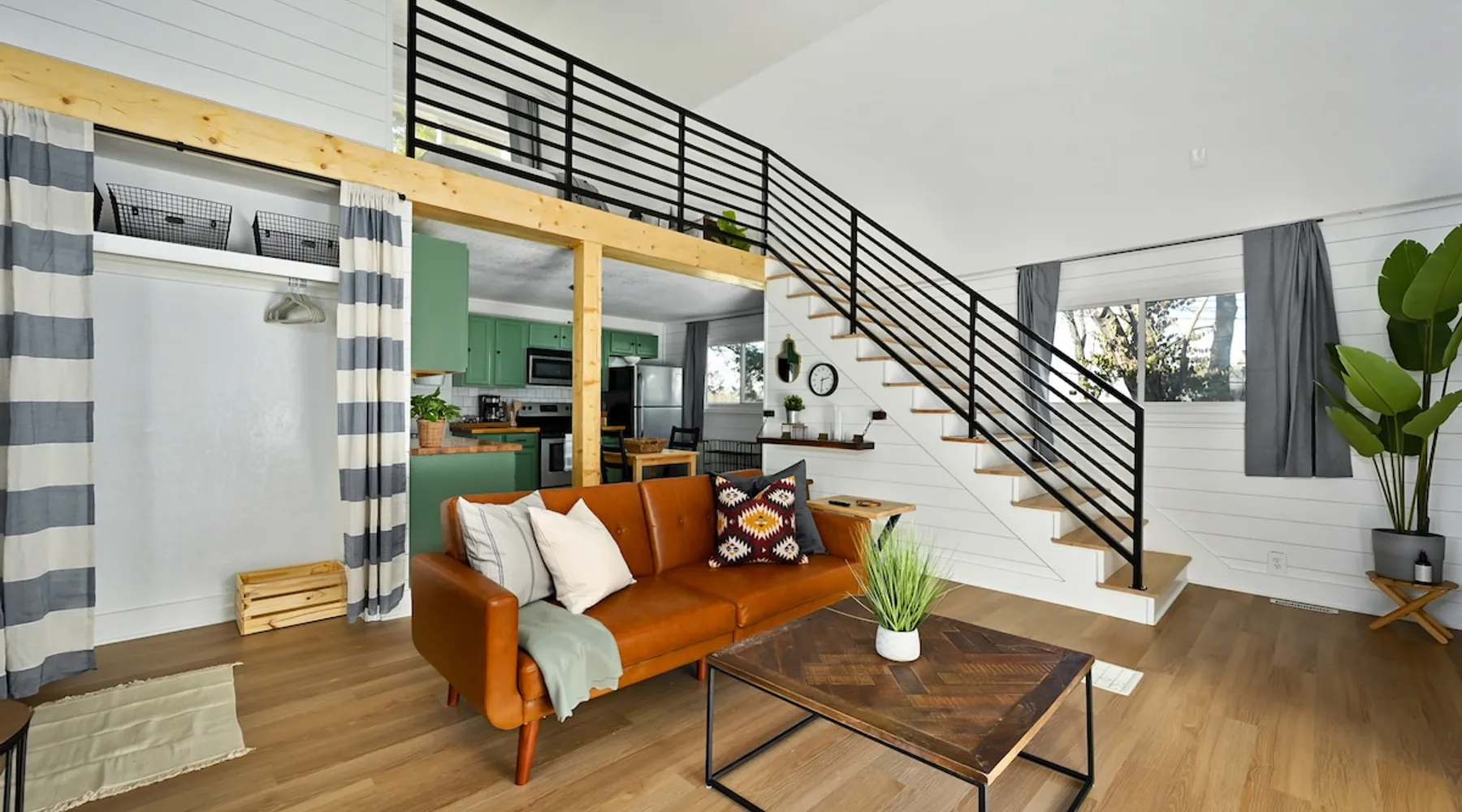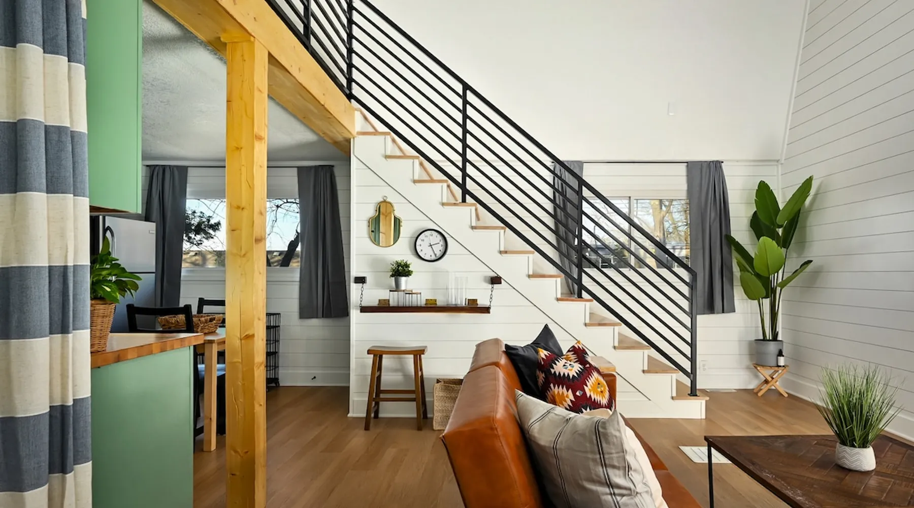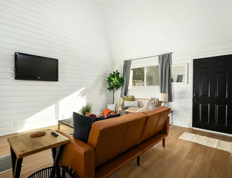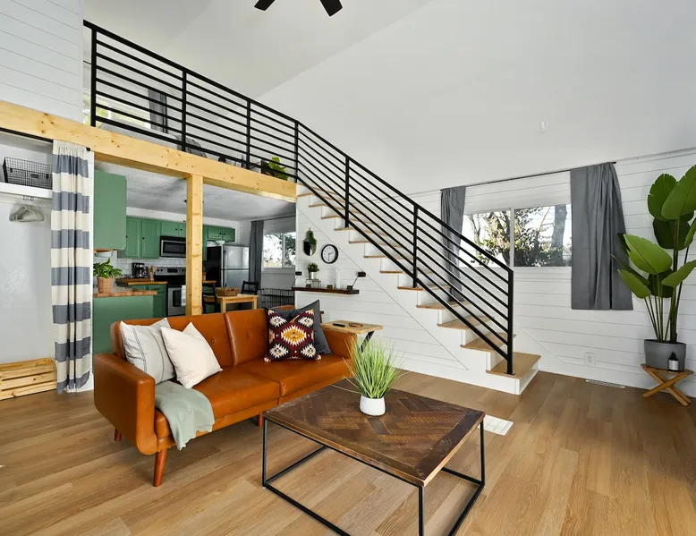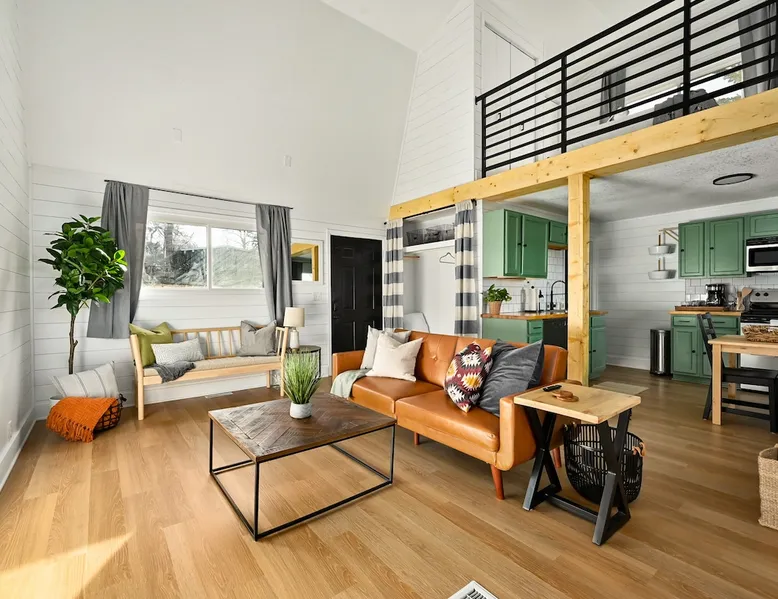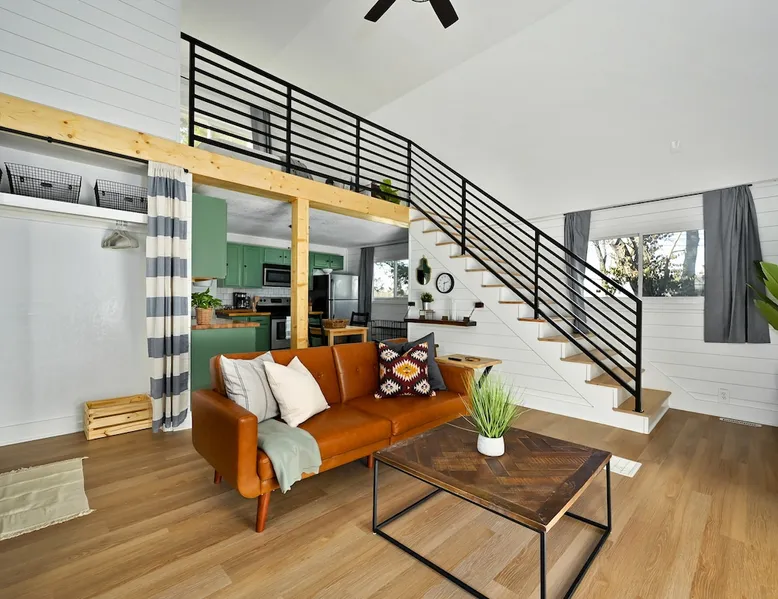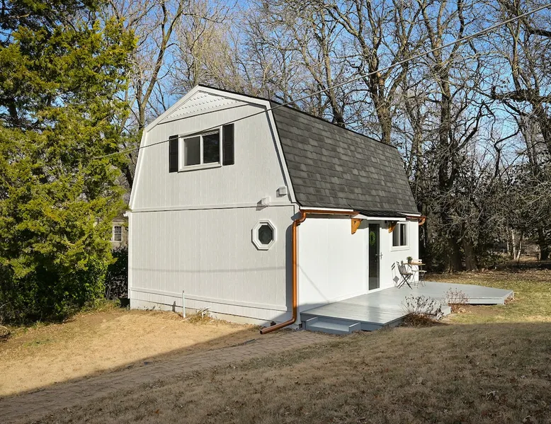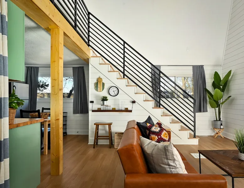 Enjoy your home away from home with style! This separate guest house has 1 bedroom & 1 bathroom that gives you privacy while still being centrally located in Prairie Village of Kansas City. Floor to ceiling shiplap walls, wood floors, black metal railing, & stylish decor you will feel like you're in an episode of Chip and Joanna Gaines' Fixer Upper! The home has its own private entrance, Washer/Dryer in unit and a fully functioning kitchen. High speed GooglFiber internet. The space Wide open floor plan with 20 foot ceilings. Open lofted bedroom area sleeps 2. Foldout sofa sleeper. Kitchen is ready to cook with proper pots, pans, utensils. Guest access Setting is a high end suburb neighborhood with plenty of parking.