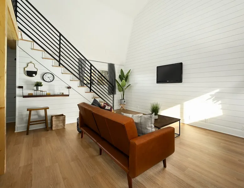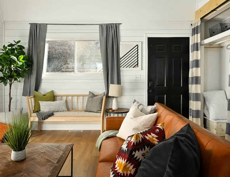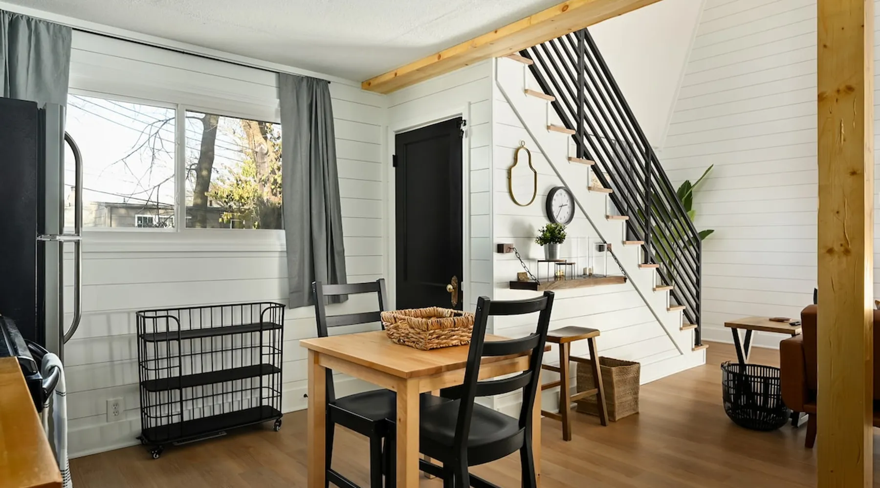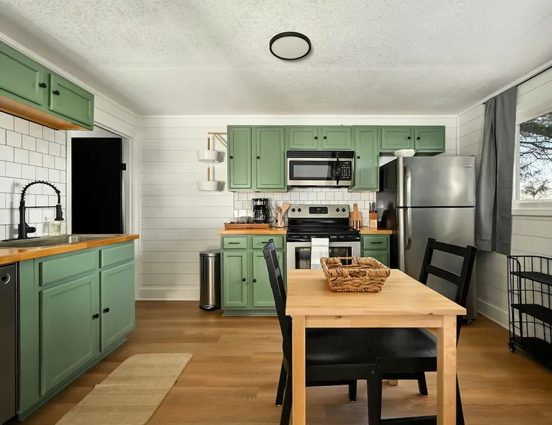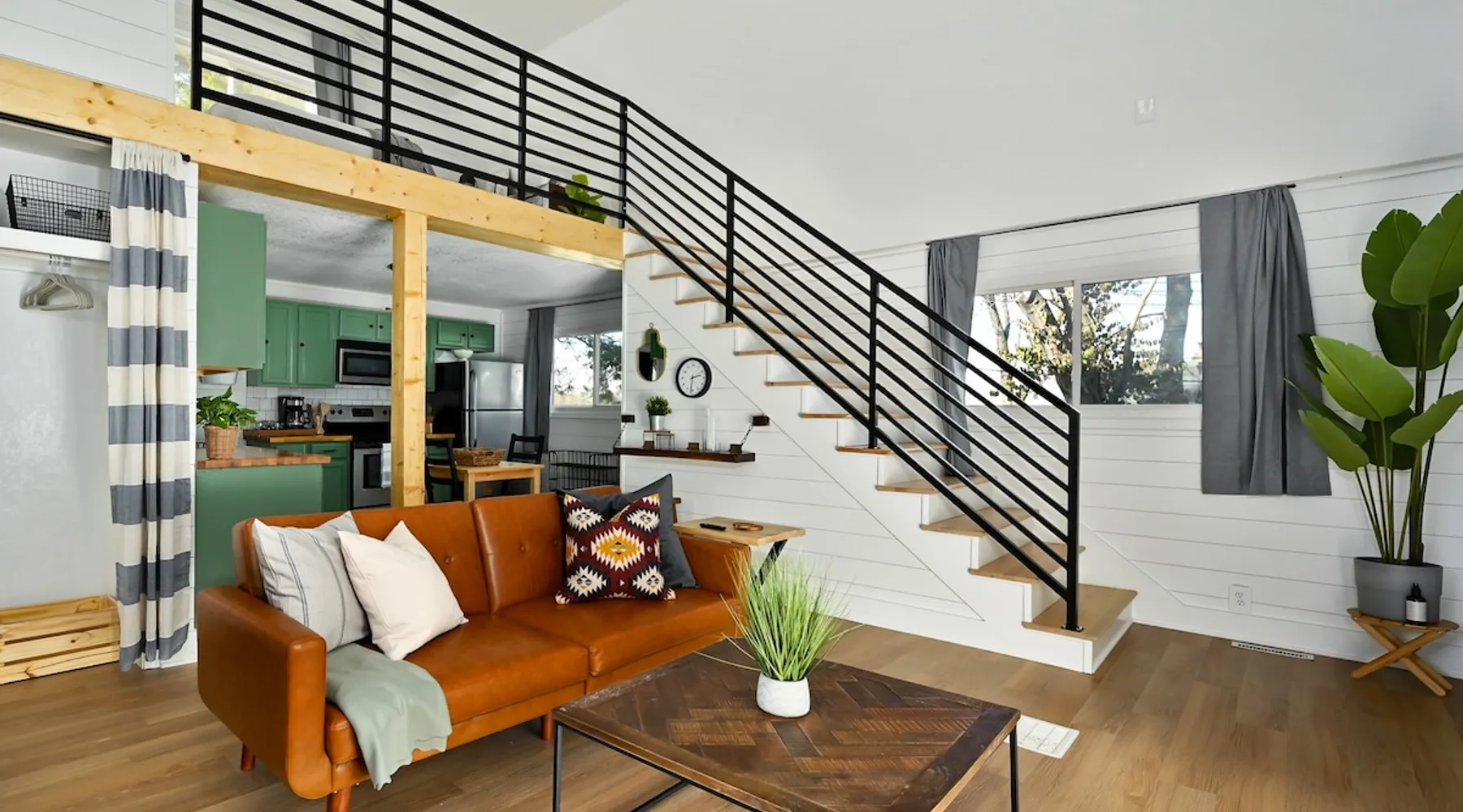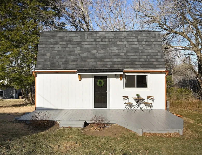 Enjoy your home away from home with style! This separate guest house has 1 bedroom & 1 bathroom that gives you privacy while still being centrally located in Prairie Village of Kansas City. Floor to ceiling shiplap walls, wood floors, black metal railing, & stylish decor you will feel like you're in an episode of Chip and Joanna Gaines' Fixer Upper! The home has its own private entrance, Washer/Dryer in unit and a fully functioning kitchen. High speed GooglFiber internet. The space Wide open floor plan with 20 foot ceilings. Open lofted bedroom area sleeps 2. Foldout sofa sleeper. Kitchen is ready to cook with proper pots, pans, utensils. Guest access Setting is a high end suburb neighborhood with plenty of parking.