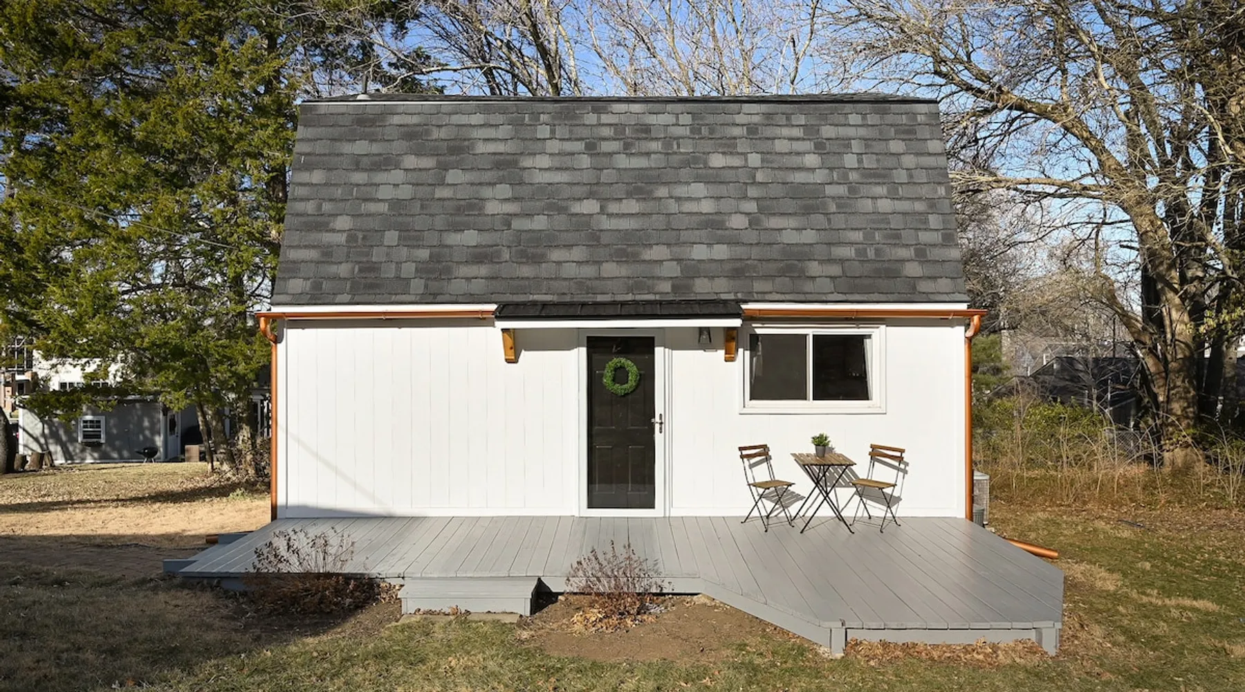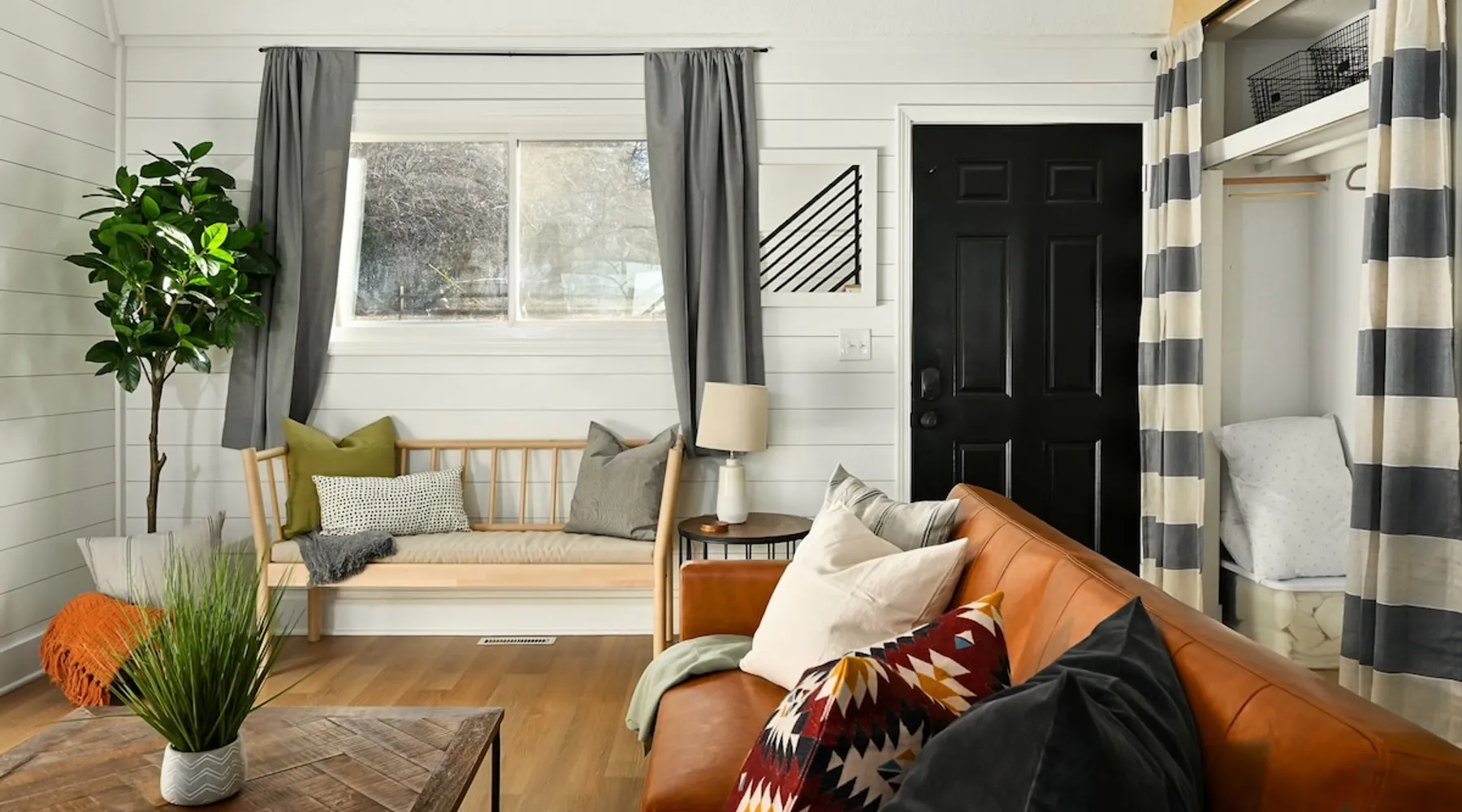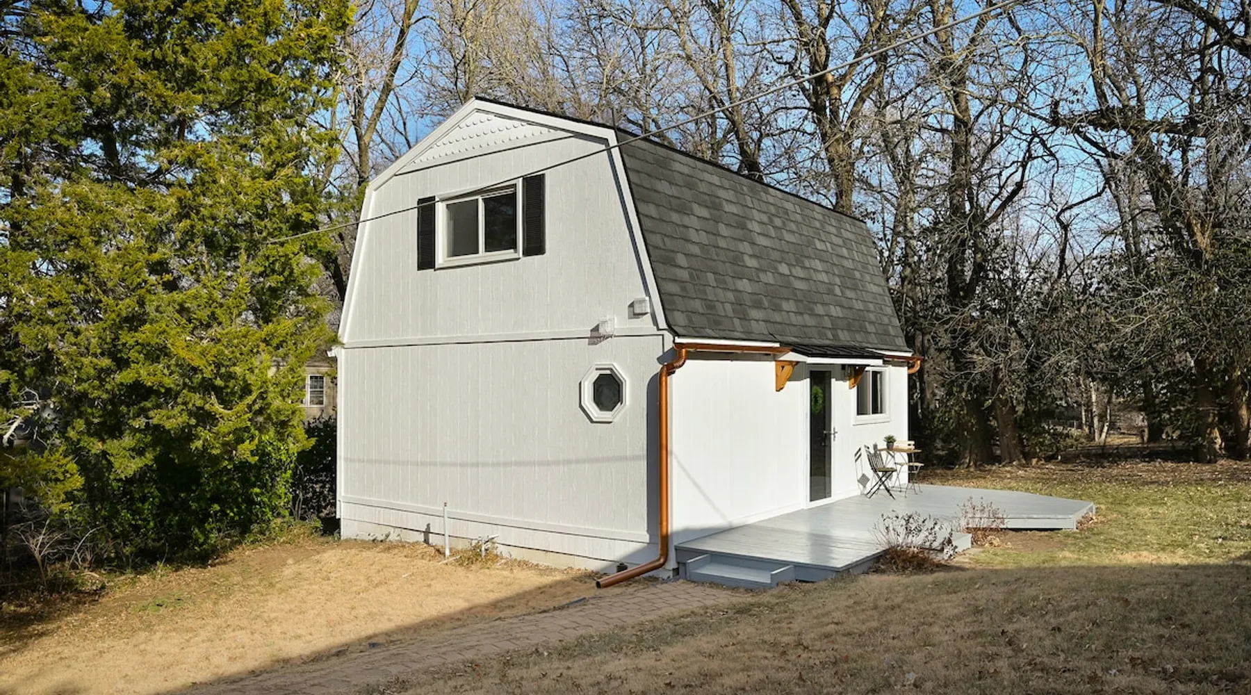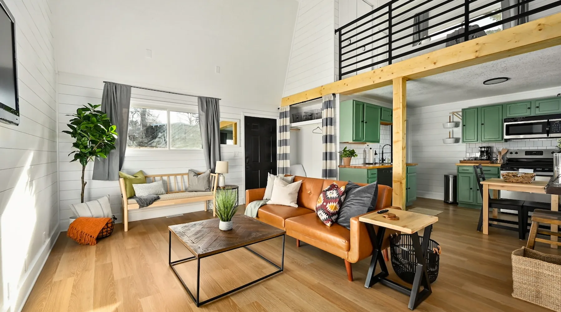 Enjoy your home away from home with style! This separate guest house has 1 bedroom & 1 bathroom that gives you privacy while still being centrally located in Prairie Village of Kansas City. Floor to ceiling shiplap walls, wood floors, black metal railing, & stylish decor you will feel like you're in an episode of Chip and Joanna Gaines' Fixer Upper! The home has its own private entrance, Washer/Dryer in unit and a fully functioning kitchen. High speed GooglFiber internet. The space Wide open floor plan with 20 foot ceilings. Open lofted bedroom area sleeps 2. Foldout sofa sleeper. Kitchen is ready to cook with proper pots, pans, utensils. Guest access Setting is a high end suburb neighborhood with plenty of parking.
