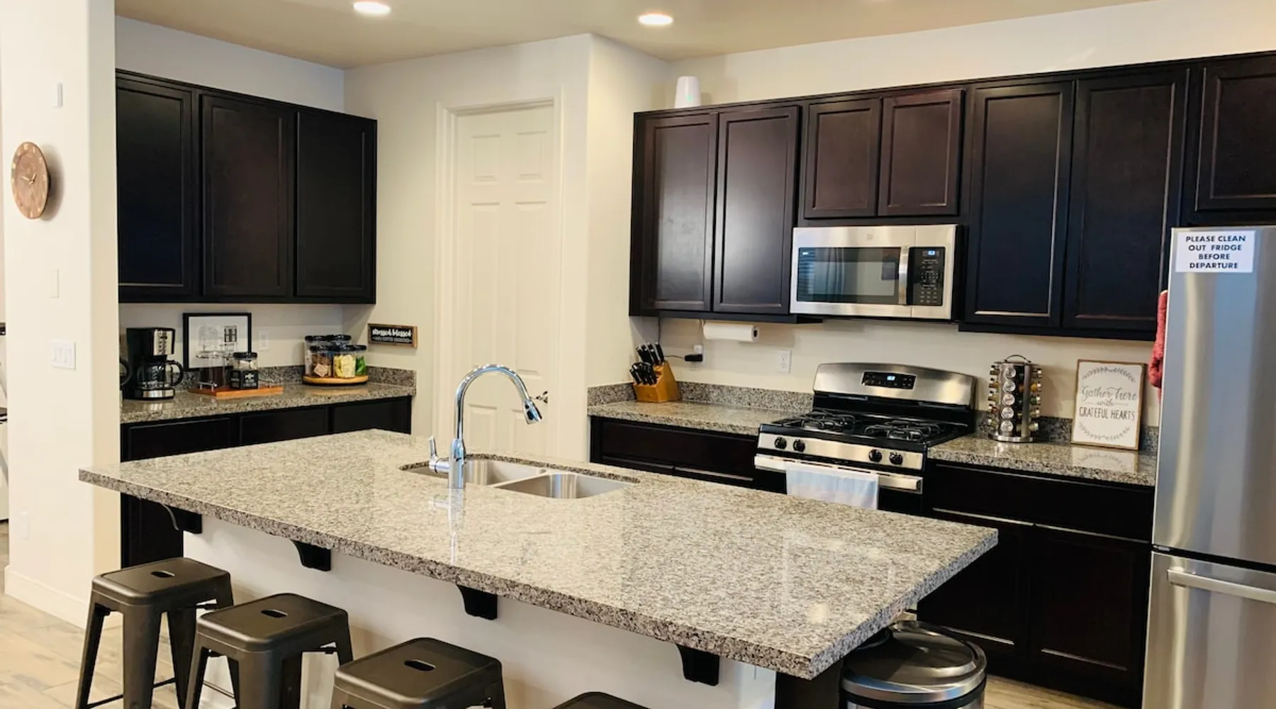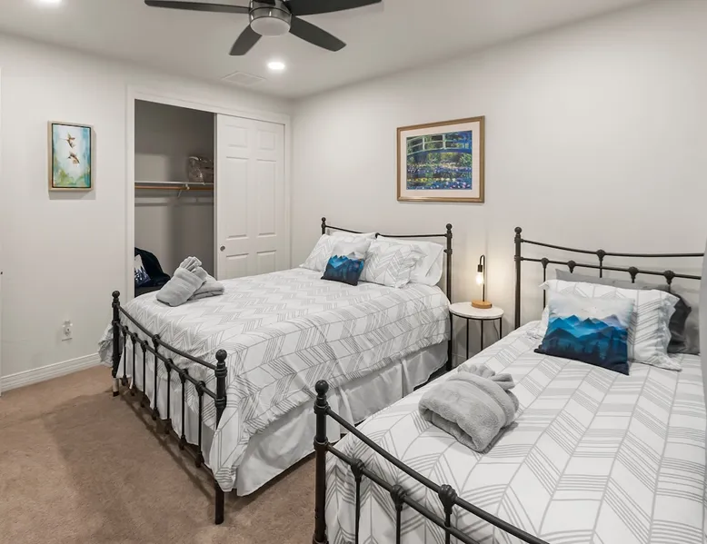 Getaway from the day to day in a peaceful refuge. The space The Mountain Getaway is at approximately 7,500 feet with great access to the four seasons. Just west of Historic downtown, and Northern Arizona University, you can explore all the best that Flagstaff has to offer! Incredible hikes, great skiing, delicious meals at vibrant downtown restaurants, and much more. Looking for a day trip? A little further away you can explore Sedona, Williams and the Grand Canyon. The property is a newly built, two story home with tile and carpet flooring through out. The open great room floor plan contains a fully equipped kitchen, with stainless steel appliances and granite countertops, to enjoy a delicious meal and spend time with family and friends. The dining table expands to seat 6, and the breakfast bar seats 4. Adjacent to the kitchen and dining, is the main living space with comfortable seating and an Amazon/Netflix ready TV for your entertainment pleasure. The back patio/yard is off the dining area and fully fenced, for your privacy. Other items available to make your stay more comfortable: -Full size washer and dryer -1 Car garage -High Speed Internet -2 Amazon Fire ready TV -Central Heating -Air Conditioning -Ceiling Fans (+ desk & floor fan in the loft) -Inflatable mattress should your stay expand to 9 or 10 guests -A nearby park behind the house and a large park two blocks west, toward Woody Mountain Rd Provided for use during your stay: -Coffee & Tea Service; coffee, creamer, sugar, & other sweeteners -spice rack in the kitchen + salt/pepper grinder -Fresh linens & Towels -Toilet Paper -Shampoo & Conditioner -Body Wash -Hand Soap -Paper Towels -Filtered Water dispenser in the Fridge -Dishwasher detergent -Dish Soap -Laundry detergent The main suite with attached bathroom is on the first floor. All other bedrooms are on the second floor. There are four beds in three bedrooms. An additional twin pullout bed is available in the loft office, and the linens are in the hallway closet next to the bathroom. An inflatable queen mattress is located in the downstairs coat closet, as well as all linens. Bath towels are located in the upstairs hallway closet. No pets, smoking, parties or events are permitted. If you have a special request, please message and I will do my best to accommodate. Guest access You will have access to the entire home. Other things to note ITEMS PROVIDED: -Coffee, Tea and Paper Products -Dish Soap, Dishwasher Soap Pods, Laundry Soap Pods -Shampoo, Conditioner and Soap