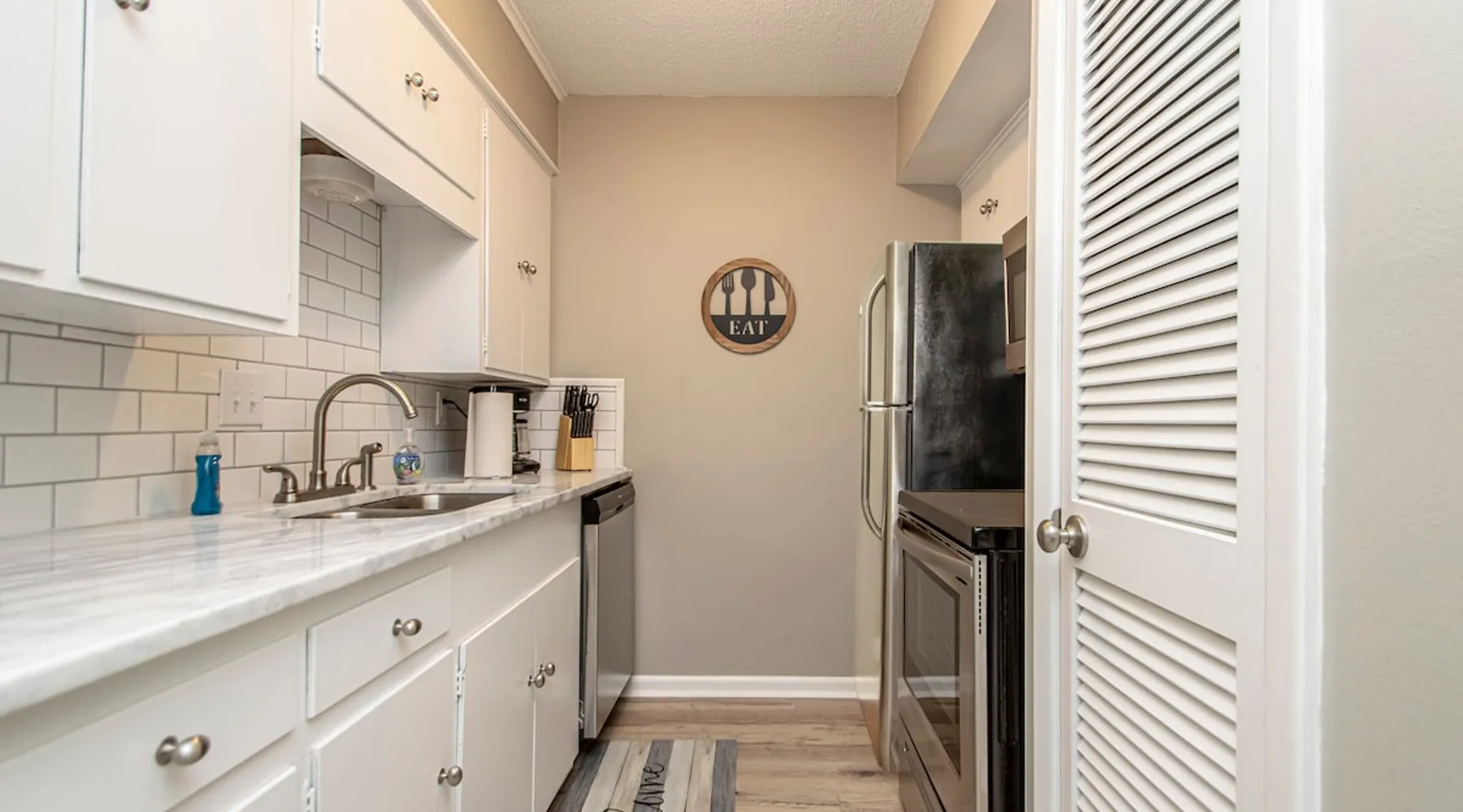 Welcome to Unit B at Oak-Ridge in Hillcrest. This ground level, 1-bedroom, 1-bath apartment located in one of the most desirable neighborhoods in Little Rock is perfect for the business traveler or a couple looking to get away for the weekend. With a luxurious king size bed, full size kitchen, smart TV, free Wi-Fi, and plenty of bath and kitchen amenities, you will have everything you need for a great stay. The space Bedroom: ♦ King size bed with memory foam mattress ♦ Charging stations on both sides of the bed ♦ Dresser ♦ Double closets Bathroom: ♦ Shower tub combo ♦ Towels provided for 2 guests. Kitchen: ♦ Fully stocked with pots& pan, cooking utensils, chefs knives, plates, bowls, flatware, drinking glasses ♦ Full size refrigerator ♦ Oven, range, and over the range microwave ♦ Dishwasher (detergent provided) Living/ dining room: ♦ Coach and arm chair ♦ 42” smart TV ♦ Bar cart ♦ Dining table that seats 2 Parking: ♦ Free off street parking right in front of the unit ♦ Well lit with motion lights The WiFi is fast and reliable for those visiting for work, and the private entrance has a digital lock to enter for easy self-check in. We are walking distance from many local hang-outs and attractions. Guest access Everything inside the unit is for your private use. There is room for one vehicle in your party to park in the parking area. If you have more than 1 vehicle, it must be parked on the street. Street parking is free. Other things to note Important: Before you arrive you will be asked to complete guest verification through third-party provider Superhog. This is done to ensure we are keeping up-to-date with short-term rental regulations as well as providing both our guests and our properties with extra protection. Superhog will contact you via email and/or text to complete the verification. Please do so prior to arriving at the property to enable a quick and easy check-in process. You’re in the neighborhood of Hillcrest. Hillcrest features beautiful turn-of-the-century homes and cottages, with wonderful restaurants and shops. Head right on Kavanaugh Blvd. as you exit our parking area. Stroll along the promenade, visit our quirky shops like Control Record Store and Abbi’s Teas and Things, or grab a cup of Joe at Milo’s Coffee House. Explore the city and enjoy our neighborhood. Browse through our information book for suggested places to visit.