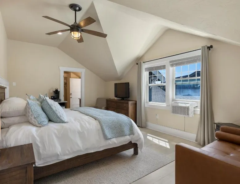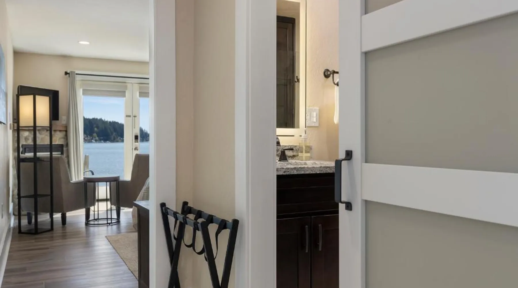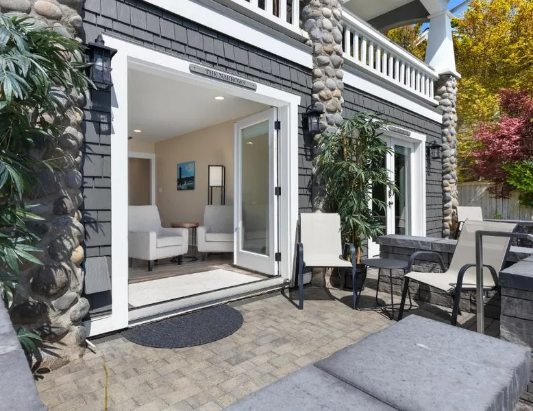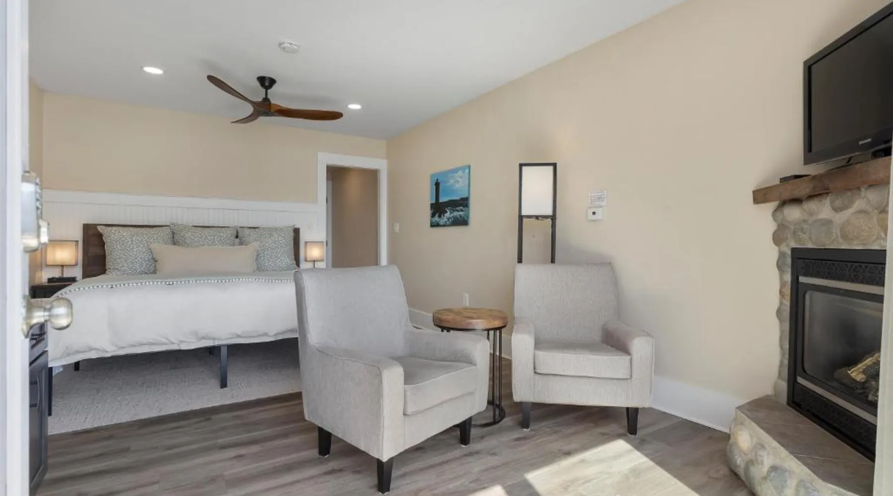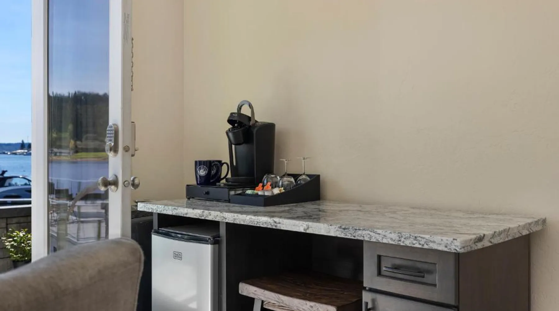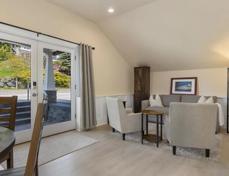 Elegant Accommodations: Waterfront Inn in Gig Harbor offers adults-only rooms with sea views, terraces, and balconies. Each room features air-conditioning, a private bathroom, and modern amenities including a work desk and free WiFi. Exceptional Facilities: Guests can enjoy a sun terrace, water sports facilities, and a lush garden. The inn provides free WiFi, outdoor seating areas, and private check-in and check-out services. Additional amenities include a fireplace, kitchenette, and dining area. Prime Location: Located 34 mi from Seattle–Tacoma International Airport and 14 mi from the Museum of Glass, the inn offers easy access to local attractions. Guests appreciate the scenic views, comfortable rooms, and nearby options for food and drinks. This 2 bedroom suite includes 2 bedrooms and 2 bathrooms adjoined by a common area with a table and kitchenette with a seating area. One room has a gas fireplace and the other has an electric fireplace. Both rooms have free WiFi and flat-screen TVs. The private bathrooms include towels and toiletries. A refrigerator, microwave, ice maker and coffeemaker are also provided. Only one of the rooms has an obstructed ocean view. The other room has a street view.