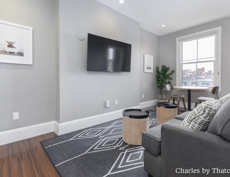 J. Miller Flats on Charles is one of the few professionally managed short-term rentals available in the City and the location can’t be beat, in the heart of Beacon Hill, on its most iconic street – Charles Street. This one-bed apartment can sleep up to 4, has a full kitchen, queen sleeper sofa and new furniture and interior design in 2022. Fast wi-fi, smart TV for streaming, elevator, keyless entry and Thatch’s quality guarantee make this apartment a sure bet for leisure, work or family travel. The space This Apartel (apartment-hotel) is the perfect place for up to 4 people looking for more space and more functionality than a traditional hotel. The full kitchen allows you to prepare anything from coffee to quick breakfast before heading out to a full meal in the comfort of your own home away from home. The living room has a queen sofa bed, allowing separation of sleeping space from the queen bed in the bedroom. In 2022 Thatch on Charles underwent some big renovations -- we added central AC to this unit, all new furniture, and the interior design was completely redone with new paint, wall coverings, art, accent lighting and more. The floor plan and furnishings of the unit have been meticulously thought through to ensure the best possible stays for leisure and business travelers alike. PARKING IS AVAILABLE & LIMITED. You must reserve a parking spot ahead of time. Please call or email us directly if you wish to reserve a parking spot. Key features include: -Fast, free wi-fi (1GB) -Well-equipped kitchen -Queen sofa bed in LR -Heat and AC, guest controlled -Queen bed -55” smart TV for streaming in LR -One parking spot available for rent (must be paid for directly not via AIRBNB) Guest access J. Miller Flats partners with RemoteLock® providing unique access codes for each guest, offering easy and secure access to the unit. Within 48 Hours of check-in, guests will receive a confirmation email with entry codes and detail access instructions. The building is monitored 24/7 with security cameras in the common areas. Check-in window is between 3PM and 10PM Other things to note "Thatch is a local, Boston-based hospitality management company. Our offices are located in the South End. We manage over 100 furnished apartments in throughout Boston including nightly, extended stay and co-living places. Check out us out on IG or online. We are available Monday through Friday during business hours and on weekends and after hours for emergencies. Text and email are the best way to reach us. Registration Details Exempt: This listing is a hotel or motel