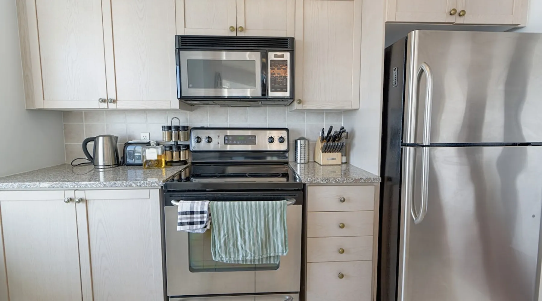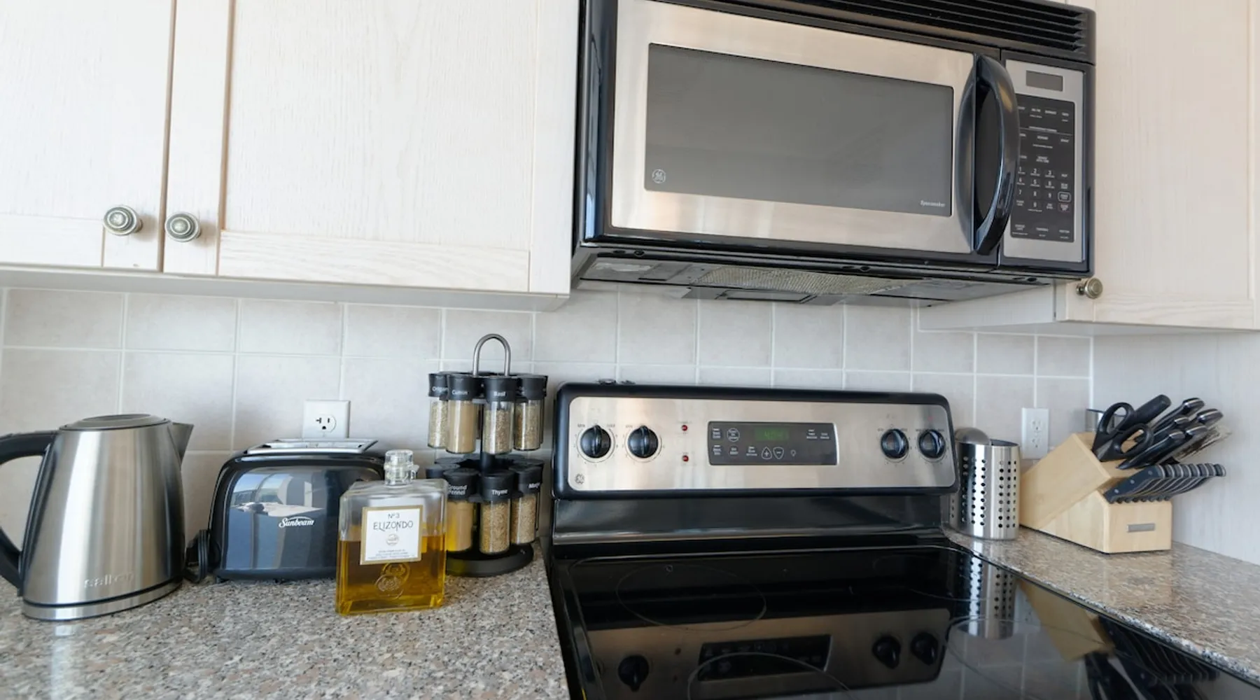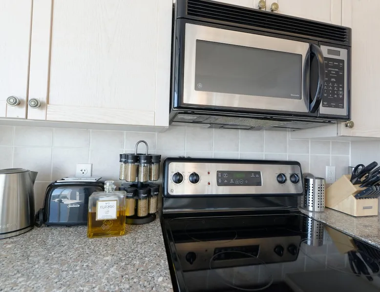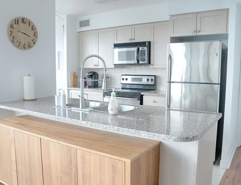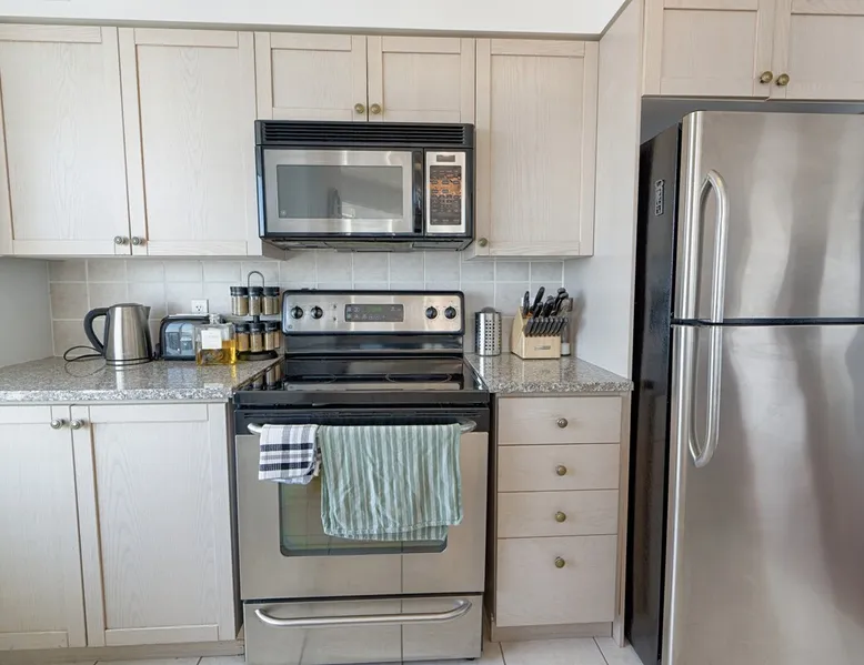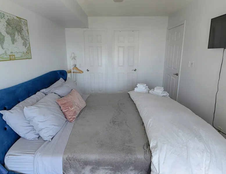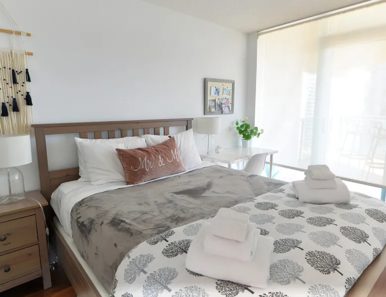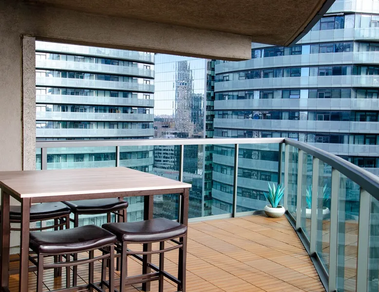 Professional cleaning: All furnaces disinfected with Lysol. One Free onsite Parking! Only available for long term rental. Expansive floor to ceiling windows (with roller shades) offer breathtaking, panoramic views of the CN Tower, Rogers Centre, Aquarium, Harbour Front, Lake and Toronto Island. Third queen bed set up in the breakfast area with curtains to ensure privacy. The space We viewed over hundreds of condos in downtown Toronto to find this diamond. Luxurious, spacious, two bedroom condo in an exclusive complex in downtown Toronto, this unit's location is second to none! Whatever you are in Toronto for, we are probably near it. Watch the sun rise AND set with fabulous south-southwest views. Have a morning coffee or evening cocktail on the sprawling, south-facing, oversized deck. Or have a quiet moment to yourself on the second deck off your master bedroom. Perfect for visiting tourists, families, business people looking for an upscale place to call home, in a fabulous location with stunning views. Guest access BATHROOMS - soaker tub with shower (shower stall in second bathroom) - fluffy, high quality towels. KITCHEN - a fully-equipped, modern kitchen has all you need to prepare a gourmet meal: - stainless steel range, refrigerator, dishwasher, microwave oven - stainless steel pots & pans - full dinnerware set - all cooking utensils, cutlery & glassware - Bodum Electrical burr Coffee grinder and Cuisinart coffeemaker - washer/dryer. BALCONIES - cozy bistro set full patio dining set on main balcony - cozy bistro set to enjoy morning coffee off the master bedroom. BUSINESS - workstation in both bedrooms - high speed internet The building is fully secured, with key/fob controlled access. Superb array of amenities: health club, swimming pool, hot tub and his & her saunas.