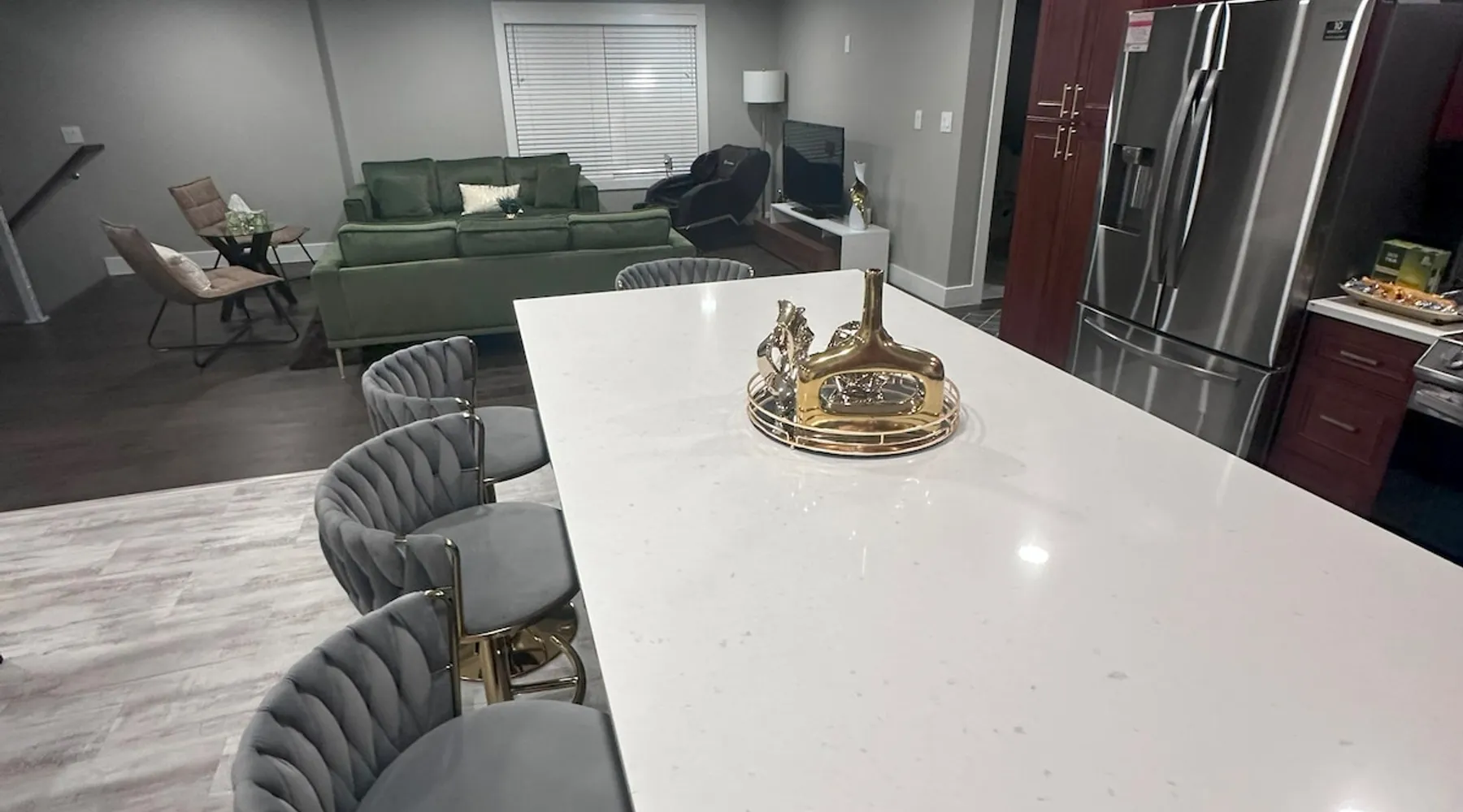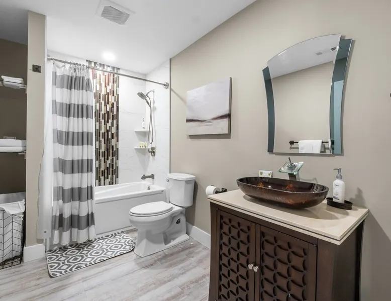 🌟 Explore Fort Wayne in Style! 🌟 🏙️ Centrally located within minutes to top attractions is this modern architecturally designed condo right in the heart of Fort Wayne. With two spacious bedrooms, a large chef’s kitchen, and a charming wraparound balcony, your perfect getaway awaits! 🍽️ Short walk downtown to dining, shows, theatres, parks & more! USF Performing Arts Center .6mi Promenade Park .8mi Headwaters Park 1.2mi Clyde Theatre 1.6mi The space Key Features: 🌆 Prime downtown location with quick access to Fort Wayne’s attractions 🛏️ Two comfortable bedrooms, with the master suite locked off if you select to book the 2-bedroom condo 🛋️ Spacious, open-plan living area with designer sofas and large smart TV 💆♂️ Massage chair for ultimate relaxation after a day out 🍽️ Fully equipped kitchen with high-end appliances and elegant dining space 🌿 Charming wraparound balcony with seating and neighborhood views 🚗 Free parking, high-speed Wi-Fi, and in-unit laundry facilities 🌟 Elegant 2-Bedroom Downtown Condo with Massage Chair & Balcony Views! 🌟 Welcome to your luxurious getaway in the heart of Downtown Fort Wayne! Our upscale condo offers a serene retreat with sun-filled rooms, designer furnishings, and all the modern amenities you need for a memorable stay. Located close to top attractions, dining, and shopping, this 2-bedroom condo is ideal for couples, friends, and business travelers looking for a high-end experience in Fort Wayne. 🏡 Your Home Away from Home: Central Downtown Location: Situated in the heart of Fort Wayne, enjoy easy access to Promenade Park, Parkview Field, USF Performing Arts Center, and Clyde Theatre. The city’s best dining, shopping, and entertainment are just steps away. Spacious Living Area: Relax in our stylish, open-concept living area with plush sofas surrounding a large smart TV. The perfect spot to unwind, catch up on your favorite shows, or enjoy a movie night in comfort. Massage Chair for Ultimate Relaxation: Treat yourself to the ultimate relaxation with our state-of-the-art massage chair. Whether you’ve had a busy day exploring the city or attending meetings, this chair is designed to soothe your muscles and elevate your comfort. Beautiful Bedrooms & Bathrooms: -- Two Spacious Bedrooms: This condo features two inviting bedrooms, each with a queen bed and premium linens for a restful night’s sleep. -- Primary Bedroom: While the master suite with its private bath is temporarily locked off and not available during your stay, the condo’s two other spacious bedrooms offer a cozy, peaceful atmosphere. -- Second Bedroom: Overlooking the balcony, this bright room features a comfortable queen bed with easy access to a separate bathroom down the hall, complete with a waterfall faucet and relaxing bath/shower combination. 🍽️ Fully Equipped Chef’s Kitchen: Our chef’s kitchen has everything you need for dining in, including a fridge/freezer with chilled filtered water and ice, a coffee machine, an oven and cooktop, a microwave, and a dishwasher to make cleanup easy. Enjoy your meals at the elegant dining table with seating for six, or sit at the breakfast bar with comfortable seating for two. 🌞 Charming Balcony for Outdoor Relaxation: Step out onto the wraparound balcony and enjoy neighborhood views or catch a glimpse of fireworks from Parkview Field after a ballgame. Perfect for your morning coffee or evening cocktails, this space offers a peaceful spot to unwind and soak in the city atmosphere. 🚗 Convenient Amenities for a Seamless Stay: Free On-Site Parking: Leave your car parked securely as you explore Fort Wayne by foot or take advantage of nearby Uber, taxis, or bike rental options. High-Speed Wi-Fi: Stay connected with fast Wi-Fi, perfect for remote work or streaming. In-Unit Laundry: Full access to a washer and dryer to keep you fresh and ready for every day of your stay. Explore the Best of Fort Wayne: Our condo is perfectly located for you to experience the best of Fort Wayne. Stroll along the scenic riverside at Promenade Park, catch live shows at USF Performing Arts Center, or enjoy local events at Headwaters Park—all just minutes from your doorstep. 🌆 Book Now for a Luxurious Downtown Fort Wayne Stay! 🌆 Don’t miss your chance to stay in this beautiful, centrally located 2-bedroom condo. With its unbeatable location, high-end amenities, and relaxing massage chair, our condo has everything you need for a memorable stay in Fort Wayne. Book now to secure your dates and experience Fort Wayne in style! ✨ Why choose our Downtown Fort Wayne condo? ✨ Prime downtown Fort Wayne condo close to Promenade Park, Headwaters Park, USF Performing Arts Center & Clyde Theatre. ✨ Perfect for business travelers, couples, and families – with high-speed WiFi, free parking, in-unit laundry, and a chef’s kitchen. ✨ Relax on the wraparound balcony, unwind in the massage chair, or enjoy streaming on the large smart TV. 🍳 Fully equipped kitchen with cooking basics, coffee maker & dishwasher 💻 Dedicated workspace + high-speed WiFi + Ethernet – ideal for remote work 🧺 In-unit washer & dryer for longer stays 🅿️ Free on-site & street parking included 👶 Family-friendly with crib, bathtub & extra linens 🚪 Private entrance, 🌿 balcony with outdoor seating, and 🌻 backyard access for fresh air & relaxation 📍 Perfect for business travelers, families, and weekend getaways – all just steps from Fort Wayne’s dining, theaters, and parks. ✨ Walk to the best dining, shopping, and entertainment Fort Wayne has to offer. 🌬️ Air conditioning & heating for year-round comfort 👉 Book now to enjoy a stylish, modern stay in the heart of downtown! Guest access Guests have private access to the entire house except the upstairs Master bedroom/bathroom as well as the private yard, free Wi-Fi, free parking, and complimentary coffee. INTERACTION WITH GUESTS We strive to ma