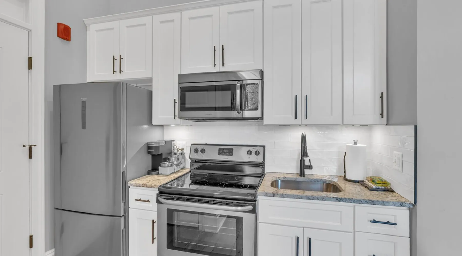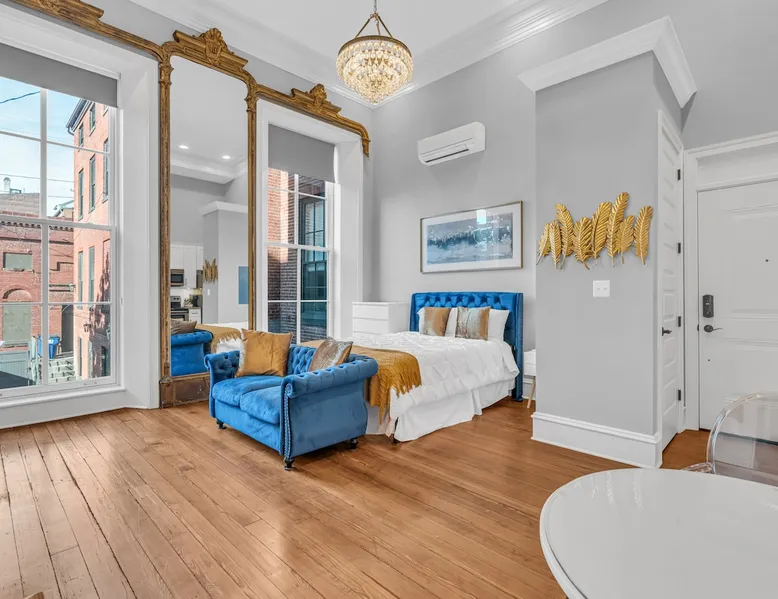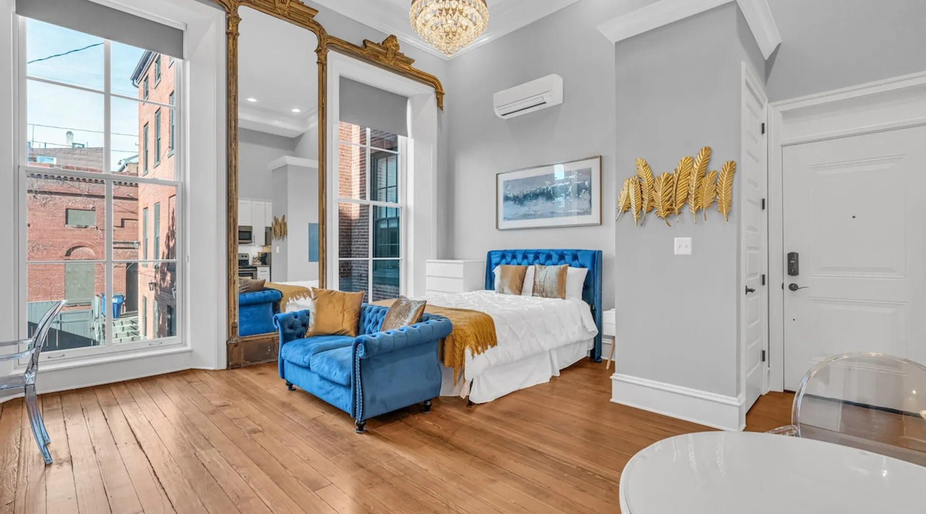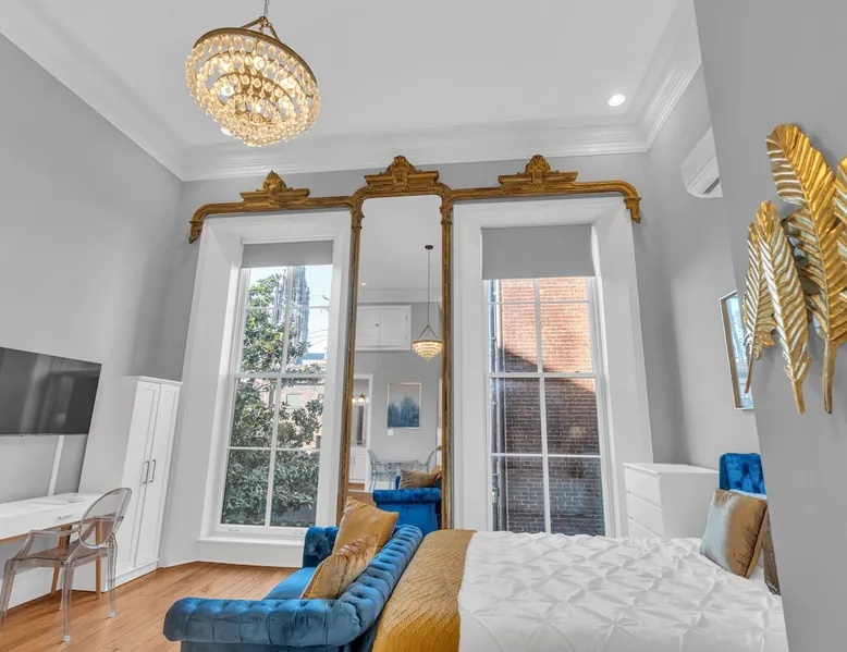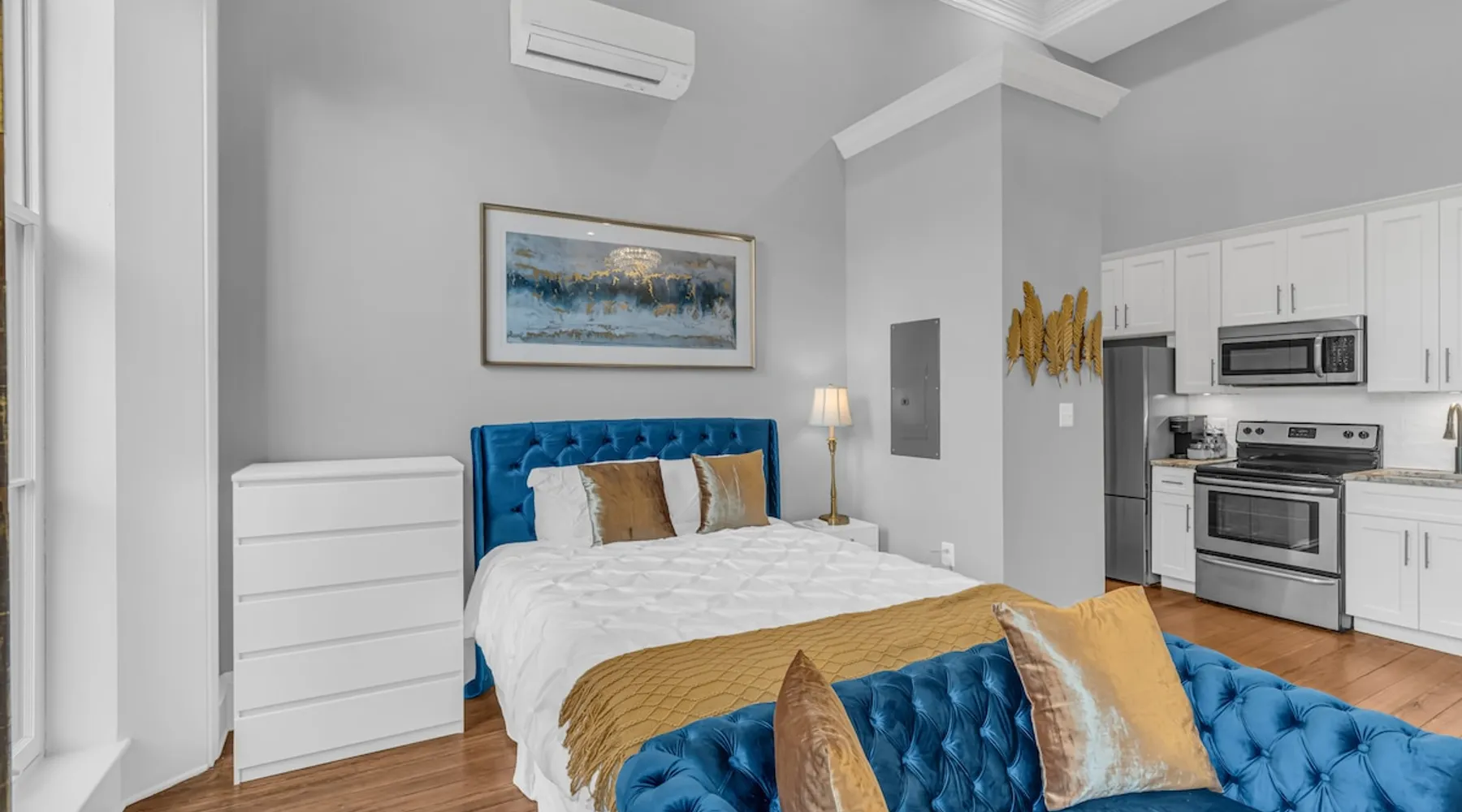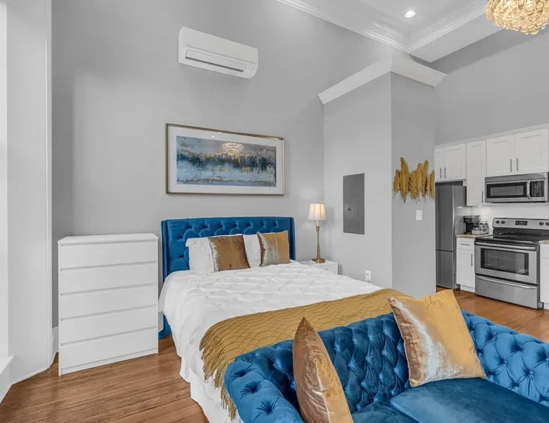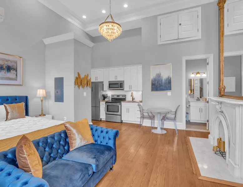 Experience the perfect mix of classic architecture and modern design in the heart of Mount Vernon. Our carefully designed studio, located in a beautifully restored building, offers luxurious features like high ceilings and a secure main entry door for your comfort and peace of mind. Building amenities include a lounge with a billiards table and a fenced backyard exclusively for guests to enjoy. The space Welcome to this inviting studio in a beautifully restored historic building in the heart of Mount Vernon. It blends timeless charm with modern comforts, featuring high ceilings, large windows, and stunning original hardwood floors that highlight the building's unique character. This Baltimore studio is your personal retreat! Furnished with a perfect mix of style and practicality, it offers a warm atmosphere filled with natural light from expansive windows. The high ceilings add a touch of sophistication, creating a spacious yet cozy ambiance. All utilities, including electricity, air conditioning, heat, water, DirecTV, and high-speed Wi-Fi, are included. We provide linens, towels, and sheets, so your move-in is hassle-free—just bring your clothes! Parking is free on the street, but if you prefer a more secure option, there's a garage half a block away that charges $6 per day or $180 per month. As a resident, you'll have access to the building's recreational room, which features a big screen TV, cozy seating areas, and a billiards table. The spacious gated yard is a peaceful retreat for residents. Laundry facilities are also available for your use. Convenience is key with our fully automated building and apartment entry system—no physical keys needed. Additionally, a call box system at the entry door provides extra security and ease of access. Please note, due to the building's historic nature, there are no elevators, and this unit is on the second floor. We welcome both long- and short-term reservations, and the building is pet-friendly! Guest access You will also have access to the building's recreational room, which boasts a big screen TV, a comfortable living area, a billiards table, and a spacious gated yard. Additionally, a shared laundry room is available for your use. Other things to note Please note that this studio is located on the second floor of a historic building that does not have an elevator. For stays of four months or longer, your monthly rate includes a generous $200 utility allowance. The allowance includes water, WiFi and electric. In our experience, guests typically stay well below this amount. If your usage goes over the allowance, we’ll share the bills with you and send a payment request through Airbnb to cover the difference. A one-time pet fee of $100 per pet applies to each stay. We’ll send a payment request after your booking is confirmed.
