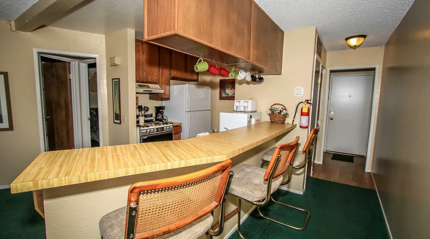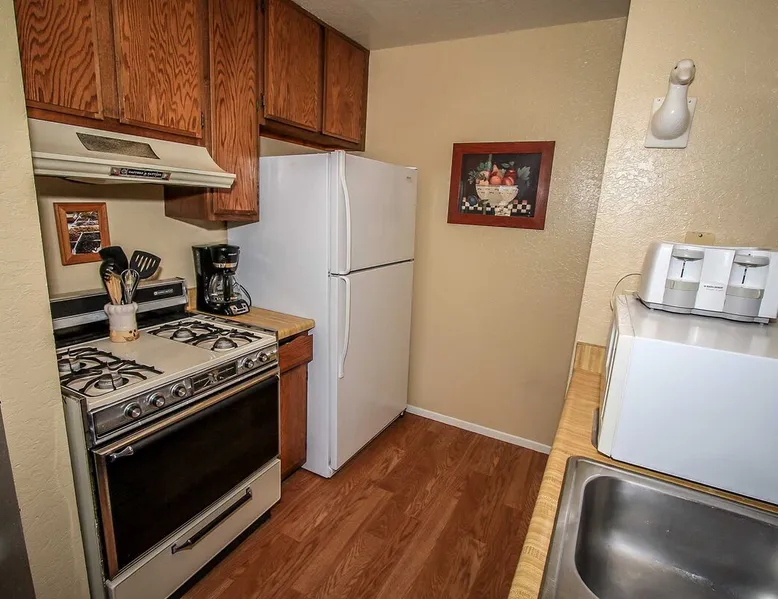 Boulder Creek is a cozy lakeside lower level condo with the essentials needed for your group to experience a great mountain vacation, within a ten minute drive to the resorts or Village and only feet from Boulder Bay Park with lake access for fishing, kayaks and a great grassy area for picnics. Located in a quiet Boulder Creek Resort the complex is a prime year round location sitting right next door to Boulder Bay Park with year round fishing, picnic areas, and kayak rentals. The space Boulder Creek 8 Lakeside Cozy Townhouse Retreat Boulder Creek is a cozy lakeside lower level condo with the essentials needed for your group to experience a great mountain vacation, within a ten minute drive to the resorts or Village and only feet from Boulder Bay Park with lake access for fishing, kayaks and a great grassy area for picnics. Located in a quiet Boulder Creek Resort the complex is a prime year round location sitting right next door to Boulder Bay Park with year round fishing, picnic areas, and kayak rentals. The complex offers a community pool and hot tub for guests use along with a massive flat and open parking area which is the ultimate bonus to this cozy chalet retreat no matter the season you choose to visit Big Bear. Entering your vacation condo you are immediately greeted with a spacious bedroom suite to your right which includes warm linens, blankets, pillows, and a private balcony overlooking the complex courtyard where you will love sipping your first cup of coffee in the mornings. This primary suite includes a private full bath and plenty of dresser and closet space for you to unpack. Head down the hallway where you are met with a stacked washer and dryer and dining stools along the breakfast bar and your equipped kitchen where the chef of your group will find all that you need to whip up your home cooked meals including cookware and utensils, general appliances, and a dishwasher to ensure your cleanup is a breeze. The cozy and warm open floor plan living and dining room area here offers vaulted ceilings and bay views from the big open windows along with another private balcony with outdoor patio furnishings and a propane BBQ for you to grill up your freshly caught dinner from the lake. You will love snuggling up on the cozy couch and warming your toes together in front of the toasty wood burning fireplace as you watch the snow falling out over the bay and pop on a movie on the flat screen TV with complimentary Cable and hi speed WIFI internet provided by the owners for your enjoyment. The guest bedroom and bathroom are easily accessible from here, also made up for your group with warm linens, blankets, pillows, and fresh shower towels for your vacation when you arrive. Boulder Creek is a wonderful vacation destination pairing the necessities and comforts from home with a prime Boulder Bay location- you have endless possibilities at your fingertips from here! Sleeping Arrangements: Bedroom 1: Queen Bed, Private Balcony + Full Bath Bedroom 2: Queen Bed Bathroom Arrangements: Private Full Bath- Bedroom 1 Hallway Full Bath -Sleeps 4 -2 Car Driveway Parking -2 Pets Welcome w/ Additional fee -827 Square Feet City Permit #: VRR-2024-0180 Other things to note Big Bear Vacations & Cabins House Rules and Policy Information *Please read all rules and policies completely- Your booking/request to book constitutes your understanding and agreement of the below Policies & Information* **Reservation Holder Must Be 21+** **Electronic Rental Agreement & Good Neighbor Policy Required** **Guests must provide ID for Cabin Access** Our Big Bear Vacations team is looking forward to hosting you here in the mountains! We are your longest standing local vacation experts with years of dedicated experience and knowledge brought forth within our exceptional customer service and support staff to ensure a 5 star experience for every guest. Our team offers 24/7 support along with local on site offices and experience packages. Big Bear GOOD NEIGHBOR POLICY is enforced at all times during your stay and includes removing trash from the property to local trash sites, washing dishes to alleviate wild animals being attracted to neighborhoods. NO PARTIES OR EVENTS, No Over Occupancy, No Loud Music, and No Street Parking is allowed in Big Bear homes at any time. This policy along with a rental agreement will be emailed to you immediately after booking and is REQUIRED by the City of Big Bear Lake for all rentals in Big Bear. If found in violation of these policies guests will be visited by staff and Code Enforcement officers who may or may not issue fines or evictions to the violating party members. No Smoking is allowed in any Big Bear homes. Check-in time is 4:00 pm Check-out time is 10:00 am There is no early arrival or later departure availability during peak season and holidays. Contact our office the morning of arrival or departure to confirm early arrival or later departure availability for your stay. (Fee Applies) Winter Snow & Parking- During winter months the driveways, steps, porches, decks, and other outdoor areas at your property may not be accessible due to snow or ice. Our teams are on fixed routes for snow and work alongside city and county resources to clear roads, driveways, walkways etc. Guests should be prepared in winter months to shovel themselves in or out of the property and off of the street in these snowstorm events. As there is no street parking allowed in Big Bear it is extremely important that guests make every attempt to get vehicles off the street for the snowplows. California Law requires that vehicles traveling to Big Bear from November thru April have snow chains in their vehicles however we also recommend proper footwear, an emergency kit, and an extra snow shovel. Pet Policy- Pet Friendly Homes ONLY Pet Fees $35/Pet Nightly Fee + Tax Pet Policy ~All dogs on the property must be registered and acknowledges with the front desk ~Dogs may not be left unattended in the home at any time ~Pet 
