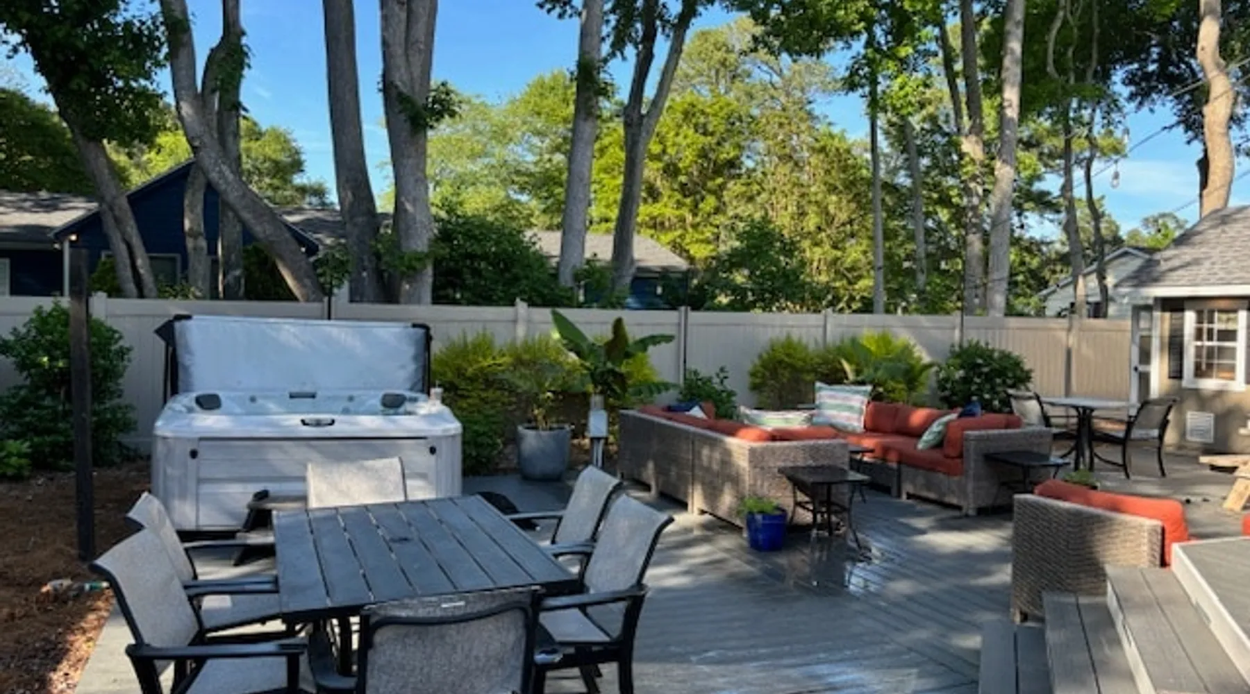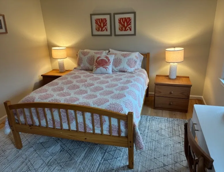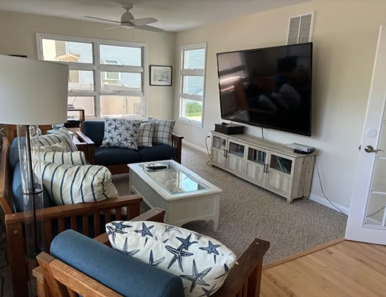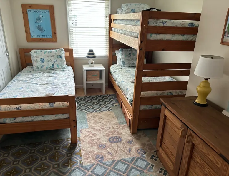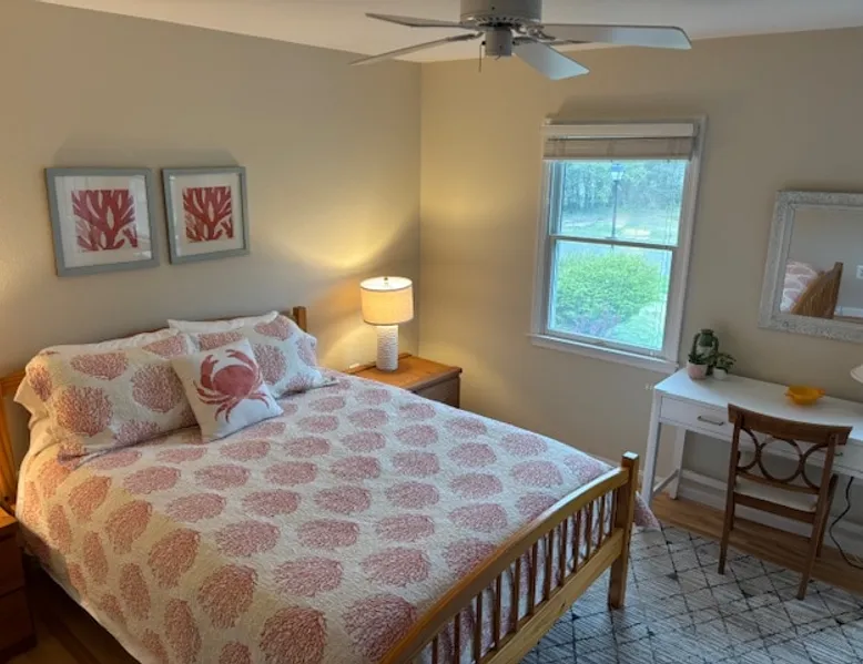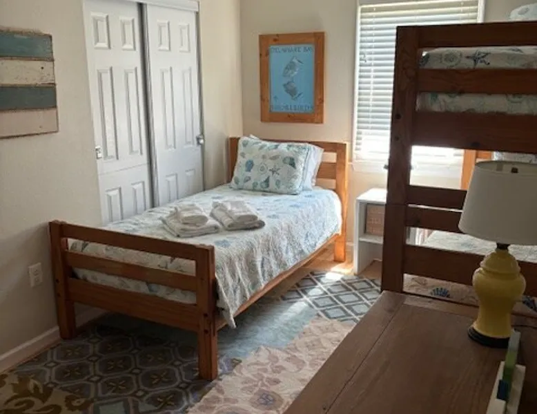 This lovely 2 level cottage has all you need for the most memorable beach getaway. Located in a private community, you can enjoy the pool, community dock with bay access and much more. Hangout poolside, or explore the adorable Bethany Beach town less than 2 miles away. Three 3 bedrooms, 2 full baths (plus an outdoor shower!) and parking for 5 cars, there's room for everyone. High speed WiFi, hot tub, enclosed back yard, 4 TVs and a charming front porch to wind down making relaxation a breeze. The space Beautiful well-equipped 2 level cottage located in a quiet residential neighborhood, 2 miles from the beach (car or bike recommended). Primary bedroom and bath are on main level. Upstairs has 2 bedrooms and full bath. Large outdoor deck in back with fenced in yard and hot tub. Smart TV's provided with Apple TV. Guests should bring their own streaming logins (no cable is provided) Guest access Guests have access to the community pool and dock located a few houses away at the end of Seabrook Road.