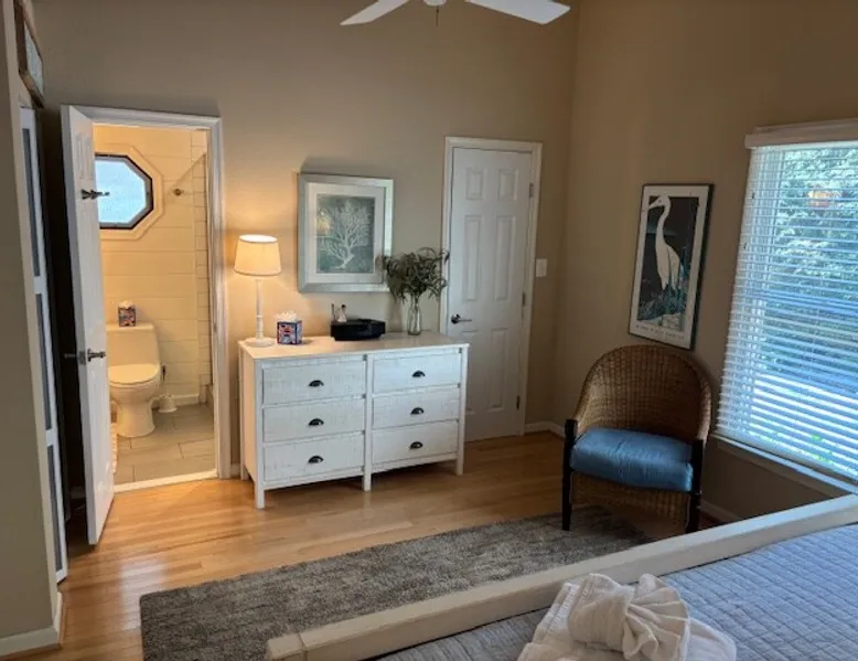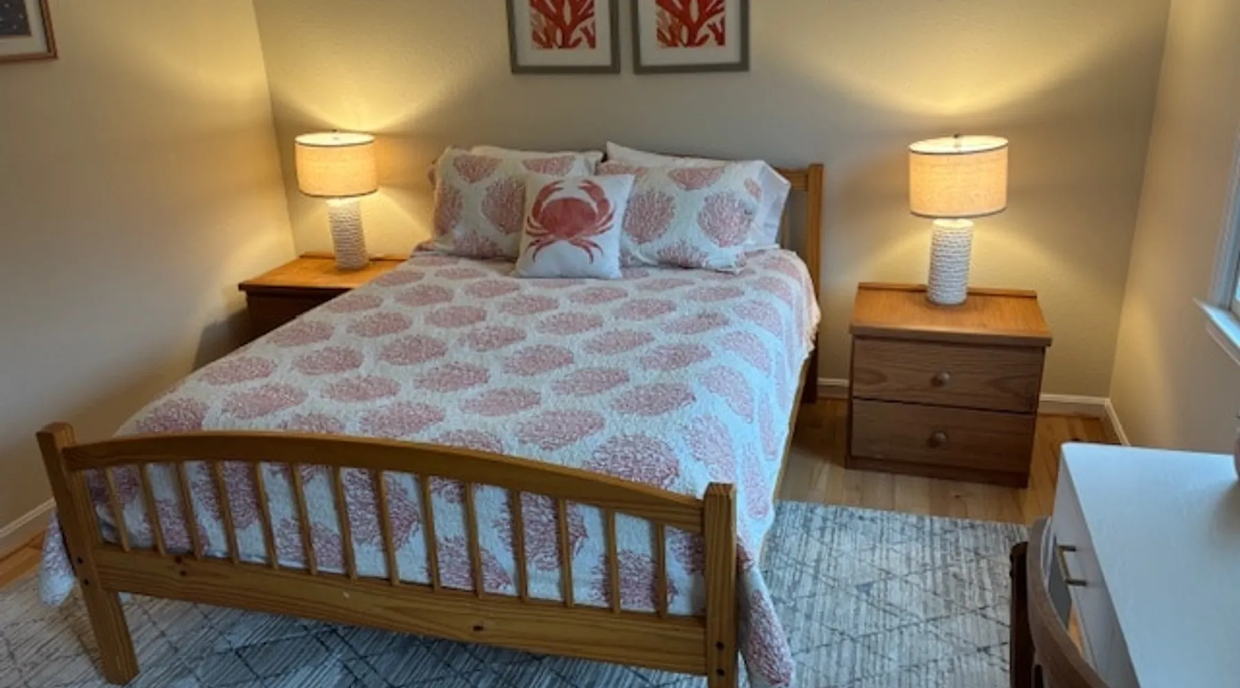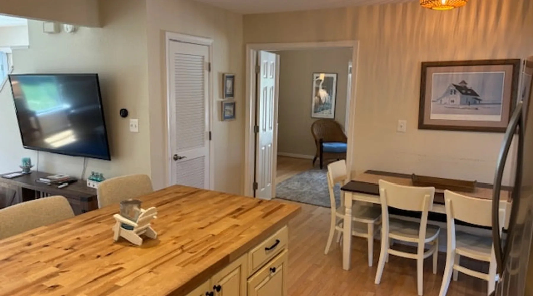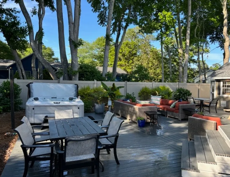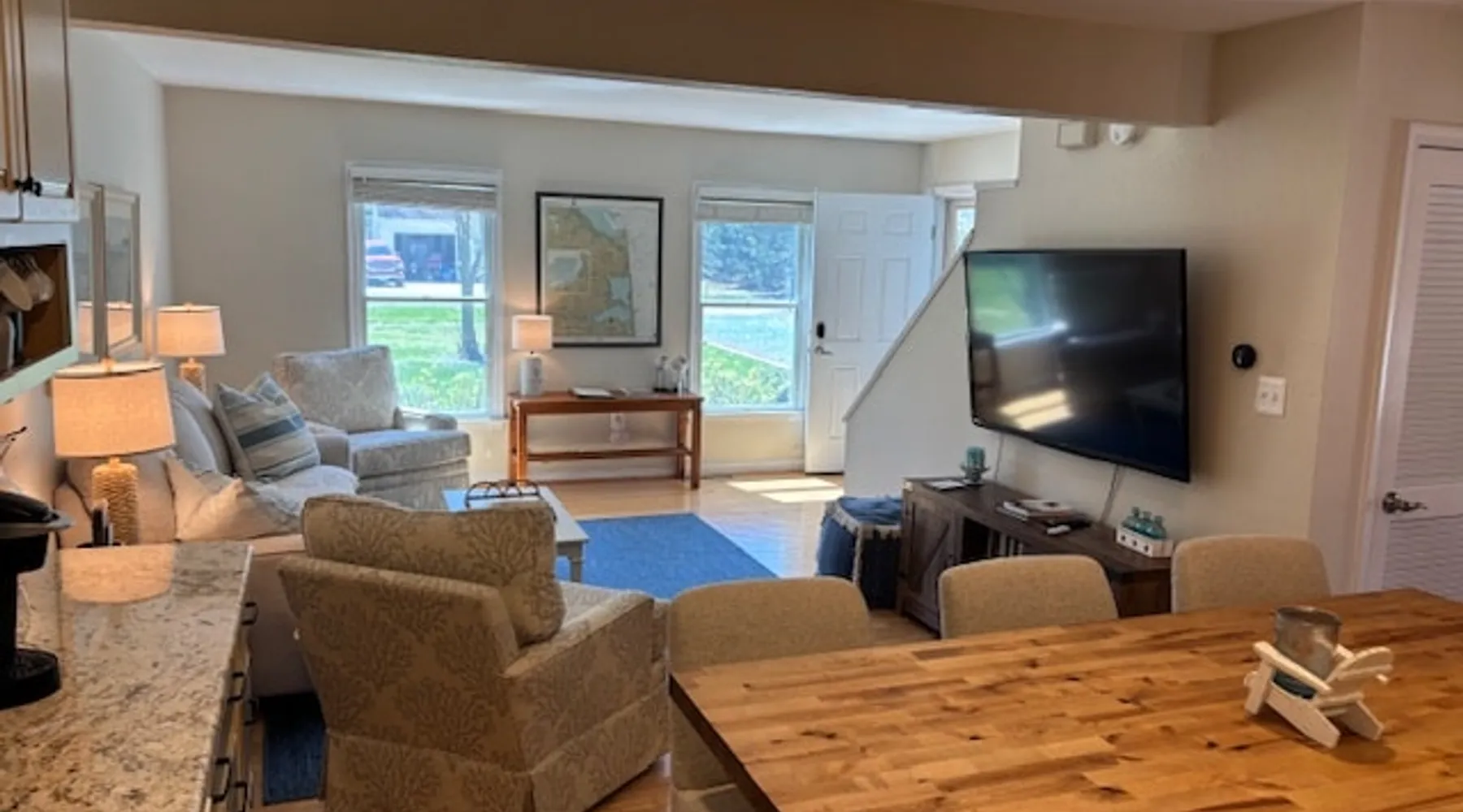 This lovely 2 level cottage has all you need for the most memorable beach getaway. Located in a private community, you can enjoy the pool, community dock with bay access and much more. Hangout poolside, or explore the adorable Bethany Beach town less than 2 miles away. Three 3 bedrooms, 2 full baths (plus an outdoor shower!) and parking for 5 cars, there's room for everyone. High speed WiFi, hot tub, enclosed back yard, 4 TVs and a charming front porch to wind down making relaxation a breeze. The space Beautiful well-equipped 2 level cottage located in a quiet residential neighborhood, 2 miles from the beach (car or bike recommended). Primary bedroom and bath are on main level. Upstairs has 2 bedrooms and full bath. Large outdoor deck in back with fenced in yard and hot tub. Smart TV's provided with Apple TV. Guests should bring their own streaming logins (no cable is provided) Guest access Guests have access to the community pool and dock located a few houses away at the end of Seabrook Road.