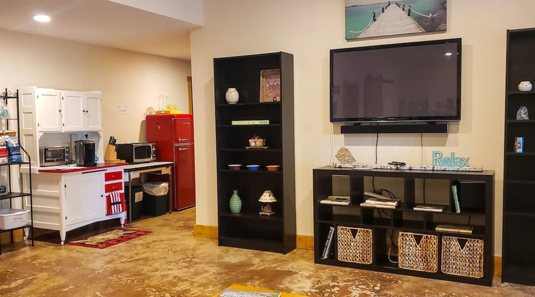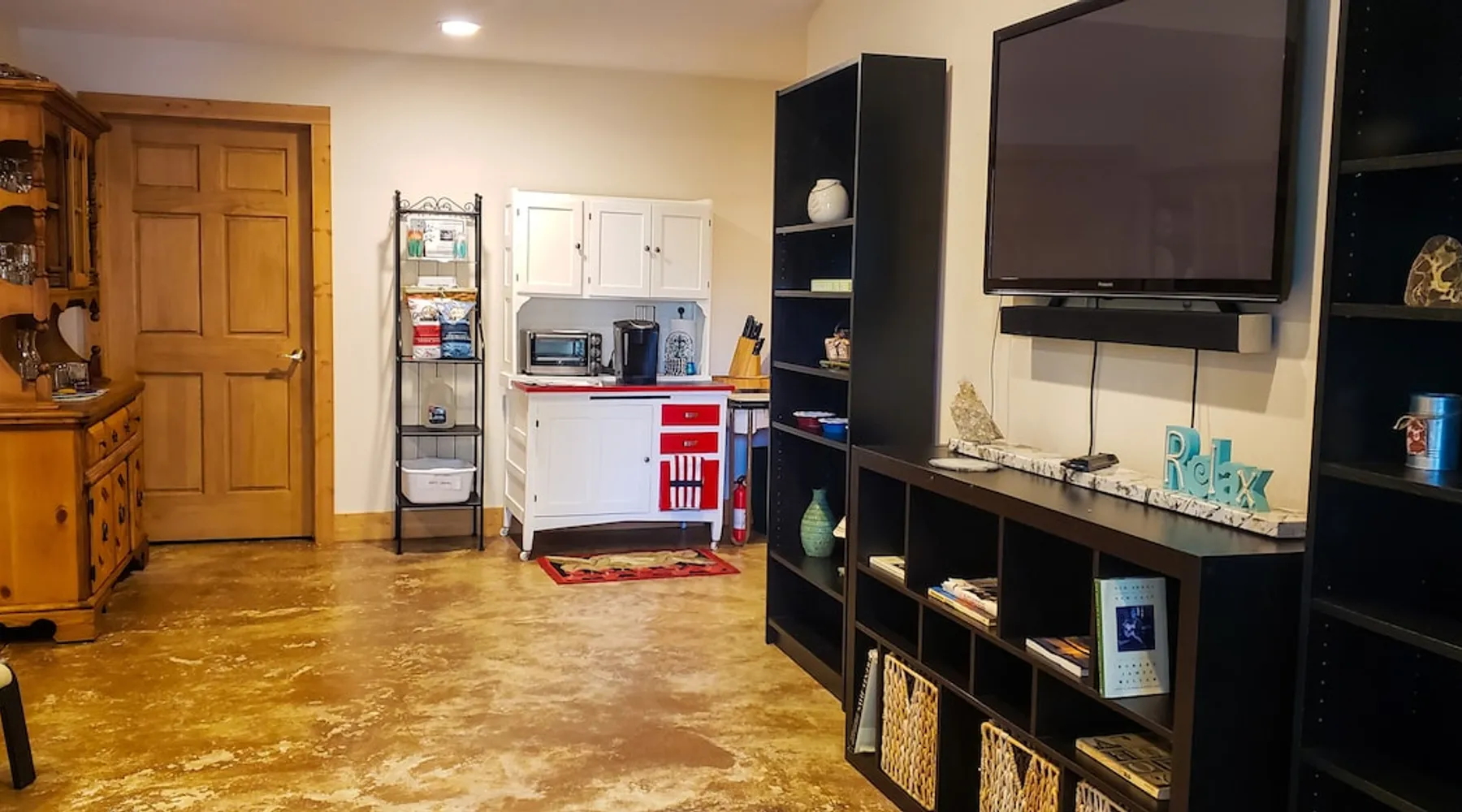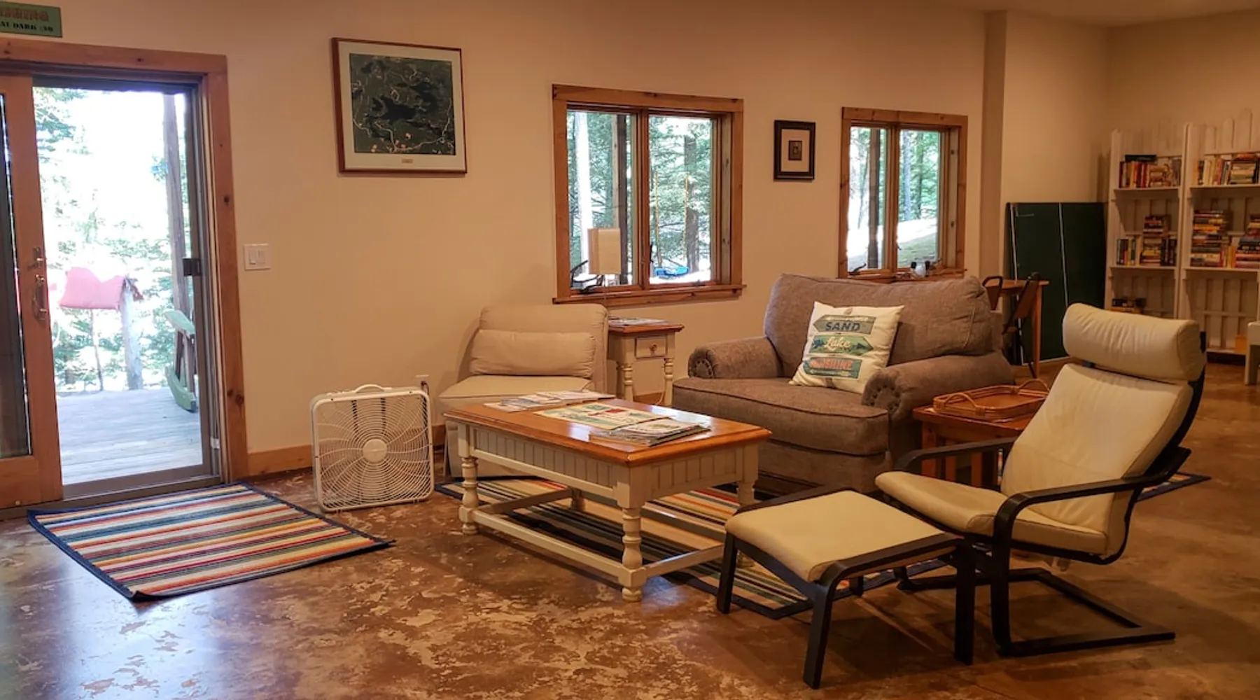 NO CLEANING FEE ! Be my guest ! Your own Private bedroom, bathroom & Living Room on the lower level of my 4200 sf home with Direct Waterfront & Lake Views of Spider Lake from 4 large windows. Approx 950 sq ft walks out to a deck over looking the lake with Patio Furniture, Charcoal Grill and stairs going down to the lakefront. I have been "in the biz" & owned Harolds Resort next door for 34 years & managed others peoples vacation homes on this lake too. Come & hang out at the lake ! The space 50 feet from the water ! This is approx 950 sq ft of my finished Lower Level of my 4200 sq ft Spider Lake Home. This space has a Bedroom with King Bed & a Loft Bed above with 2 twin mattresses. Suggested ages for kids are 6-12, they have to be able to climb up/down a ladder. Right across the hall is a Full Bath and in the hall a stocked Linen Closet. The Living Room - Rec Room has a Comfy Seating, a Large TV with Amazon FireStick, Assorted Books & Puzzles . Light and Bright with 10' ceilings and lots of natural light and windows overlooking Spider Lake. For Snacks and Beverages there is a Small Refrigerator, Toaster Oven, Microwave and Keurig. Glass Sliding Door opens to a Large Deck overlooking the Lake with Patio Furniture and Weber Charcoal Grill ( bring charcoal) . NOTE; There is 1 KING bed and a Loft Bed with 2 twin mattresses for KIDS. and a double futon sofa bed in the Rec Room. This space can sleep 6, if 2 of the 6 are kids that are able to climb up and down a ladder and sleep in the loft bed, if that is the case, message me and I will change the Max Occ to 5 or 6 . I just don't want 6 adults booking the space so I have the Max Occ set to 4. Thanks for understanding ** You will need to walk down a hill and around the house to your private entrance, and then there are stairs down to the dock. The house is built into a hill, in the woods and on the lake.*** This is like a little hike in the woods ** ...k Guest access You'll have private access to the lower level. In general, I am very flexible and if you need anything, just let me know. Other things to note We a very friendly family and love to be of assistance, however we also understand our guest's desire for privacy. You will have your own parking and entrance and one of us is usually nearby if you need anything. Kathy