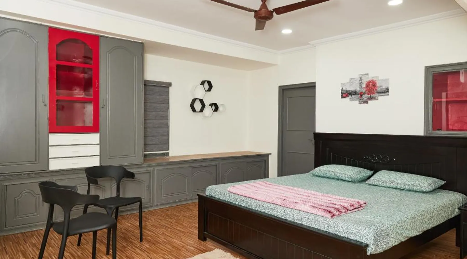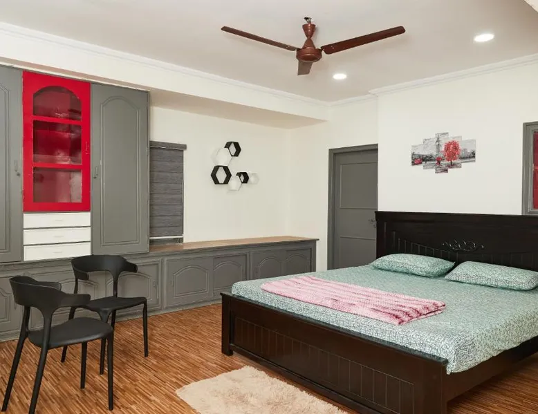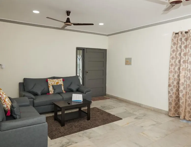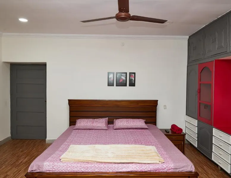 Spacious Holiday Home in Hyderabad: Pent House 2BHK A/C SR Nagar offers a spacious holiday home in Hyderabad. The property features two bedrooms, three bathrooms, and a comfortable living room. Modern Amenities: Guests enjoy free WiFi, air-conditioning, a terrace, and a kitchenette. Additional amenities include a balcony, bathrobes, washing machine, and a dining area. Convenient Location: Located 21 mi from Rajiv Gandhi International Airport, the property is near City Center Mall (3.7 mi), Ravindra Bharathi (4.3 mi), and Hussain Sagar Lake (5 mi). Free on-site private parking is available. Highly Rated by Guests: Pent House 2BHK A/C SR Nagar is highly rated by guests for its spaciousness and pet-friendly environment. Boasting a private entrance, this air-conditioned holiday home features 1 living room, 2 separate bedrooms and 3 bathrooms with a bath and a shower. In the well-fitted kitchen, guests will find a stovetop, a refrigerator, an oven and a microwave. A sofa, a flat-screen TV, a washing machine and a terrace are offered in this spacious holiday home. The unit has 3 beds.