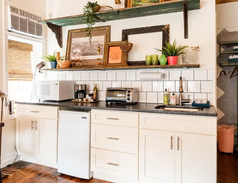 Former comic book and baseball card shop on main street in Pennsburg renovated into a mid-century haven. Queen size bed, full bath and kitchenette with stone countertops. Private key-code entrance in front. White picket fence lined yard in back is perfect for sitting on warm days. Walking distance to restaurants and food store. On-street parking. The unit is on main street so there is traffic noise. We do ask that guests are respectful of permanent tenants in the building. The space This building is newly renovated and updated, maintaining some original aspects of the early 1900s building. As you walk into front entrance you will be greeted with original hardwood floors and reclaimed stained glass transom window. The door to the unit is private off of the main hallway. Inside the unit, classic mid-century pieces are complimented with reclaimed architectural elements and modern conveniences. TV with Amazon Video and Netflix. WiFi Guest access Guests will have access to a private bedroom and bathroom. Kitchenette has - coffee maker with supplies, small refrigerator, microwave, toaster oven (cooking spray and aluminum foil provided), and a two-burner hot plate. A backyard is available with seats and dining table and chairs in the spring, summer and fall. No-contact self check-in process (front door key code) will be shared once you check-in for your stay. Ample safe, lighted on-street parking on side street (5th Street). Other things to note There are two other tenants who may or may not be around. We ask that guests are respectful to the fact that other people live in the building. January 2022 update - we increased sound proofing between this suite and the downstairs tenant for added privacy. We follow the CDC and AirBnb COVID-19 cleaning/disinfecting recommendations. We do consider discounted rates for extended stays and reoccurring bookings. Our minimum age to book our space, to protect our property is 21 years of age.