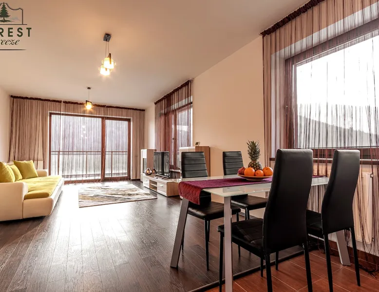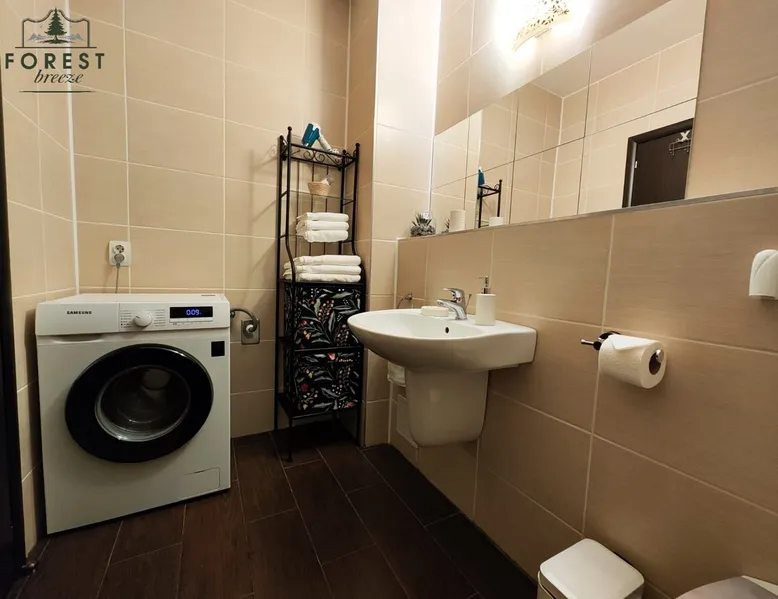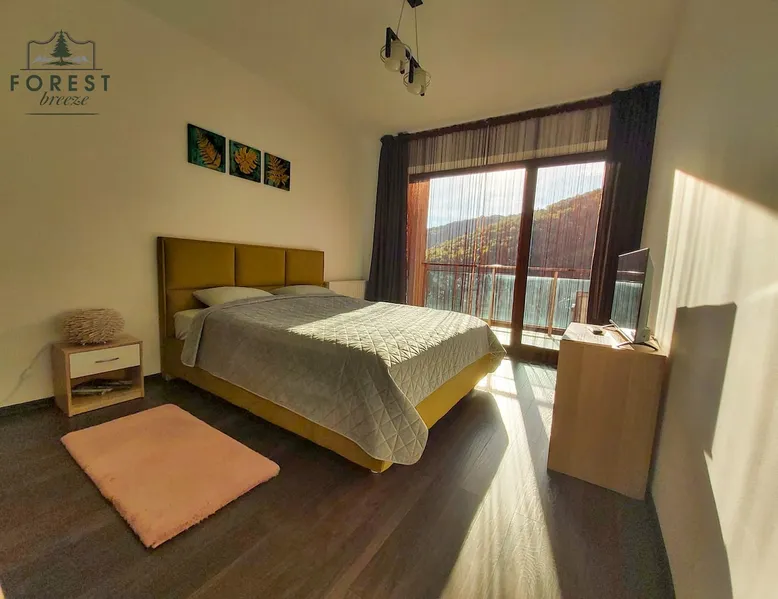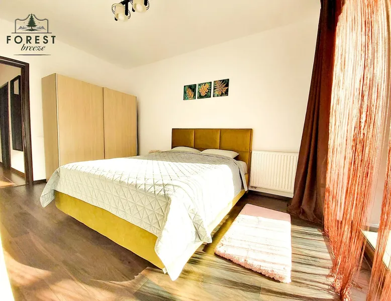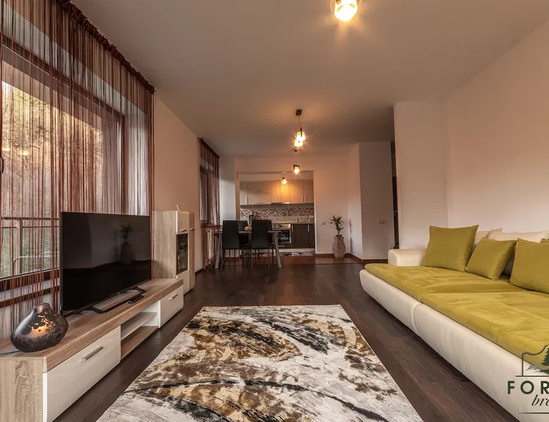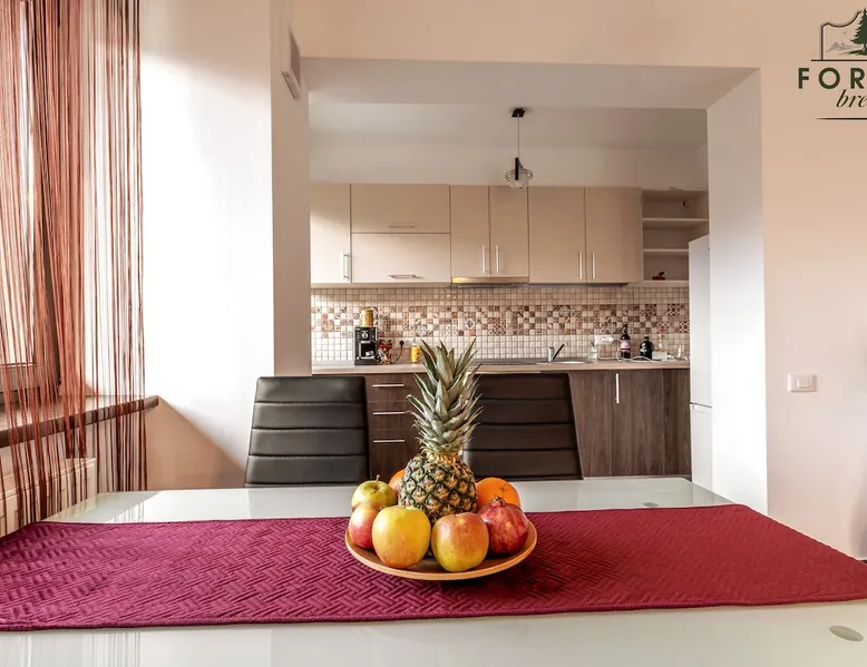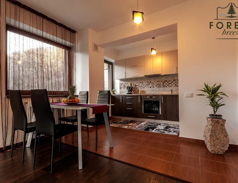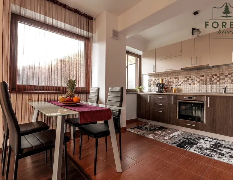 Relax with dear ones at this peaceful place to stay. The view is amasing and the air is super fresh. The flat is located in a residential complex, named Tâmpa Garden, situated at the base of Tâmpa mountain, which is an emblematic landmark for Brașov city. The space Choosing Forest Breeze ApartTerrace, you will benefit from a stylish apartment, modern furnished and fully equipped. The apartment is composed of a matrimonial bedroom and an open space living room equipped with a 4 seats sofa, equipped kitchen, bathroom with bathtub, towels, slippers. The apartment has a sunny terrace of 33 sqm, overlooking the mountain and the city, which adds a big plus to this property.