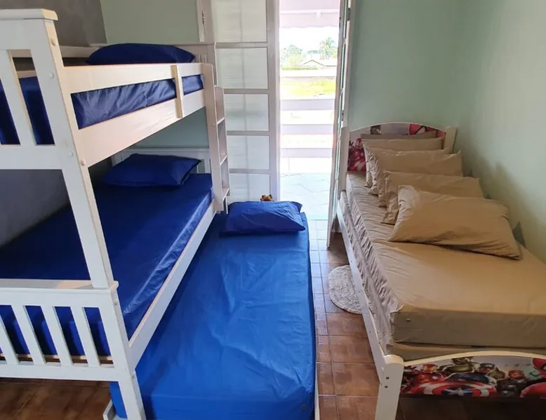Just 700 meters from Indaia Beach.... 500 meters from Semar Supermarket and 300 meters from the new 24-hour Burger King Indaiá.... We have Wi-Fi and a Cable TV Package with TELECINE up to PREMIERE The property has a large yard and lawn. Kitchen equipped with cooktop, microwave with grill, Frost Free refrigerator. The living room has a 43-inch 4K Smart TV. The bedrooms have ceiling fans and the couple's bedroom has a 47-inch Smart Led TV. The house also has a barbecue and Alarm The space The space has a full kitchen equipped with appliances such as a microwave, blender and coffee maker. Room 01 has a bunk bed, a single bed and a single mattress. Bedroom 02 has a double bed, the bedroom also has a LED TV with cable channels + Telecine. The room also has two sofa beds. And the parking is for two cars. The house also has a bathroom and a toilet. Guest access Guests will have access to the entire space. Other things to note The house has two TVs: one in the living room and one in the double bedroom. Both devices are Smart and have paid channels + Telecine Package, which is 5 movie channels from classic films to the latest in the world of cinema. The property also has an alarm system monitored by ADT and is insured by Itaú Seguros, which makes your stay even safer and has 24-hour assistance for any hydraulic or electrical eventuality.
