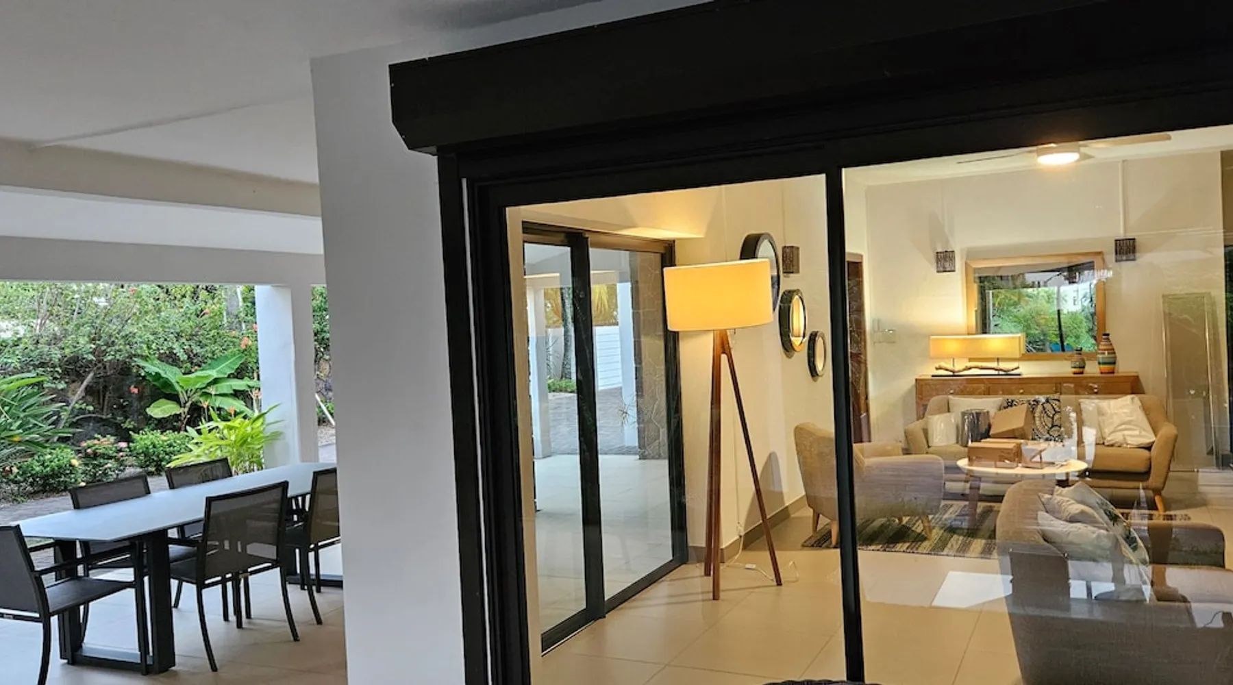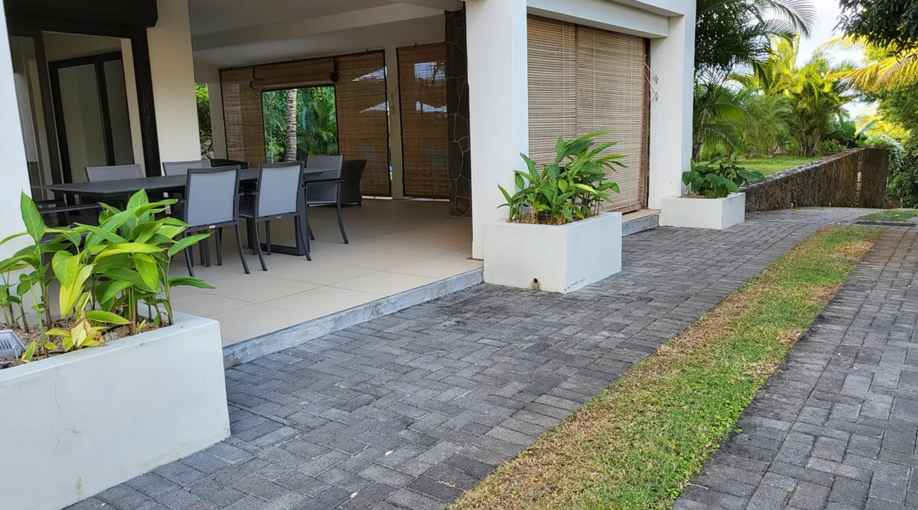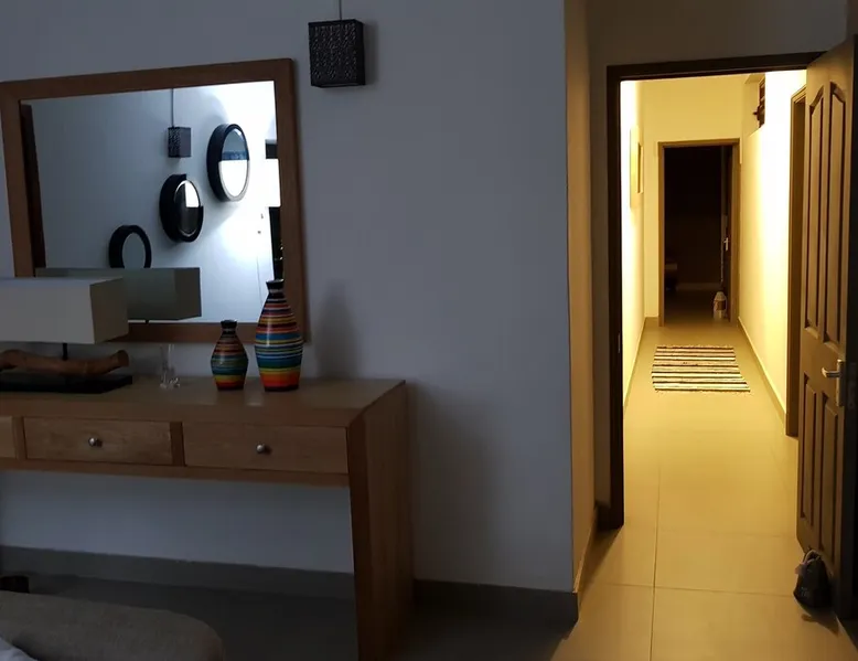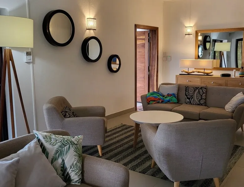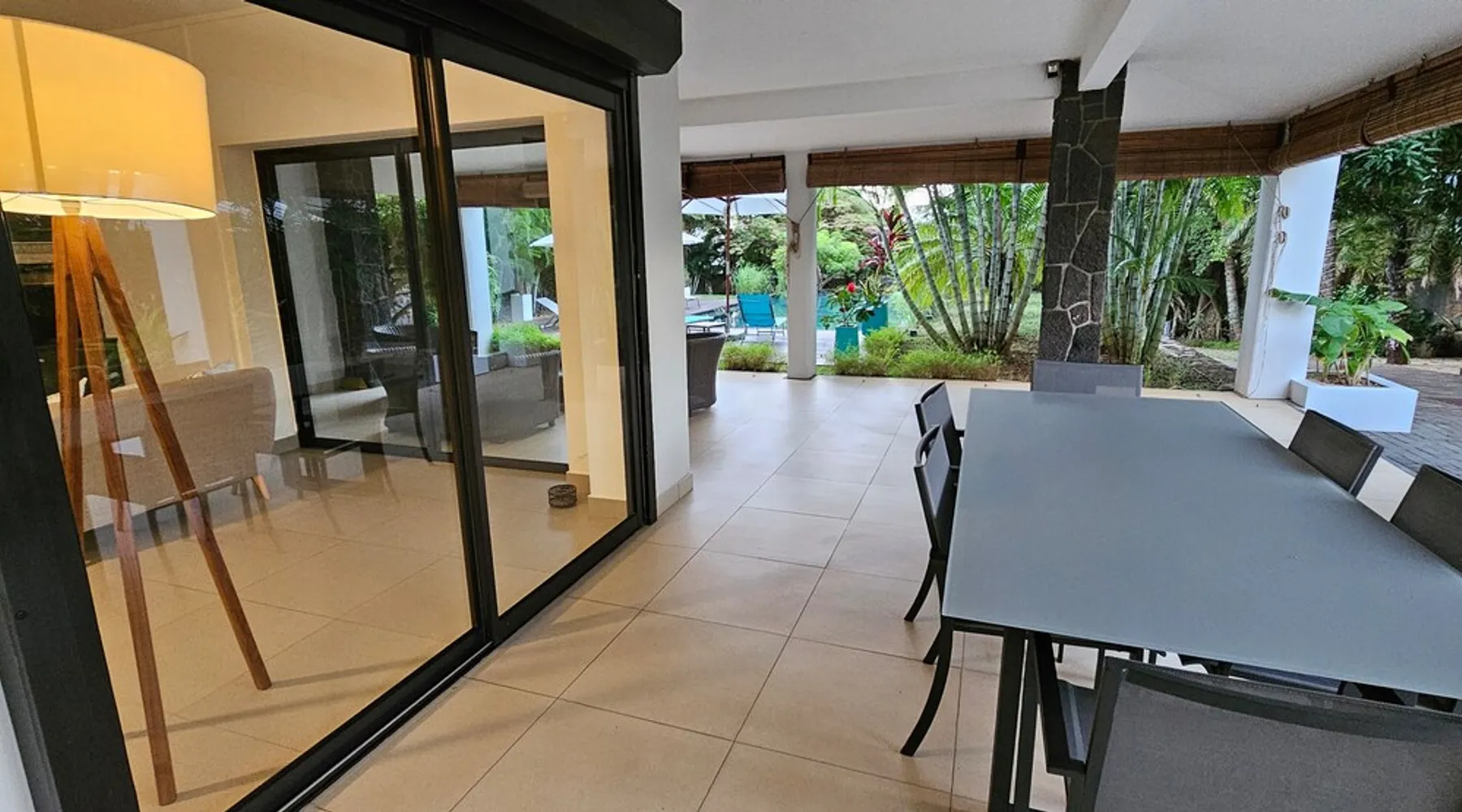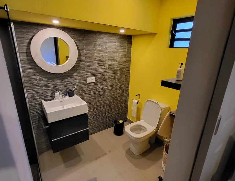 Single storey of 170 m2 with a completely independent 90m2 veranda (covered terrace) on the ground floor of a villa with an infinity pool of 16 m x 6 m with a huge deck. in a magnificent tropical garden of 2000 m². Close to superb beaches, 1.5 km from an 18-hole golf course, the Mont Choisy golf club and 3.5 km from the city center of the seaside resort of Grand Baie, its shops and its many restaurants. This villa is ideally located. The space The house is located on top of a hill in a completely enclosed ocean of greenery and has the advantage of being well ventilated thanks to the trade winds. The villa is equipped with a large generator capable of powering all the air conditioning, lighting and all the household appliances in the accommodation in the event of power cuts which are relatively frequent in Mauritius.