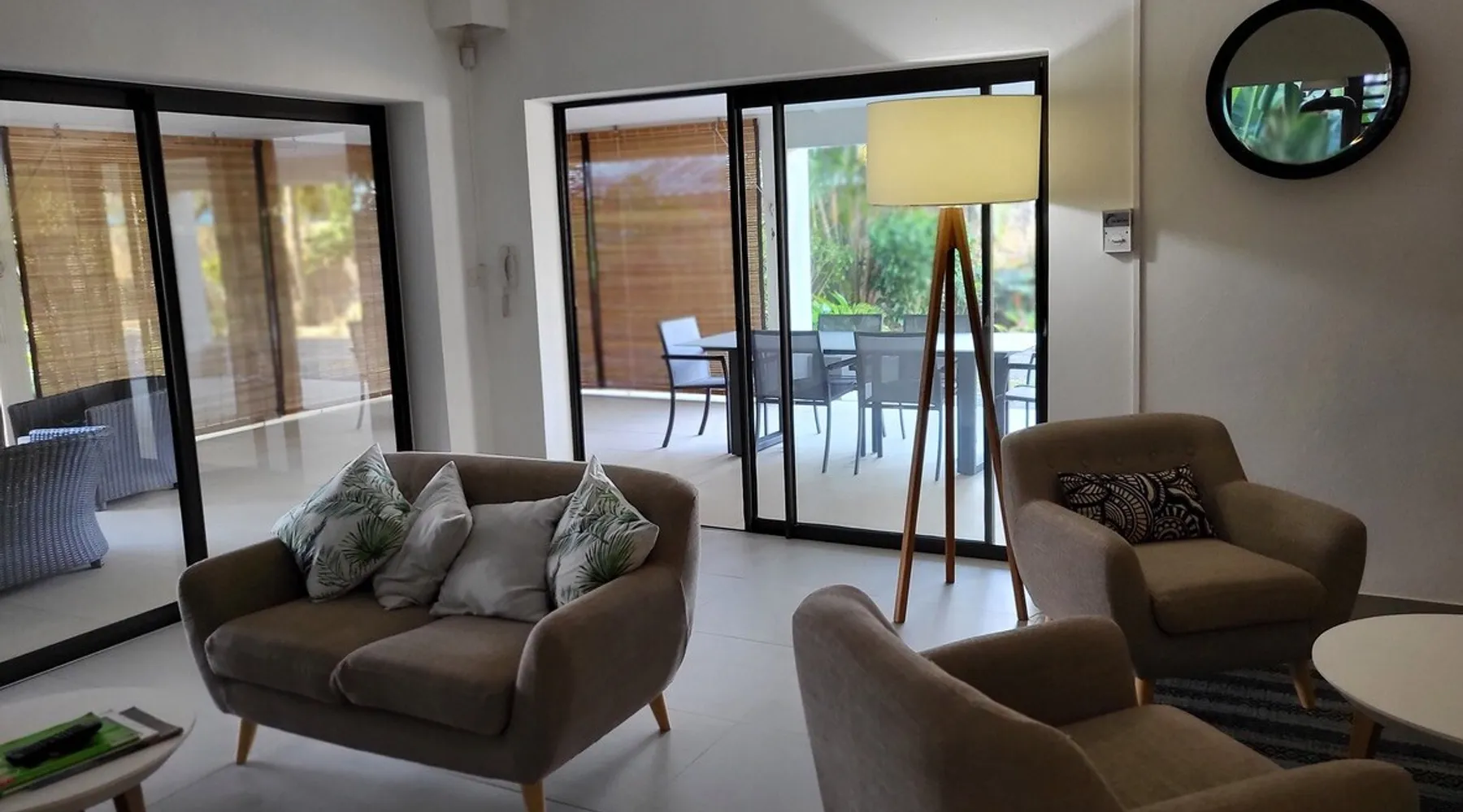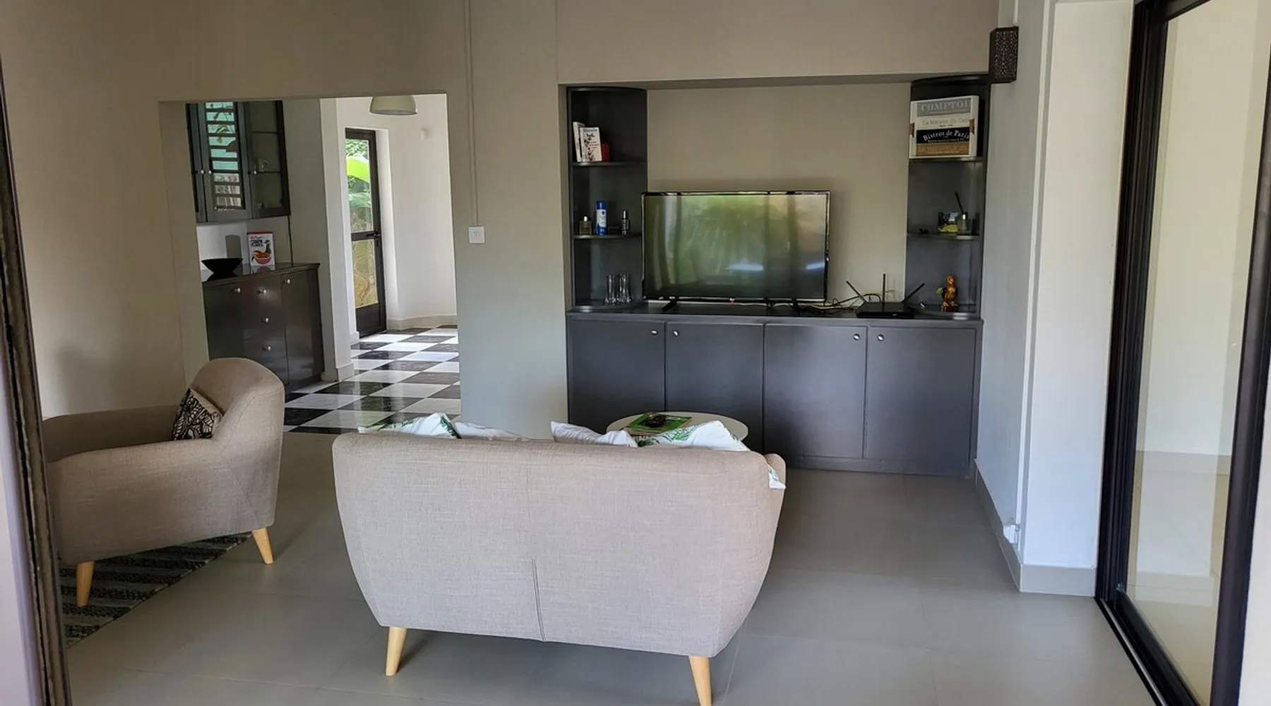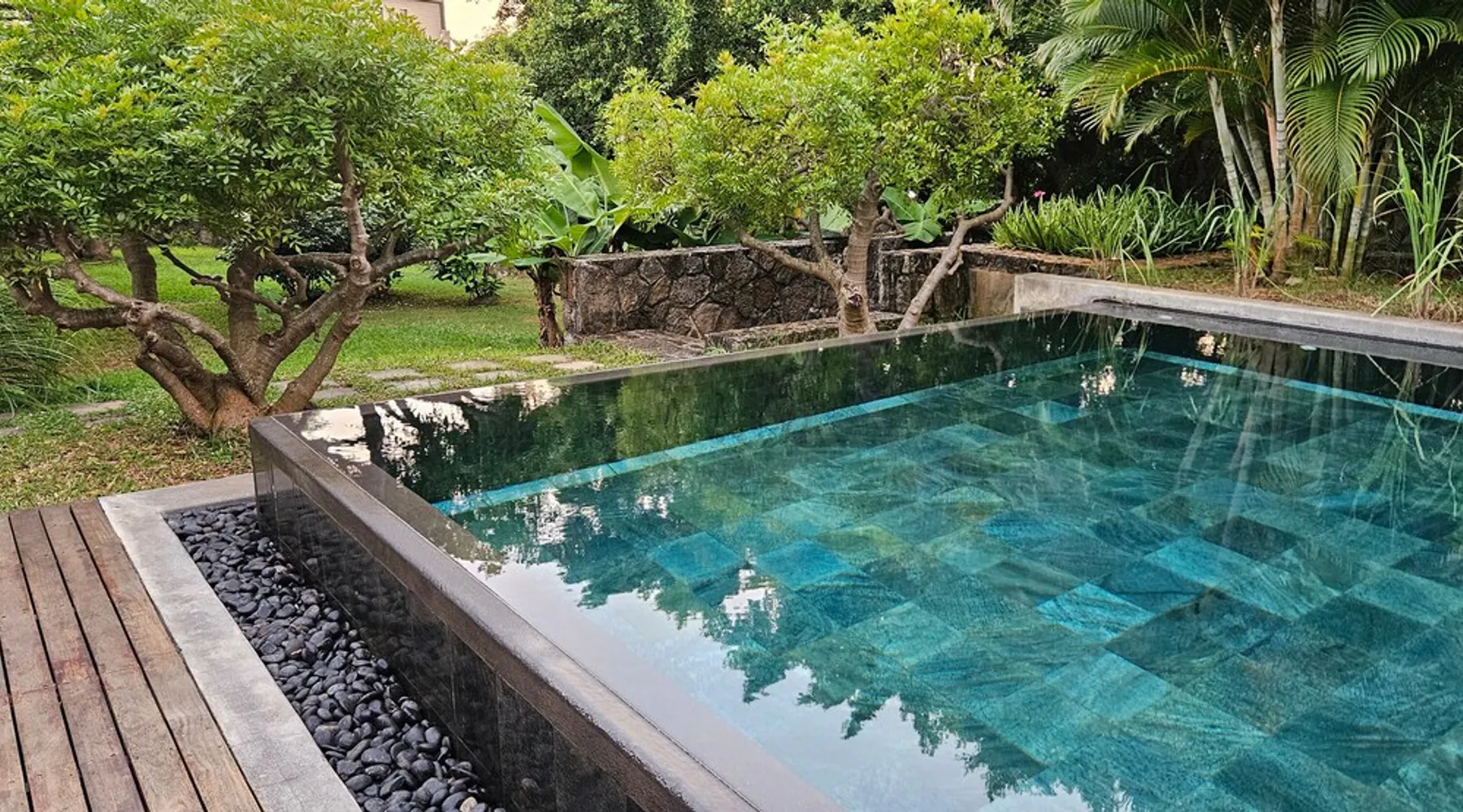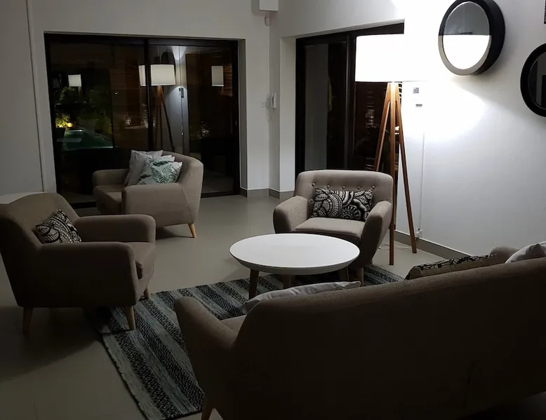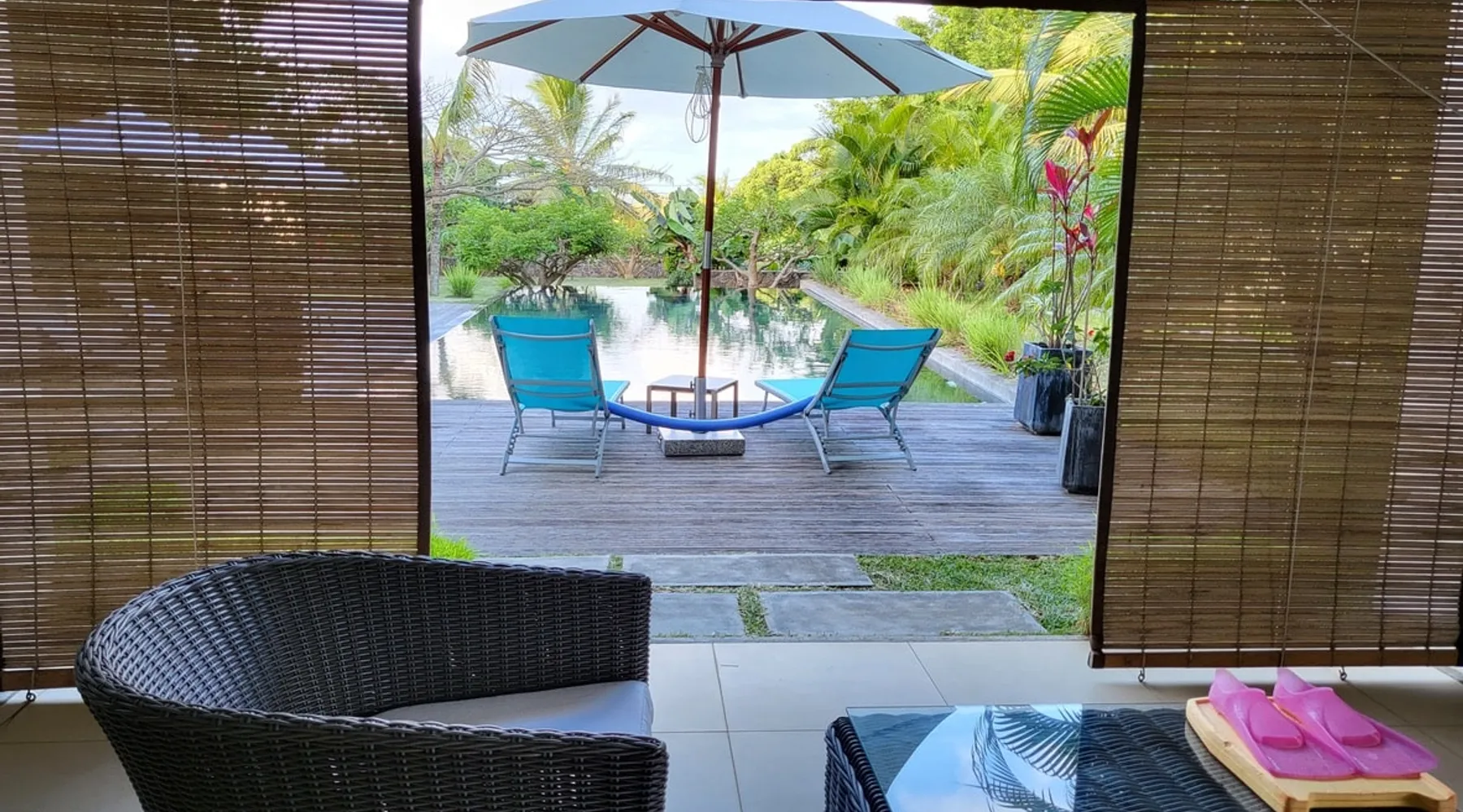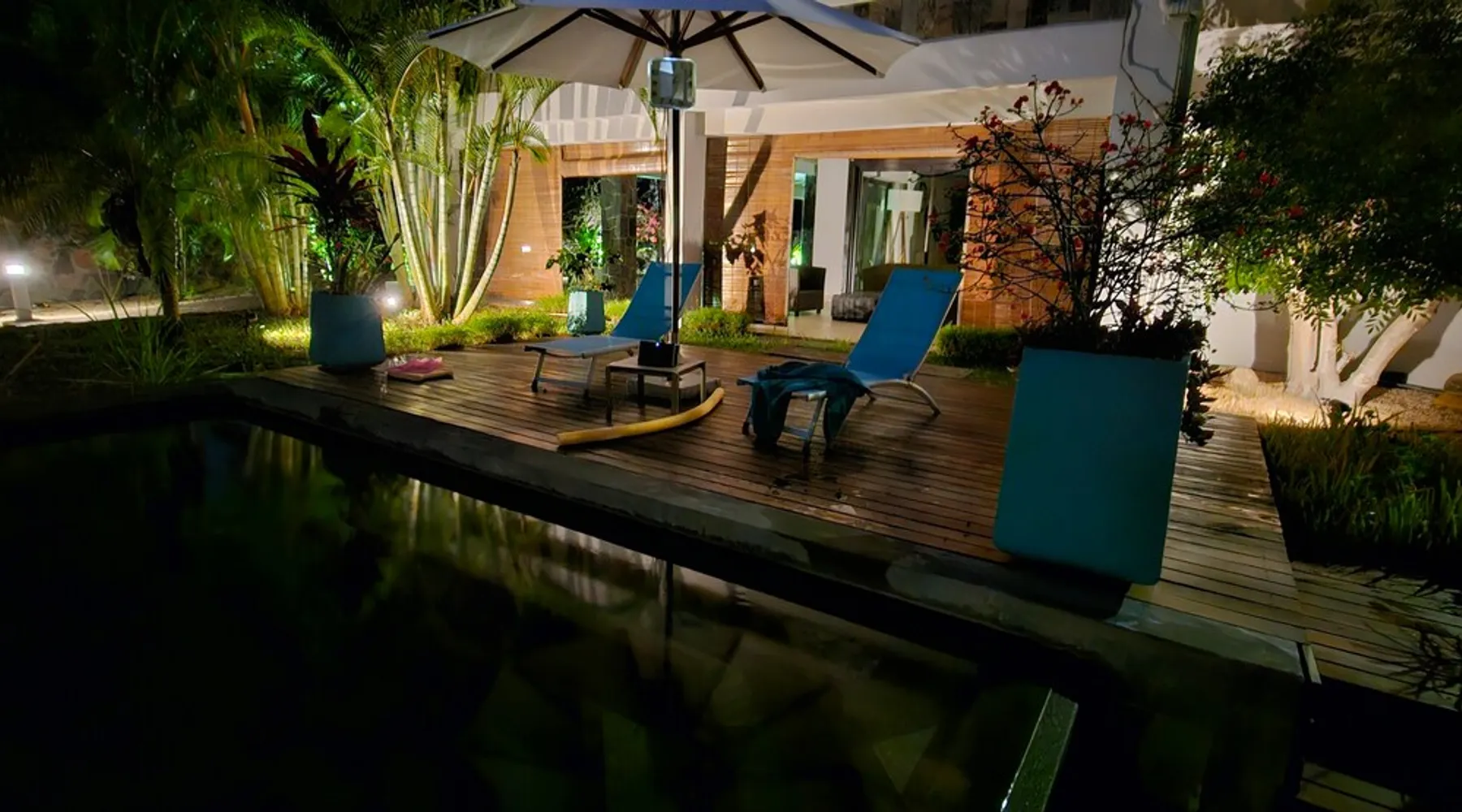 Single storey of 170 m2 with a completely independent 90m2 veranda (covered terrace) on the ground floor of a villa with an infinity pool of 16 m x 6 m with a huge deck. in a magnificent tropical garden of 2000 m². Close to superb beaches, 1.5 km from an 18-hole golf course, the Mont Choisy golf club and 3.5 km from the city center of the seaside resort of Grand Baie, its shops and its many restaurants. This villa is ideally located. The space The house is located on top of a hill in a completely enclosed ocean of greenery and has the advantage of being well ventilated thanks to the trade winds. The villa is equipped with a large generator capable of powering all the air conditioning, lighting and all the household appliances in the accommodation in the event of power cuts which are relatively frequent in Mauritius.