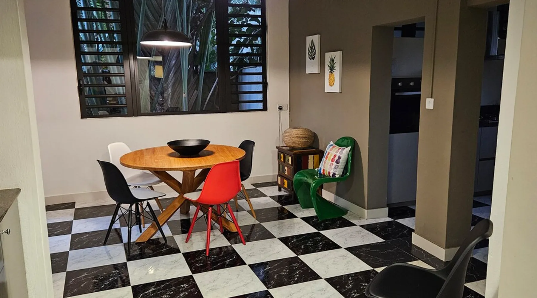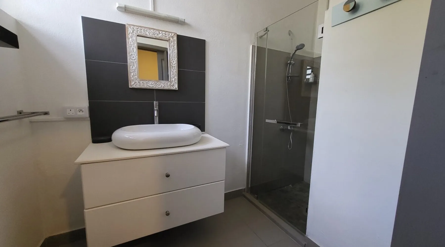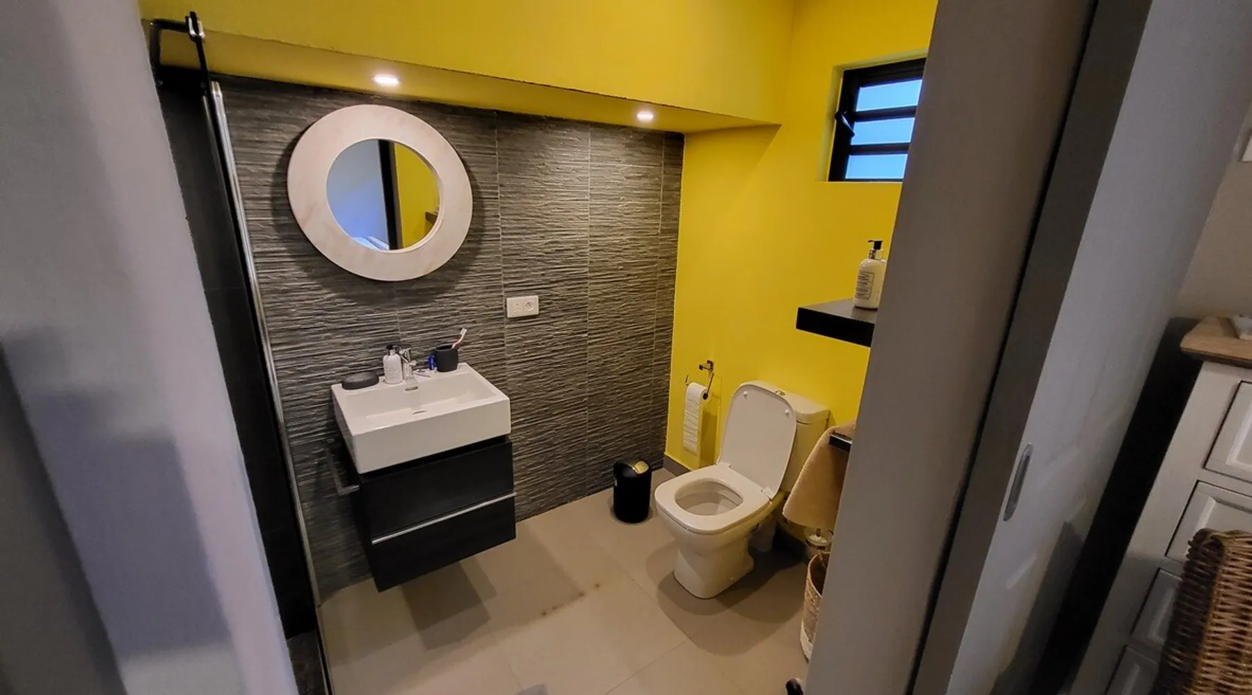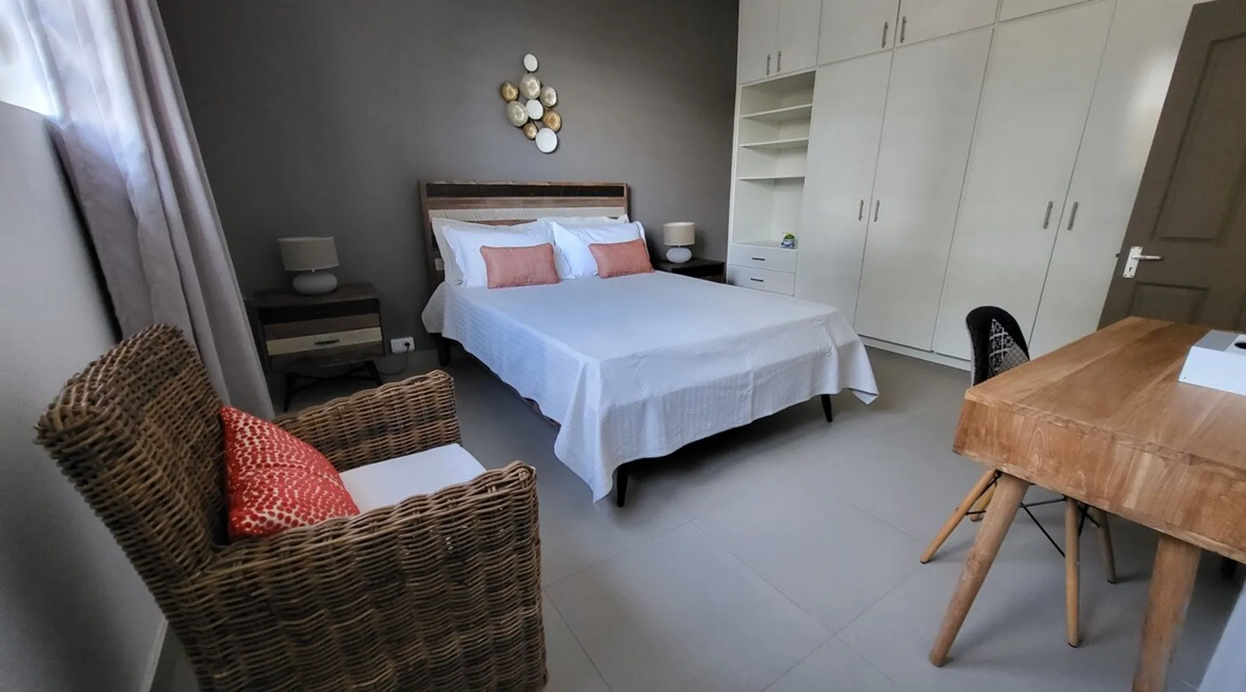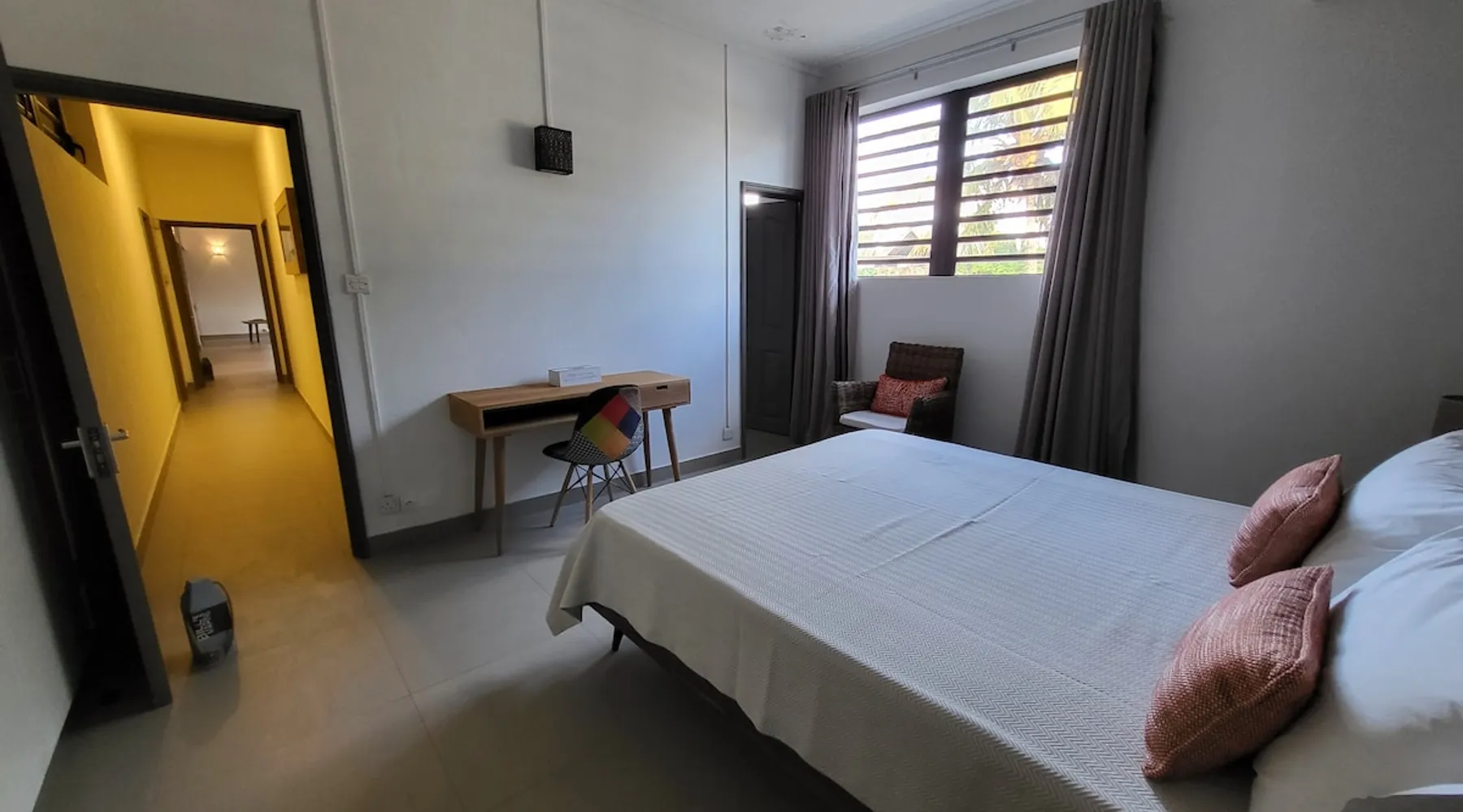Single storey of 170 m2 with a completely independent 90m2 veranda (covered terrace) on the ground floor of a villa with an infinity pool of 16 m x 6 m with a huge deck. in a magnificent tropical garden of 2000 m². Close to superb beaches, 1.5 km from an 18-hole golf course, the Mont Choisy golf club and 3.5 km from the city center of the seaside resort of Grand Baie, its shops and its many restaurants. This villa is ideally located. The space The house is located on top of a hill in a completely enclosed ocean of greenery and has the advantage of being well ventilated thanks to the trade winds. The villa is equipped with a large generator capable of powering all the air conditioning, lighting and all the household appliances in the accommodation in the event of power cuts which are relatively frequent in Mauritius.
