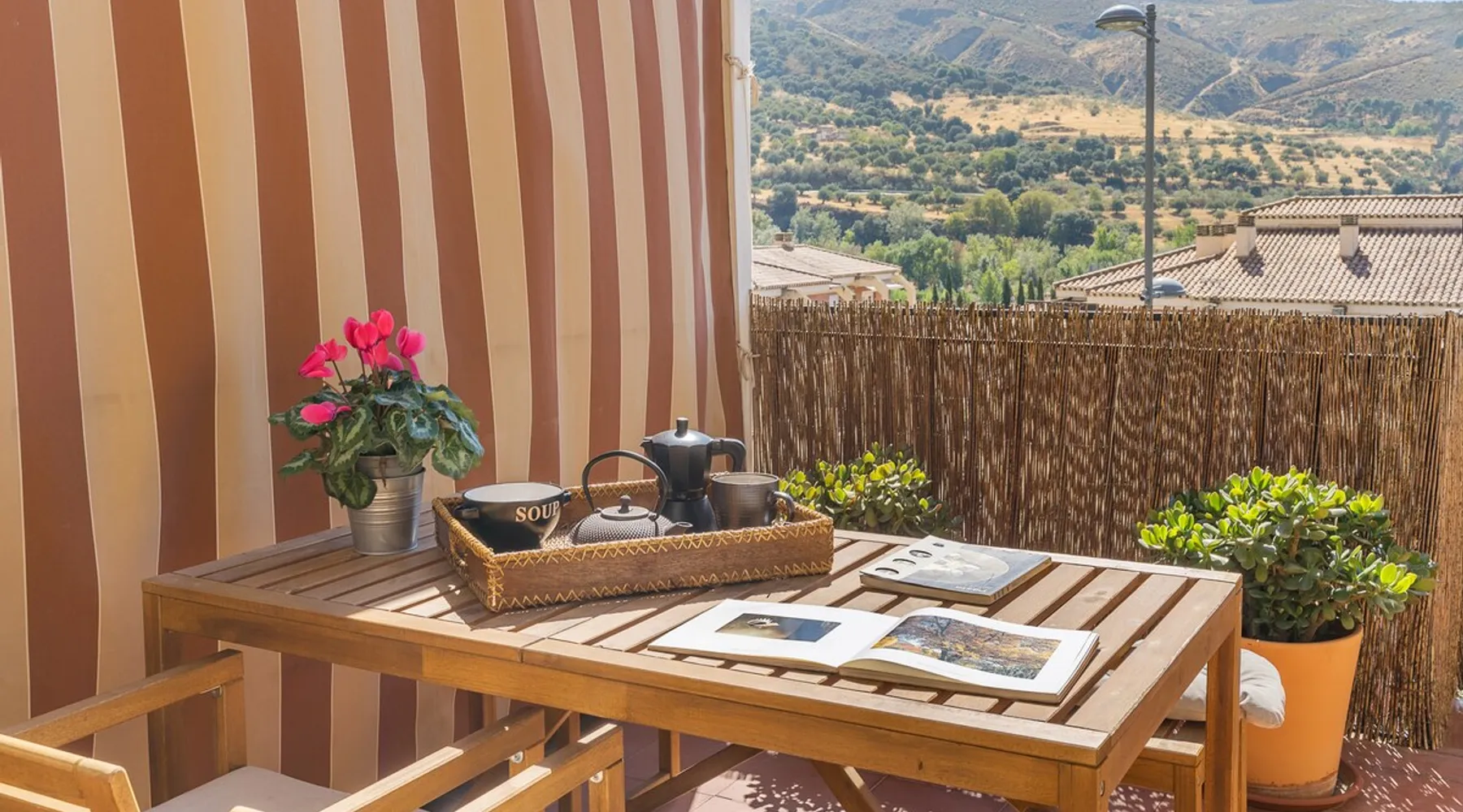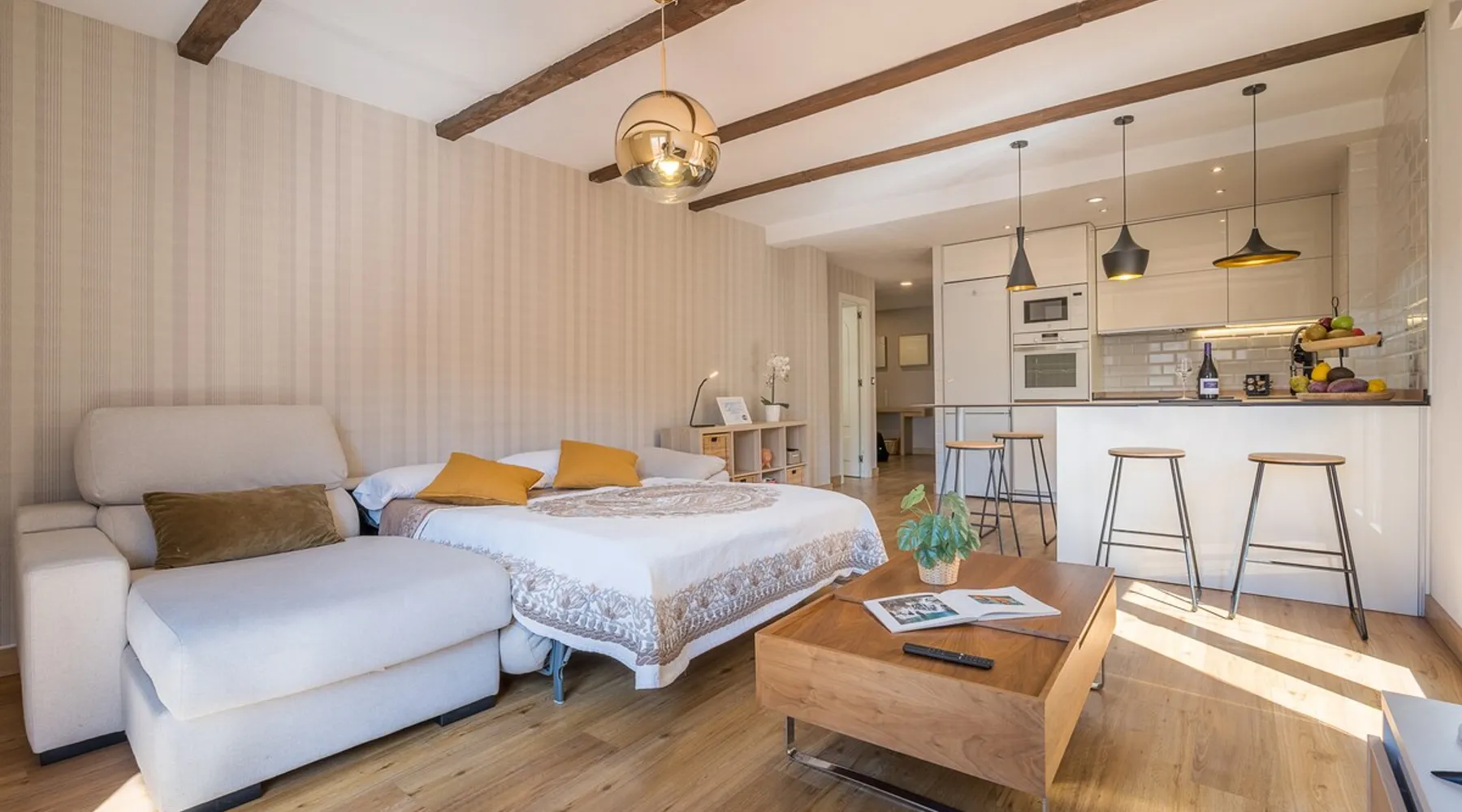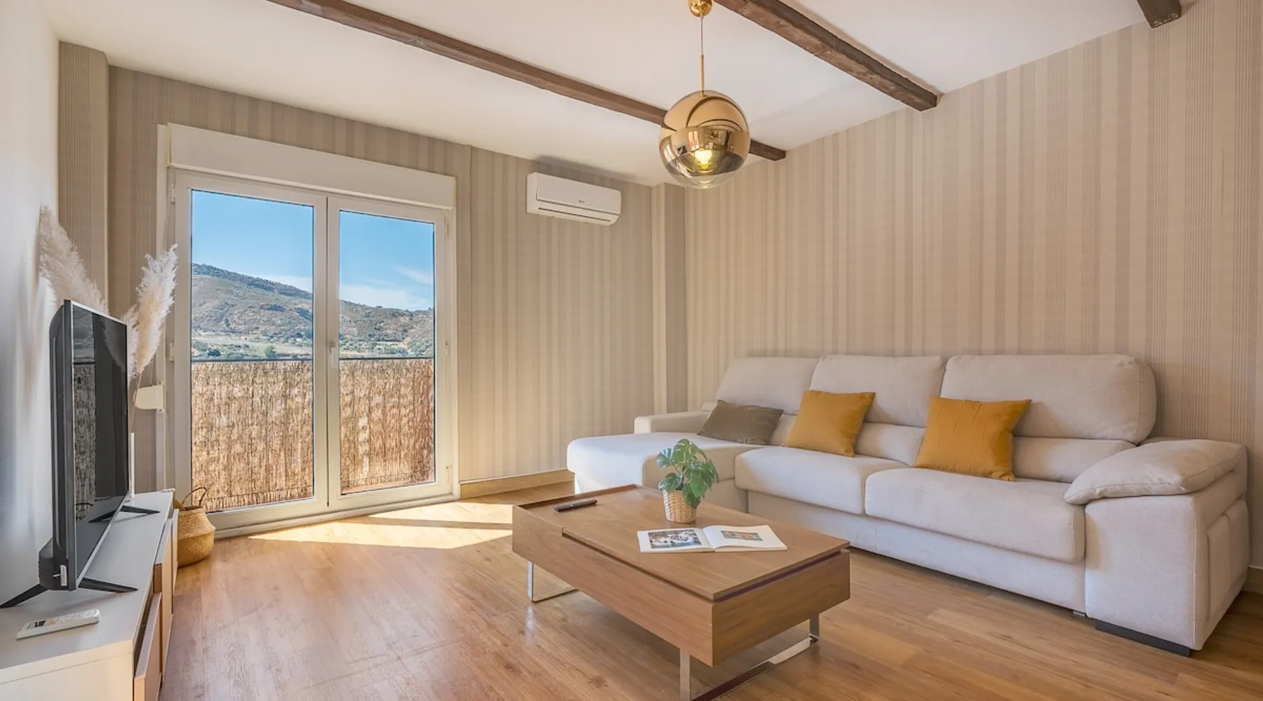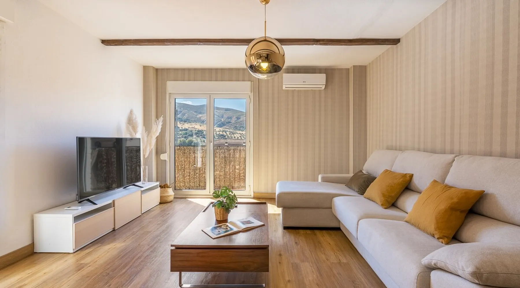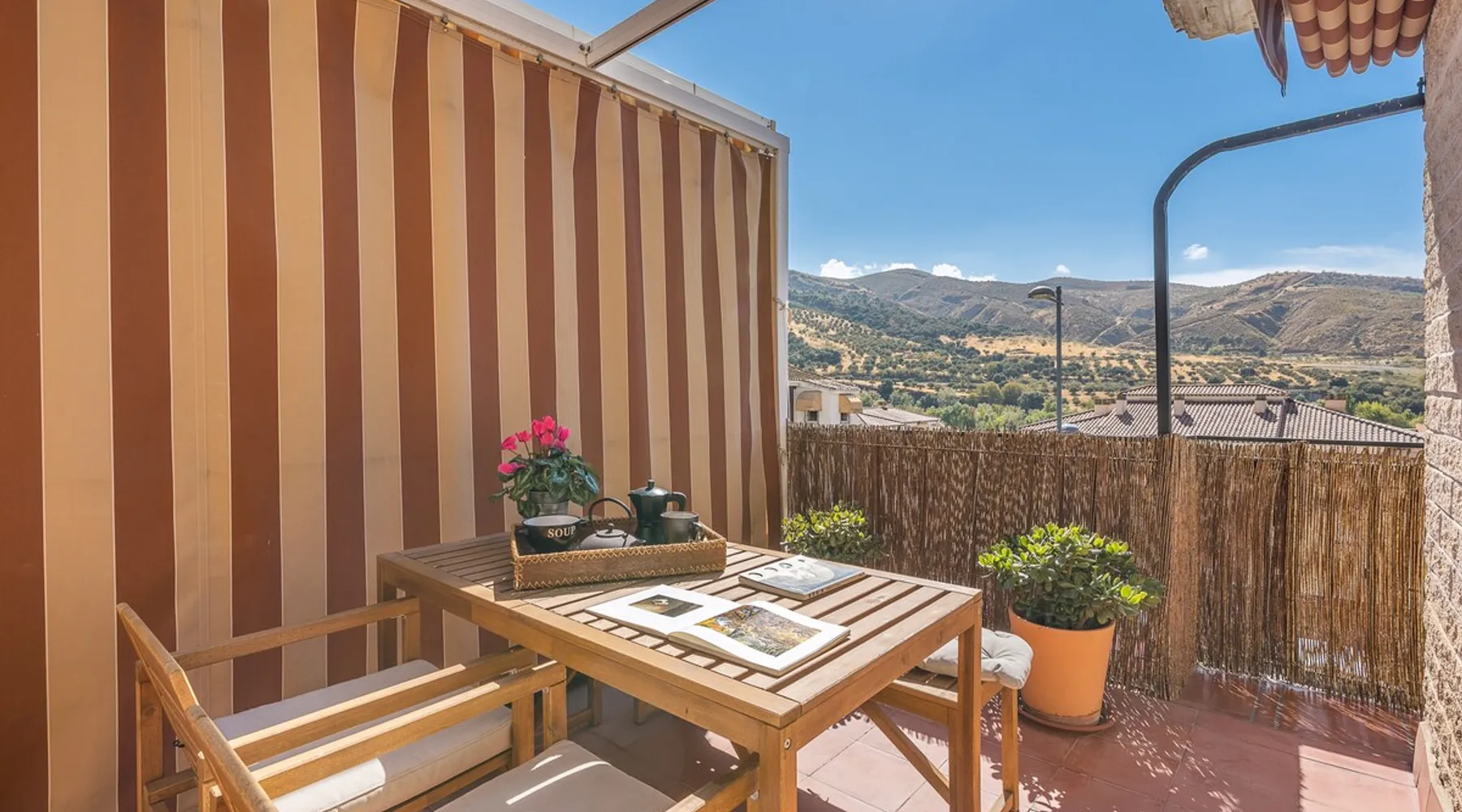 Rincón de Bruno y Duque is a newly renovated apartment where you can find not only the comfort and elegance of a beautiful apartment, but also the tranquility that you can experience from its terrace, with those views of the mountain, the valley of the Genil River, having Sierra Nevada just 25 km away and Granada 10 km away, makes this apartment have a privileged location, without forgetting that we are 11 minutes from the Alhambra, our star monument The space This charming one-bedroom apartment is the perfect retreat for those seeking comfort and style. Upon entering, you are greeted by a bright living room that connects directly to a large terrace, ideal for enjoying mornings with coffee or relaxing at sunset. The terrace is adorned with green plants and outdoor furniture, creating a cozy atmosphere perfect for outdoor gatherings. The room is spacious and with natural light, creating a warm and cozy atmosphere. It is equipped with a built-in closet, offering ample storage space. The open-plan kitchen is equipped with modern appliances and a breakfast bar that invites you to enjoy quick meals. The bathroom is elegant and functional. In the living room, we have a large chest that can be used as a 1.50 bed This apartment is ideal for those looking for an intimate and cozy space, with the advantage of having a private terrace that expands the possibilities of enjoying the outdoors. A perfect place to call home! Registration Details Andalucia - Regional registration number VFT/GR/05844