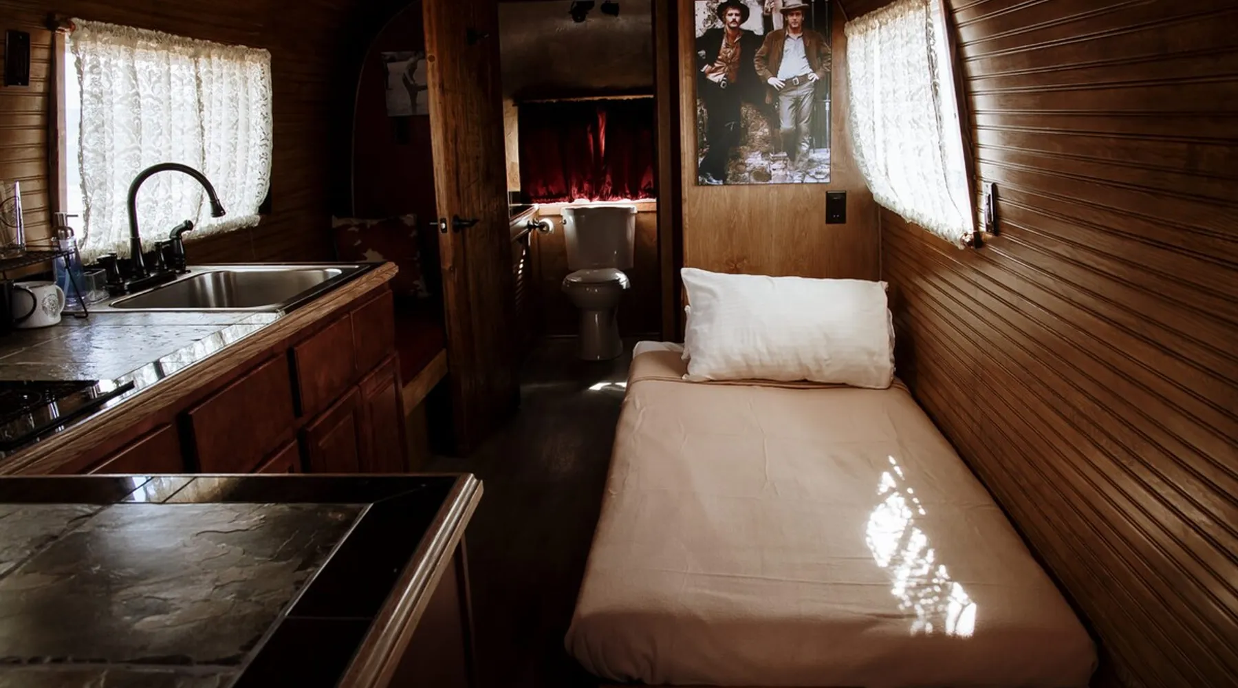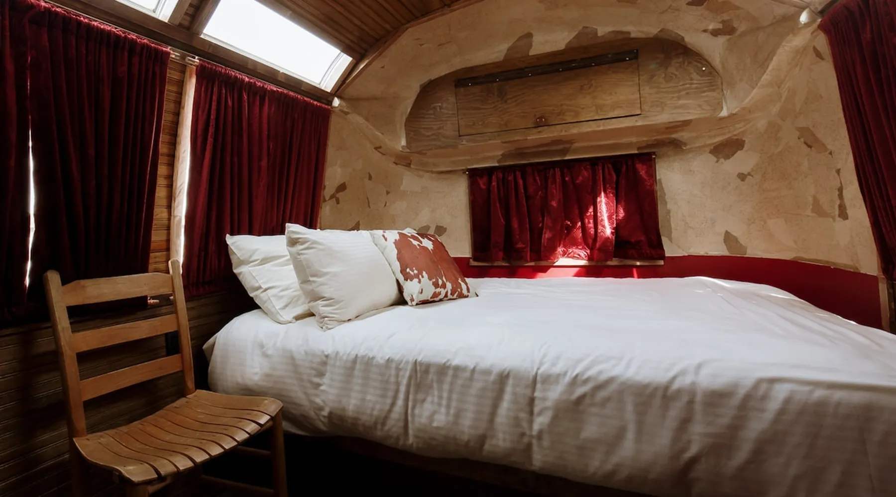 Put em up! Sundance has arrived and he’s not here to play games. This western icon is best known for his time spent with his partner in crime, Butch Cassidy. After running from the Bolivian government and barely surviving a severely out-numbered shoot out, Sundance decided it was time to put his pistols down and find peace in the Sangre De Cristo Mountains. Don’t let his outlaw past misguide you though. His western hospitality is sure to please anyone looking for a warm and cozy adventure in Taos, New Mexico. With a queen bed, convertible dinette, full bathroom, and beautiful mountain views Sundance is perfect for any solo gun slinger, or team of train-hopping bank robbers looking for a quiet place to lay their heads for the evening.Photos by our resident photographer, Amanda Powell. The space All trailers have AC and heating units inside so you remain comfortable no matter what the weather brings. Trailers also offer fine quality linens and sheets, bath amenities courtesy of local company Blue Feather soap, silverware and dishes, a French press and 3 ounces of coffee, and Free Wifi Other things to note All trailers and grounds are pet friendly