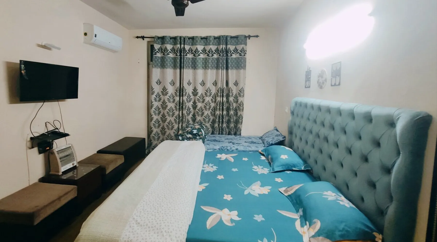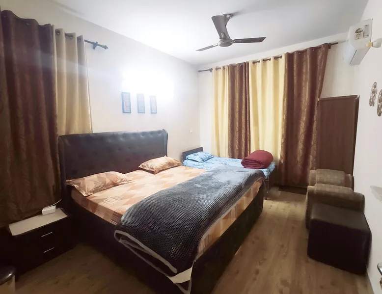 Situated in a tranquil neighborhood, our flat offers a peaceful retreat away from the hustle and bustle. Whether you're here for business or leisure or on your way to explore Hills, our Airbnb promises a relaxing and enjoyable stay. This serves as a perfect stopover for Himanchal getaway. Perfect for Solo Travellers seeking tranquility or travelling with family, our accomodation offers a cozy and comfortable environment. Please note that it is suitable for Married couples and family group. The space Highlights : ✅ High Speed Wifi available ✅ 3 Spacious Rooms with attached Washrooms. One extra bed also available in master bedroom. ✅ Power Back Up Inverter ✅ Parking Available ✅ Independent Entry ✅ First Floor with Balconies ✅ Functional Kitchen, Gas, Stove, Kettle, Utensils, TV, AC, Geyser, Fresh towels, free toiletries ✅ Fridge,RO Water, Washing Machine ✅ OLA/UBER, Zomato Available ✅ Grocery Shops ✅ Famous Eateries like Domino's & Burger King ✅ 20 Min Drive to ISB, Fortis , Max Hospital, CGC, CU University ✅ Getaway to Himachal ✅ Stopover for Manali, Dharamshala Guest access Guests will have excess to entire private apartment. The apartment is at the First floor. It has a functional kitchen with gas,stove, fridge, basic utensils, RO water, iron table and power back up. It is well ventilated with front and back balconies and lounge areas. Guests are free to cook in the kitchen. Just need to buy the groceries. The entire private Apartment can be booked by as small as group of 1 to maximum 7 guests. The apartment will be private and independent. Exclusive parking space is available for one car. However roadside parking is also available free. Other things to note Uber, OLA, Swiggy, Instamart, Big Basket, Zomato works great here. The society has shopping complex which has restaurants, Medical Stores, Domino's, Burger King, Superstores.