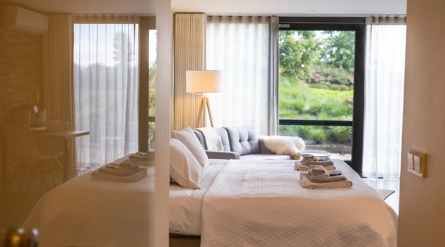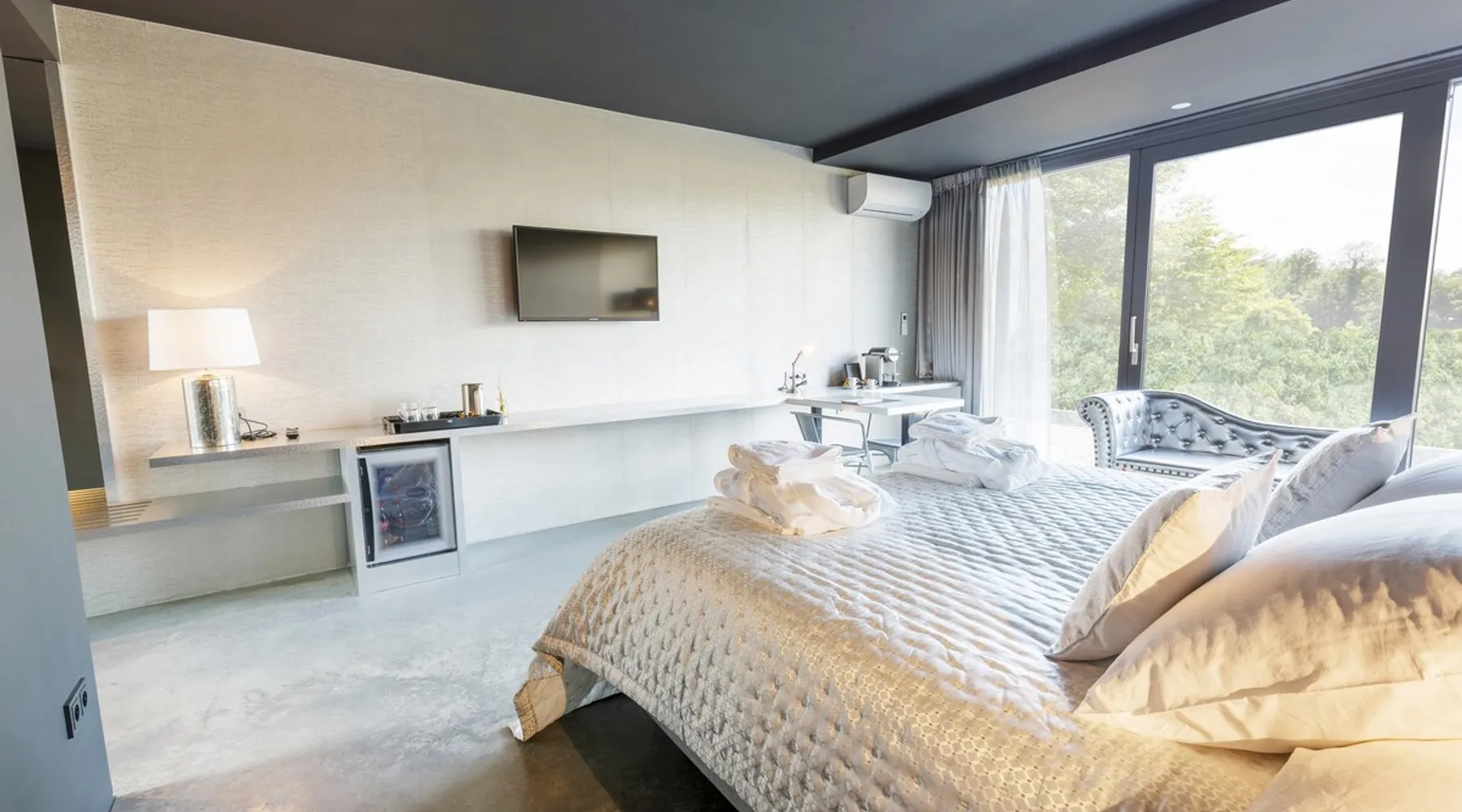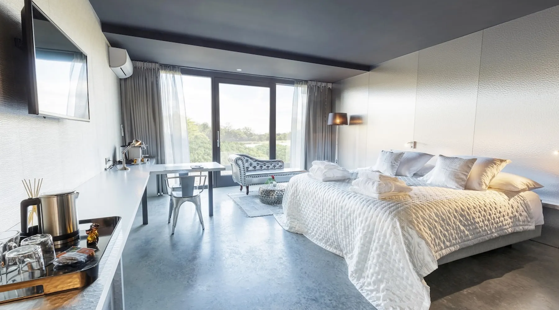 This luxury holiday home is one of the top accommodations in the Netherlands. Staying in this modern holiday home is like staying in a luxury hotel, with five bedrooms, each with its own bathroom, and breathtaking nature right on your doorstep. There is plenty of space for children to play, and in the evening you can relax in the lounge with TV and bar. The space La Marquise luxury holiday home in Budel offers stylish and spacious holiday accommodation with five bedrooms and five bathrooms. Each bedroom is furnished as standard for two people, but an extra bed can be added to each room on request. The house has a comfortable living room, an attractive dining area and several cosy family rooms, providing plenty of space for socialising and privacy. Guests can relax in the sauna, enjoy the sun on the spacious terrace or unwind in the beautiful garden. The house has a bar, a coffee room and various indoor and outdoor seating areas – ideal for relaxing or enjoying a drink together. Free WiFi is available throughout the house. There is free private parking on site, including a charging station for electric cars. The house is equipped with air conditioning, a fully equipped kitchen and a washing machine. Everything is provided for a comfortable and carefree stay in an attractive setting. Guest access Guests have the entire house to themselves and do not have to share any spaces with others. All facilities in the house are for their exclusive use, with the exception of the meeting room, which is not accessible during their stay. Other things to note The minimum age for bookings is 25 years. Parties and noisy gatherings are not permitted. Enjoying a drink together is of course part of the experience, but we ask guests to be considerate of the neighbours and respect the peace and quiet of the surroundings. La Marquise is intended for groups who want to enjoy comfort, atmosphere and quality in a relaxed setting.