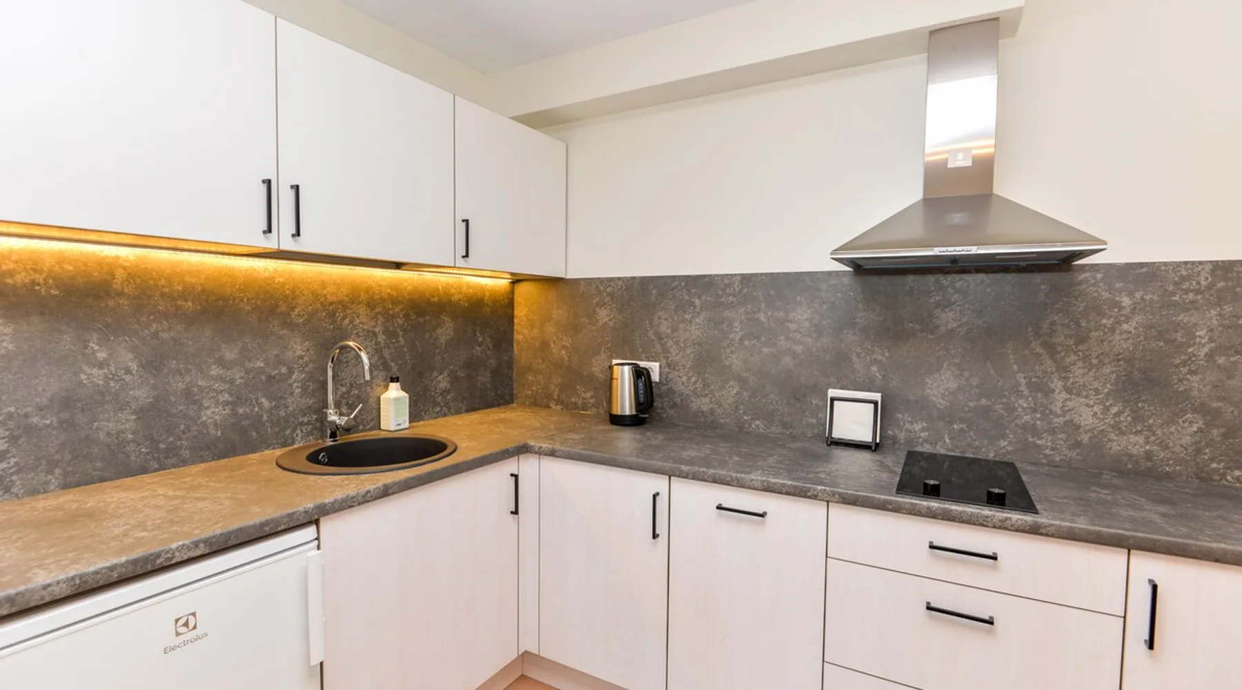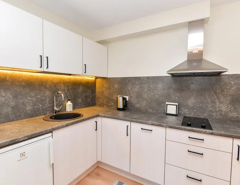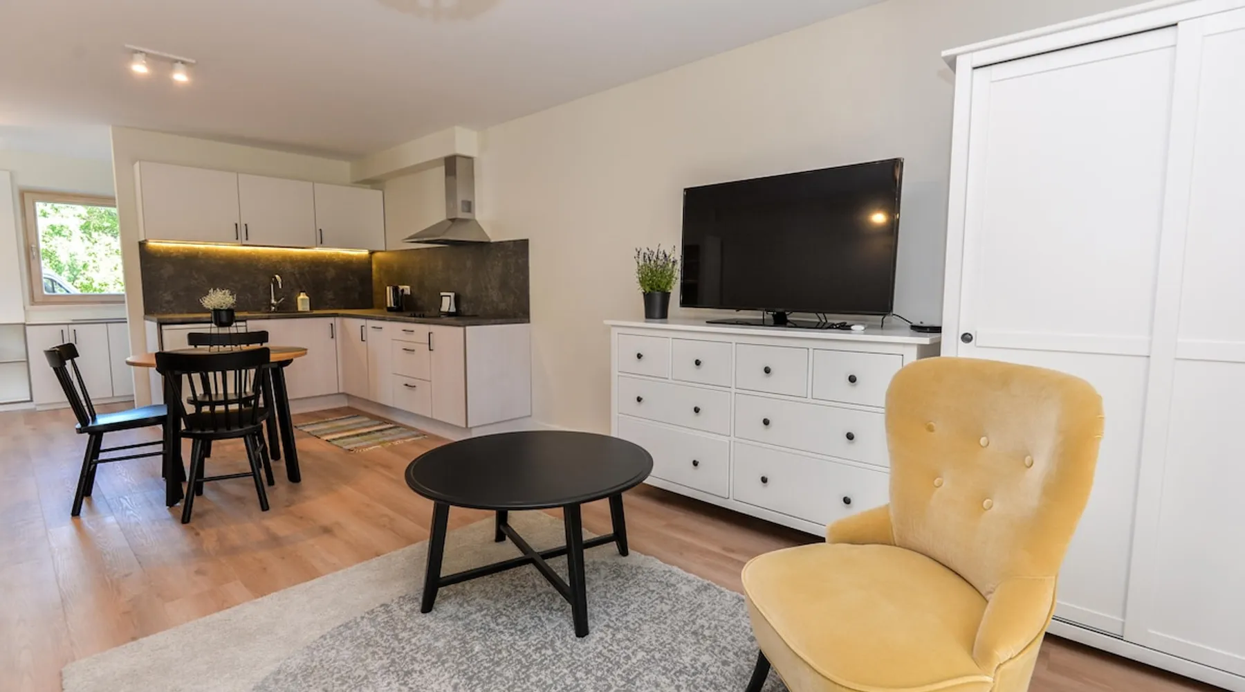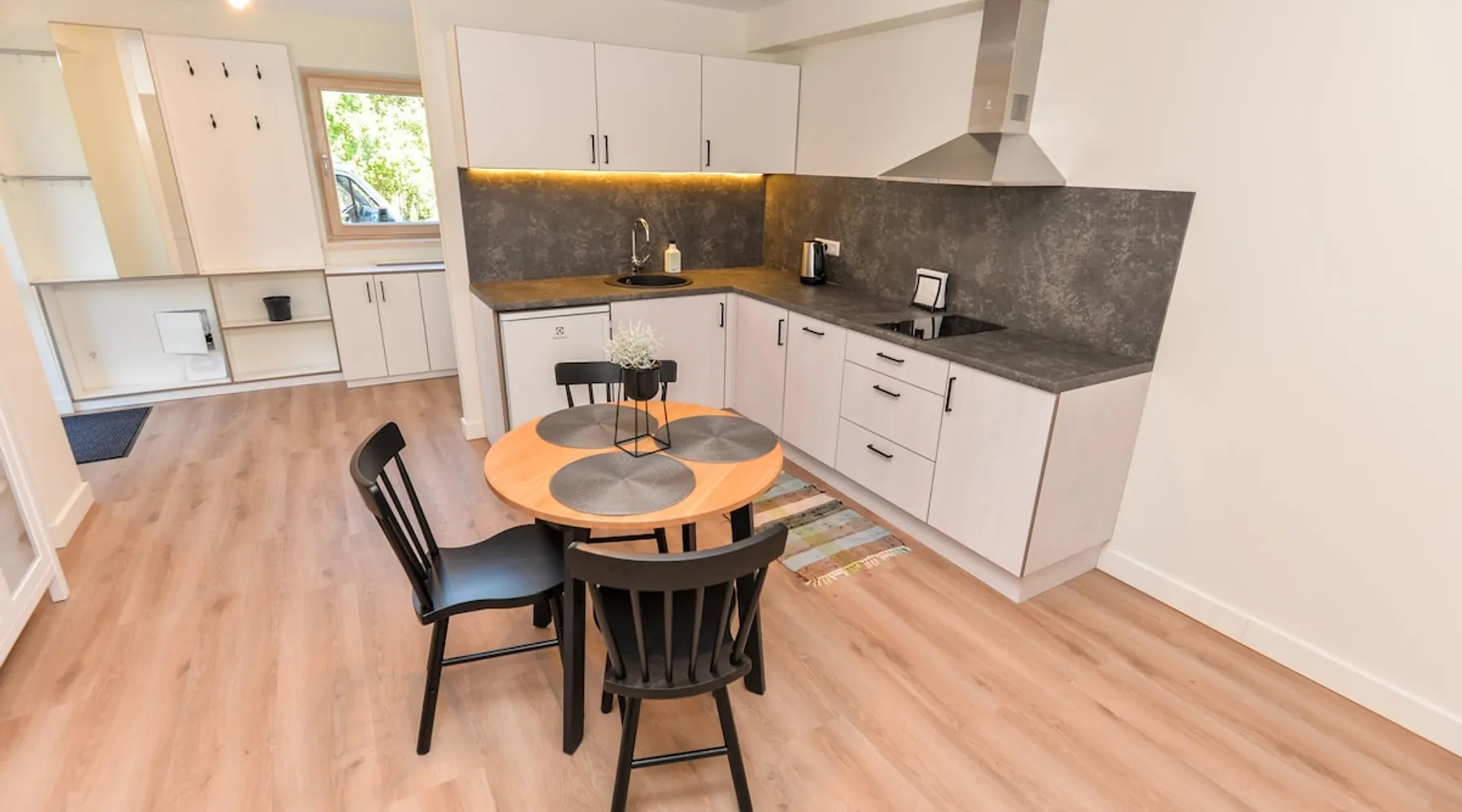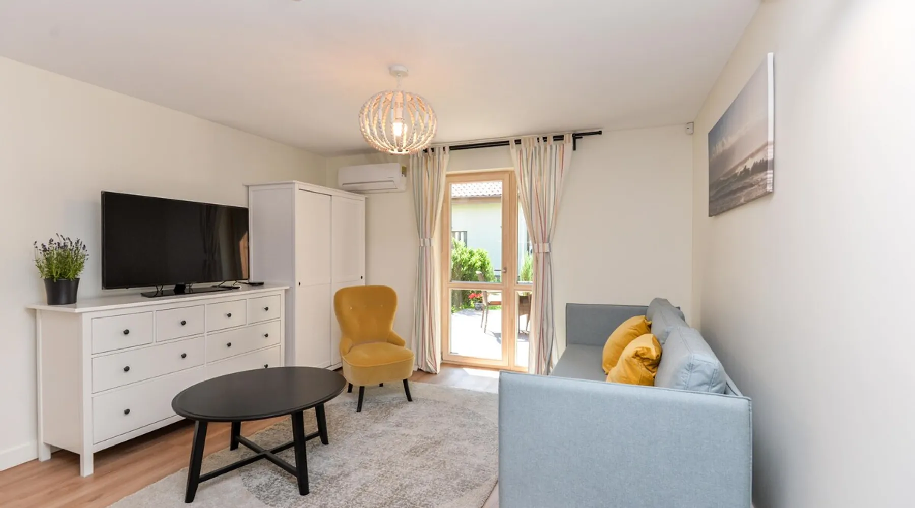 “New construction, beautiful and cozy apartment on the ground floor with spacious terrace. To the Curonian Lagoon about 200m, Baltic Sea about 1200m, nearest bar 300m, grocery store 200m,bus stop 2 min walk. Free parking near you. Contactless check-in.