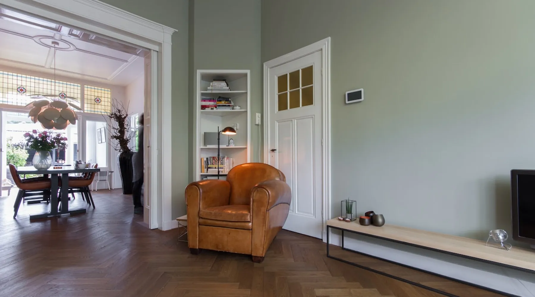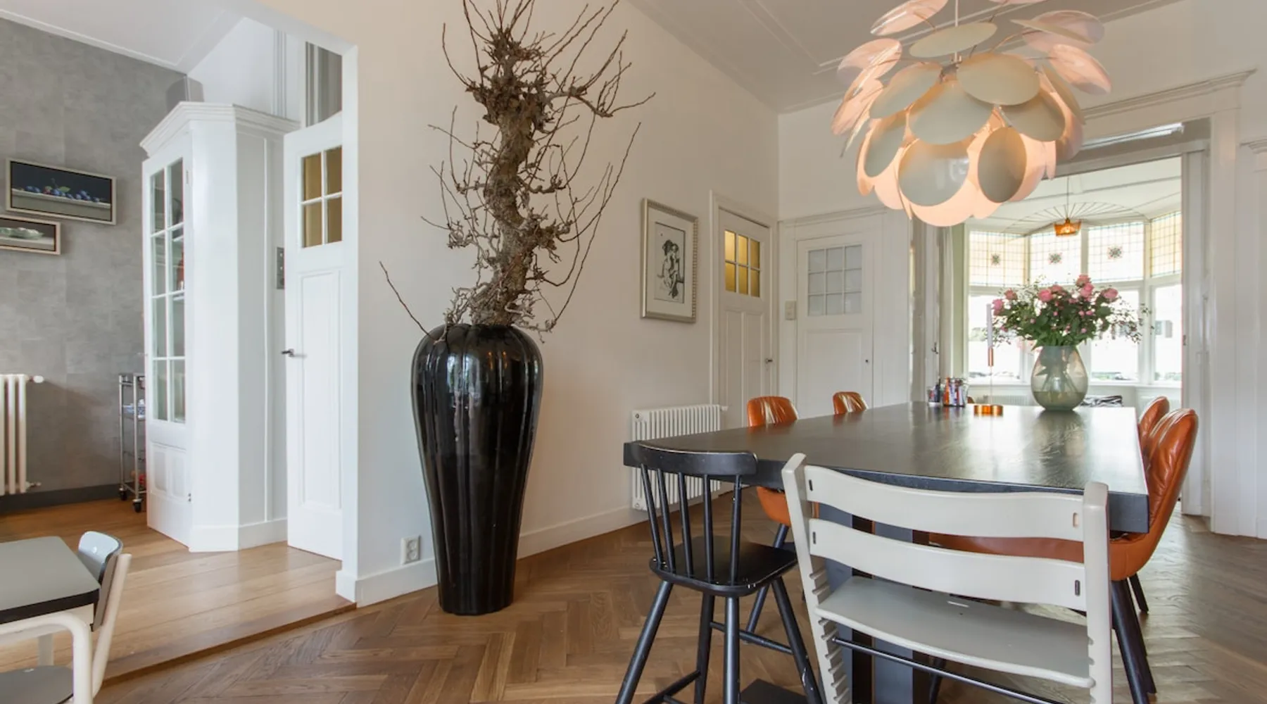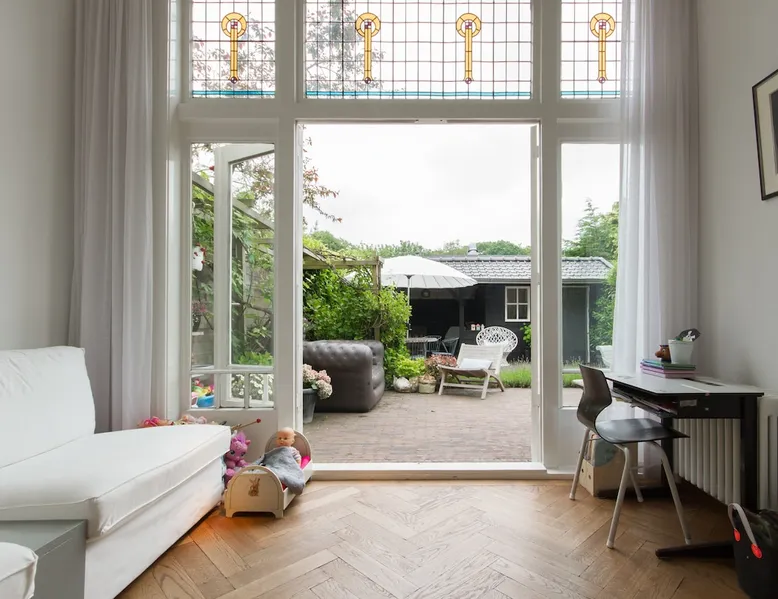 Lovely monumental family house (200m2) in the beloved Bos & Vaart neighbourhood. Spacious livingroom, designer kitchen, sunny garden (south), 3 bedrooms, 2 bathrooms. Quiet street (free parking), park & playground around the corner, only 5 min. from city center and 5 min. from trainstation. The space Welcome to our lovely monumental family house in the beloved Bos & Vaart neighborhood. A spacious livingroom, designer kitchen, sunny south-facing garden, 3 bedrooms, 2 bathrooms, 2 separate toilets. Our street is a quiet street, with free parking and just 5 minutes (cycling) distance from Haarlem center, 5 minutes (driving) from the railway station and 20 minutes (driving) from Amsterdam, or 15 minutes (driving) to Zandvoort beach. Our street is adjacent to the city park Haarlemmerhout and a large playground. Great choice both for families or couples. Sorry, we do not accept a group of young singles. The house is semi-detached and spacious (ca. 200m2). Our ‘livingroom en suite’ adjoins a fully equiped open kitchen and has french doors facing the garden. On the first floor you’ll find the master bedroom with a large king size bed and a spacious balcony (no rear neighbours). Our bathroom has both a bath and a rain shower. On the same floor we have a pretty large kids bedroom with a large 1p (twijfelaar) bed. There is also enough space for a travel cod. On the same floor there is a study, which will be closed during your stay unless we agree otherwise. On the topfloor you will find a nice room with a double bed, which can be seperated if it's not used by a couple. On this floor there is a second bathroom (toilet & shower). There is also a comfortable washroom (washer, dryer). There is free-wifi available. Rent a bike and go the Dutch way! Cycle to the center (5 minutes), station (5 minutes) and beach (40 minutes). Amsterdam is 20 minutes by car and 15 minutes by train. Buses stop around the corner. We love our historic neighbourhood. Besides that Haarlem is really a great base to explore the Netherlands. Let us know what you'd like to do and we'll give you all sorts of tips. From the coolest beach club, must-see historical sites, best places to go with kids to the most popular restaurants in town. We will not be present during your stay, and we usually stay in touch with our guest during their stay through Whats App or text massages. One dog is allowed, but not upstairs (euro 150 cleaning fine) and please, the dog needs to behave and should not go to our neighbors garden. No smoking and please be cautious with our lovely house! Guest access The house is semi-detached and spacious (ca. 200m2). Our ‘livingroom en suite’ adjoins a fully equiped open kitchen and has french doors facing the garden. On the first floor you’ll find the master bedroom with a large king size bed and a spacious balcony (no rear neighbours). Our bathroom has both a bath and a rain shower. On the same floor we have a pretty large kids bedroom with a ‘twijfelaar’ 1.5 person bed. There is also enough space for a travel cod. On the same floor there is a study, which will be closed during your stay unless we agree otherwise. On the topfloor we have a bedroom with a double bed, which can be seperated if it's not used by a couple. On this floor there is a second bathroom (toilet & shower) and the laundry room. Other things to note - no partying - no smoking - no group of youngsters, just couples and families Registration Details 0392 932B 8007 9D5F AC69