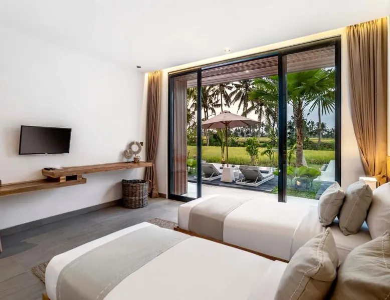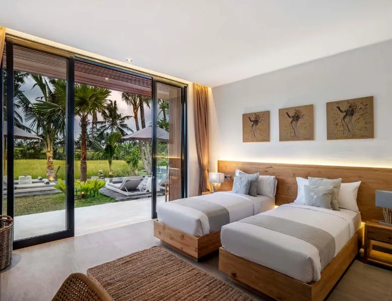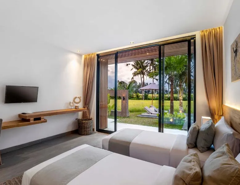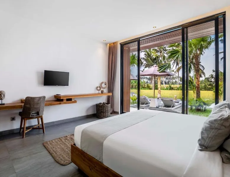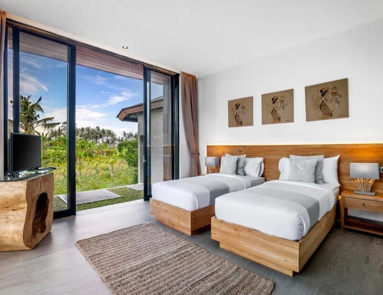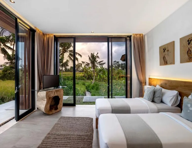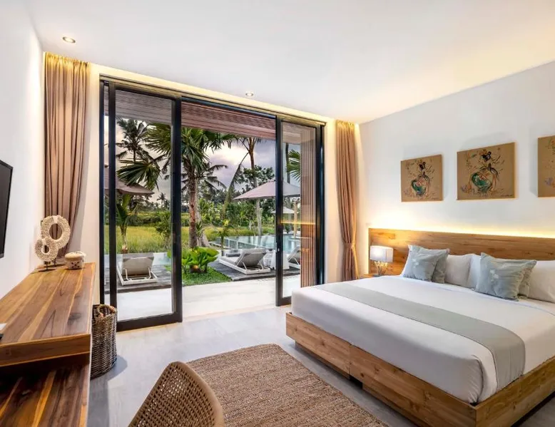 Spacious Accommodations: Villa Florentine by BaliSuperHost in Ubud offers a spacious layout with five bedrooms and five bathrooms. The property includes a living room, terrace, and garden, providing ample space for relaxation and entertainment. Exceptional Facilities: Guests enjoy a swimming pool with a view, a lush garden, and a terrace. Free WiFi is available throughout the villa, ensuring connectivity during the stay. Additional amenities include air-conditioning, a kitchenette, and a work desk. Convenient Location: Located 21 mi from Ngurah Rai International Airport, Villa Florentine is near attractions such as Goa Gajah (1.2 mi) and Monkey Forest Ubud (3.1 mi). Free on-site private parking is provided, and the reception staff speak English and Indonesian. Highly rated by guests. This villa provides a pool with a view. This spacious villa includes 1 living room, 5 separate bedrooms and 5 bathrooms with a shower and free toiletries. Meals can be prepared in the kitchen, which has a stovetop, a refrigerator, kitchenware and an oven. The air-conditioned villa offers a flat-screen TV, a private entrance, a seating area, a dining area as well as garden views. The unit has 5 beds.