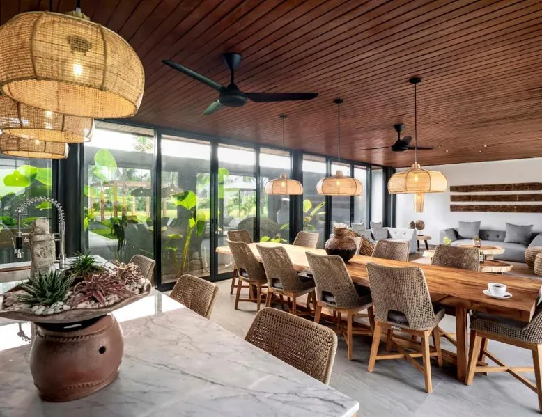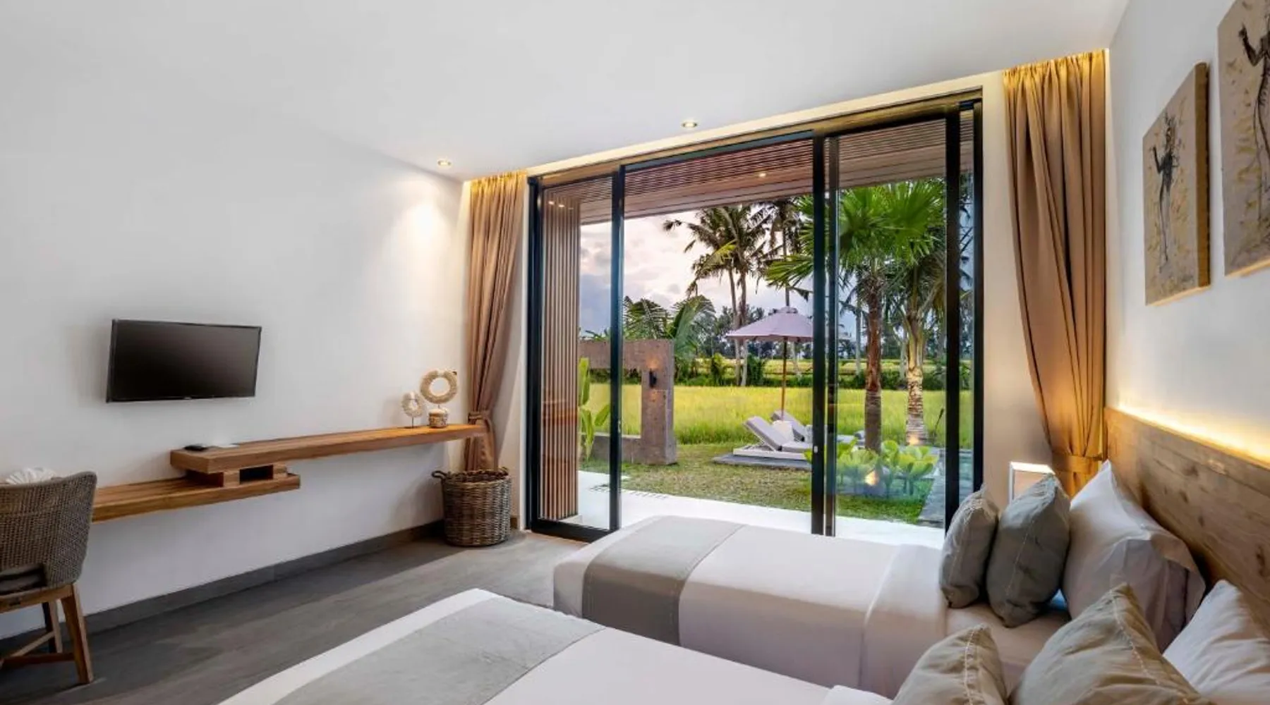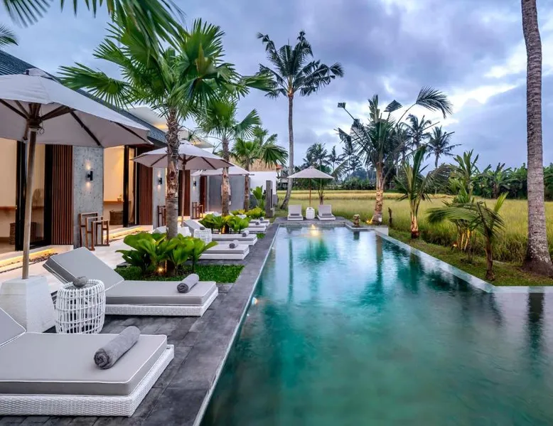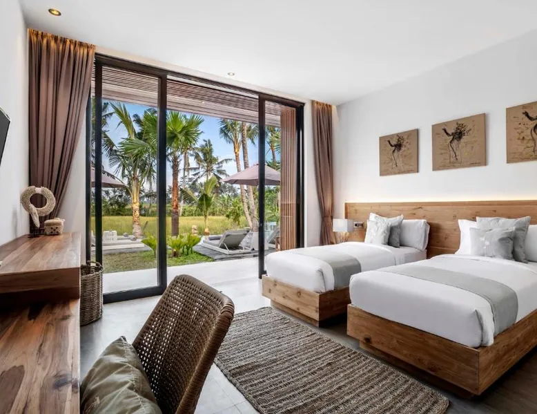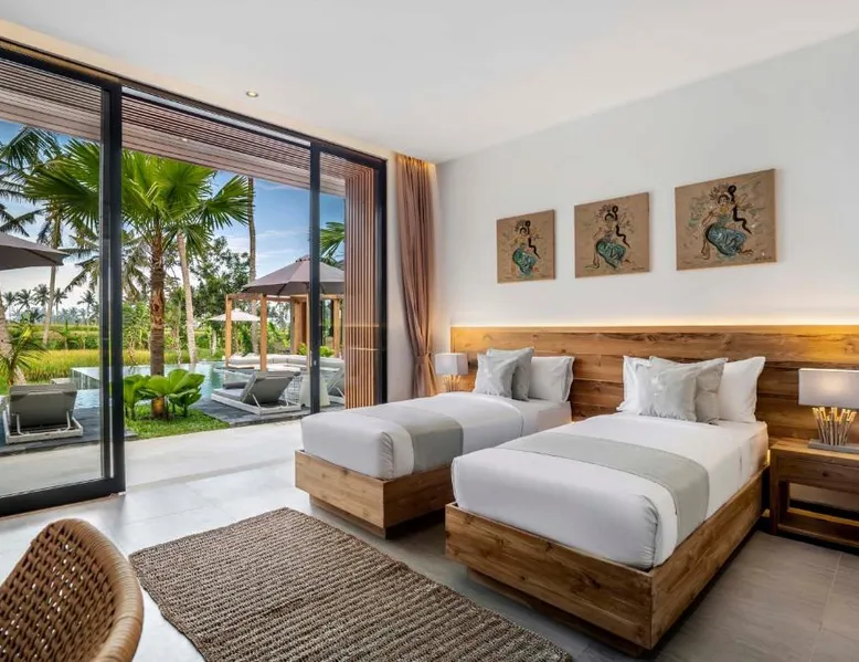 Spacious Accommodations: Villa Florentine by BaliSuperHost in Ubud offers a spacious layout with five bedrooms and five bathrooms. The property includes a living room, terrace, and garden, providing ample space for relaxation and entertainment. Exceptional Facilities: Guests enjoy a swimming pool with a view, a lush garden, and a terrace. Free WiFi is available throughout the villa, ensuring connectivity during the stay. Additional amenities include air-conditioning, a kitchenette, and a work desk. Convenient Location: Located 21 mi from Ngurah Rai International Airport, Villa Florentine is near attractions such as Goa Gajah (1.2 mi) and Monkey Forest Ubud (3.1 mi). Free on-site private parking is provided, and the reception staff speak English and Indonesian. Highly rated by guests. This villa provides a pool with a view. This spacious villa includes 1 living room, 5 separate bedrooms and 5 bathrooms with a shower and free toiletries. Meals can be prepared in the kitchen, which has a stovetop, a refrigerator, kitchenware and an oven. The air-conditioned villa offers a flat-screen TV, a private entrance, a seating area, a dining area as well as garden views. The unit has 5 beds.