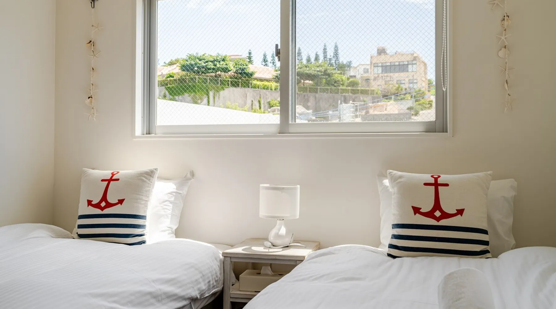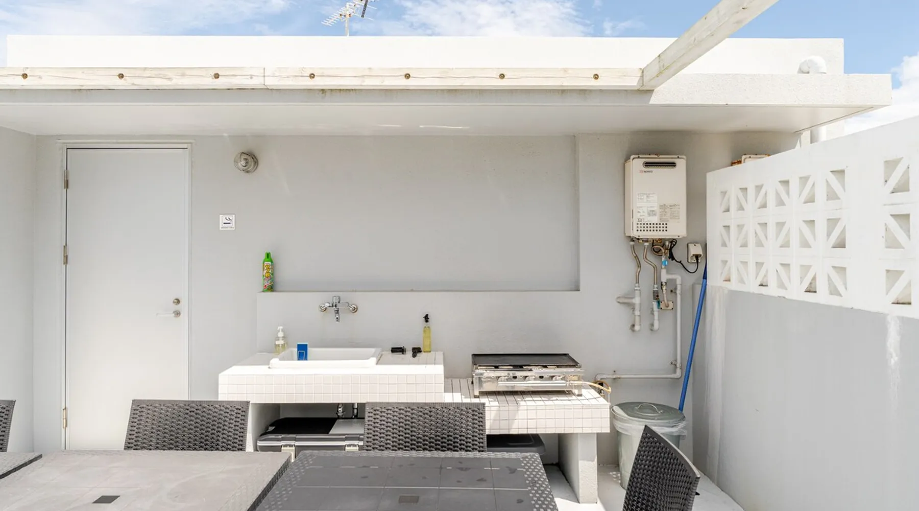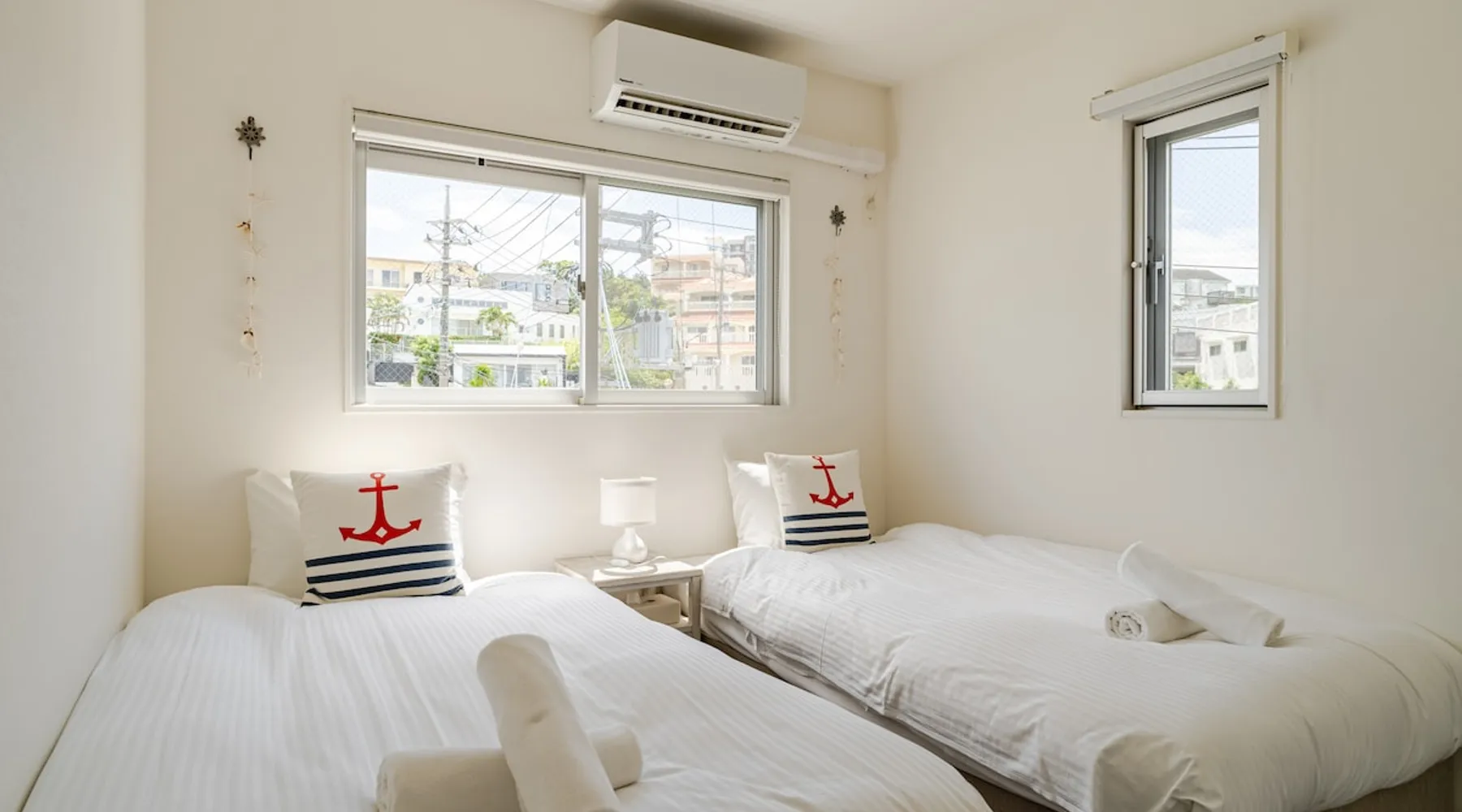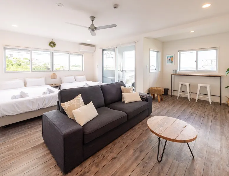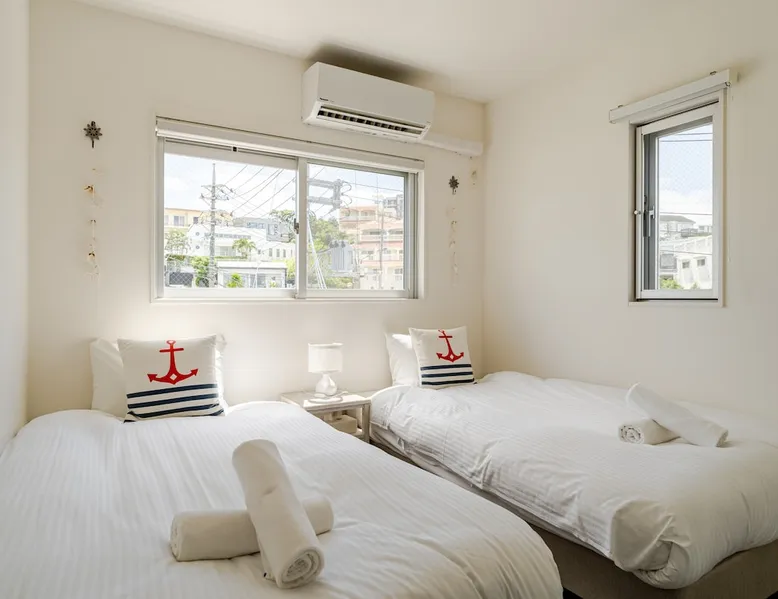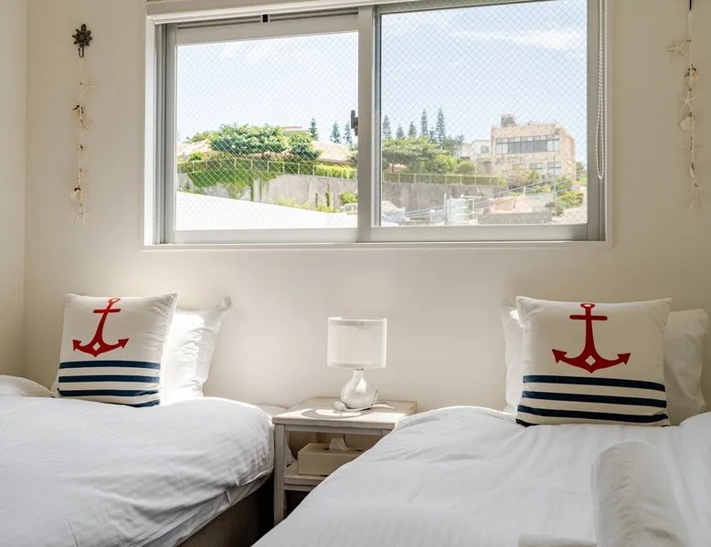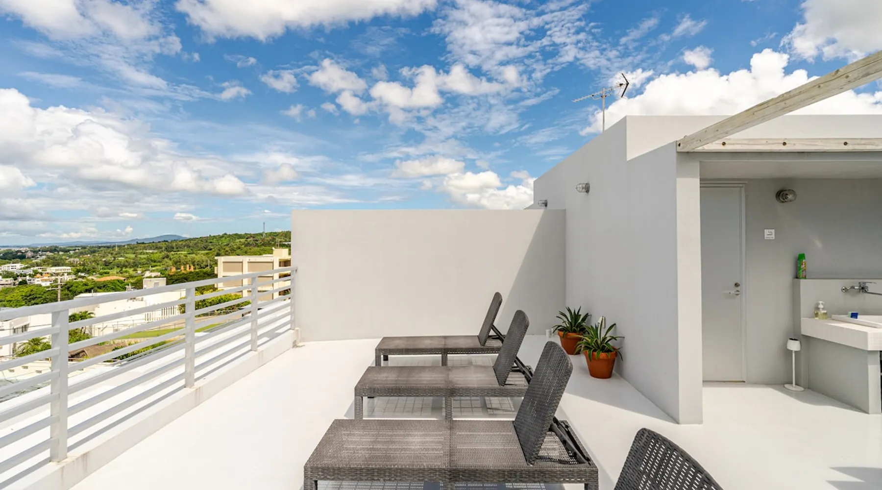 Nagahama in Yomitan is located between Cape Maeda and Cape Zanpa. You can experience the splendid view overlooking the Persian blue ocean, and the green view of the sugar cane fields. It is located 5 minutes by car from the World Heritage Site Zakimi Castle, 25 minutes from Chatan, and 75 minutes from the Churaumi Aquarium. Nagahama Anchored is a Duplex type condominium, divided into an A and B building. The space Nagahama Anchored B (up to 8 people / Non-smoking) The A building (215㎡) has 4 bedrooms and 3.5 bathrooms for up to 12 people (If 2 people sleep on one double bed). The building B (186㎡) has 3 bedrooms and 2.5 bathrooms for up to 8 people (If 2 people sleep on one double bed). You can also use the BBQ area overlooking the Nagahama seashore on the rooftop. ==Check-in / Check-out== - Check-in: 3 PM-10 PM - Check-out: 10 AM or anytime before. ※As our condominium is a large facility, we require about 10 minutes at check-in to provide an explanation of the facilities. Since staff will be dispatched to match your check-in time, please inform us of your expected arrival time. If you do not provide your arrival time, you may be asked to wait at check-in. ※When coming by car, please search "Nagahama Anchored" on your smartphone, so it will go smoothly. == Facilities / Amenities == - 186㎡ - 6 Beds (Double: 2 / Single: 4 / Simmons bed) - Air conditioner - TV - Free Wi-Fi - fire tv stick 4K - Washing machine, Dryer - Vacuum cleaner - Kitchen - Rice cooker - Hot plate - Coffee maker - Microwave - Toaster - Kettle - Dishes - Dishwasher - Towel - Hairdryer - Shampoo, body soap, conditioner (Leaf & Botanics) - Toothbrush, razor, body towel, hair band, shower cap - Clothes iron & ironing board - Vacuum cleaner - Highchair, baby cot, baby bathtub, toilet seat for infant, bed rails (Please let us know if you need.) - Car parking space (Garage: 2 cars, In front of the garage: 1 car, Total: 3 cars) - BBQ space on the rooftop terrace (Rental gas grill: ¥5000/stay) Other things to note Please read the following carefully before making a reservation: ▪️There have been frequent cases of guests violating manners and house rules. Please make sure to read and follow the house rules. ▪️The property has 6 beds and can accommodate up to 8 guests. In such cases, the double bed in the master bedroom will need to be shared by two guests. For groups exceeding 6 guests, an additional fee of 5,000 JPY per person per night will be charged. ▪️Okinawa is in typhoon season from mid-July to early November, and there is a high chance of delays or cancellations with travel arrangements on your way to Okinawa. Please be advised there are no exceptions to our standard cancellation policy for this situation. We kindly advise that you take out adequate travel insurance to cover this situation. ▪️According to Japanese law, since April 1, 2005, all foreign guests without a residential address in Japan are required to provide: *Name, *Address, *Occupation, *Nationality, and *Passport number, along with presenting and allowing a copy of their passport. For a smooth check-in, we kindly ask you to send us a copy of your passport via the Airbnb message thread before your arrival. ▪️There is a construction site adjacent to the property, and on some days construction noise may occur. If you are sensitive to noise, please refrain from booking or kindly understand this in advance. ▪️In recent years, there have been increasing reports of guests showing high-handed attitudes toward staff at accommodations. Similar cases have been observed at our facility. Please note that intimidating or disrespectful behavior toward staff or other guests may result in immediate termination of your stay, regardless of reason. Thank you for your understanding and cooperation in maintaining a comfortable environment. ==HOUSE RULE== ▪️The principle of our condominium rental is to return the unit as close as possible to the condition in which it was provided. Please wash and return to their original state any kitchen utensils, dishes, or other items you use. Please note that if you check out without cleaning up, you may be charged an additional cleaning fee. ▪️As our condominium is a large facility, we require about 10 minutes at check-in to provide an explanation of the facilities. Since staff will be dispatched to match your check-in time, please inform us of your expected arrival time. If you do not provide your arrival time, you may be asked to wait at check-in. ▪️In recent years, cases of underreporting the number of staying guests have occurred. If underreporting is found, a penalty of 30,000 JPY and the difference in accommodation fees will be charged. ▪️Our condominium requires 4–5 hours of cleaning after check-out. Therefore, in order to prepare for the next guests, check-out time is strictly at 10:00. Exceeding this time will incur a penalty fee of 30,000 JPY. ▪️To prevent mold, please keep the air conditioner in “Dehumidify” mode at all times. (During summer: when going out, please set to Dehumidify at 26℃ and do not turn it off.) ▪️Parties and loud music are strictly prohibited. Please also be mindful of noise on the rooftop BBQ area and balcony after 21:00. ▪️Regarding noise indoors, complaints from other guests have increased due to late-night loud conversations, banging on tables, etc. Please take care to avoid causing disturbances. ▪️Smoking is prohibited inside the facility (allowed only on the balcony and rooftop area). If smoking occurs indoors, a deodorizing cleaning fee of 30,000 JPY will be charged. ▪️The use of fire is prohibited inside the facility. BBQs, yakiniku, or any activities producing smoke or strong odors are allowed only in the rooftop BBQ area. If strong odors remain upon check-out, a deodorizing cleaning fee of 30,000 JPY will be charged. ▪️Fireworks are prohibited inside the facility, on the rooftop, and in surrounding areas. Any damage or 
