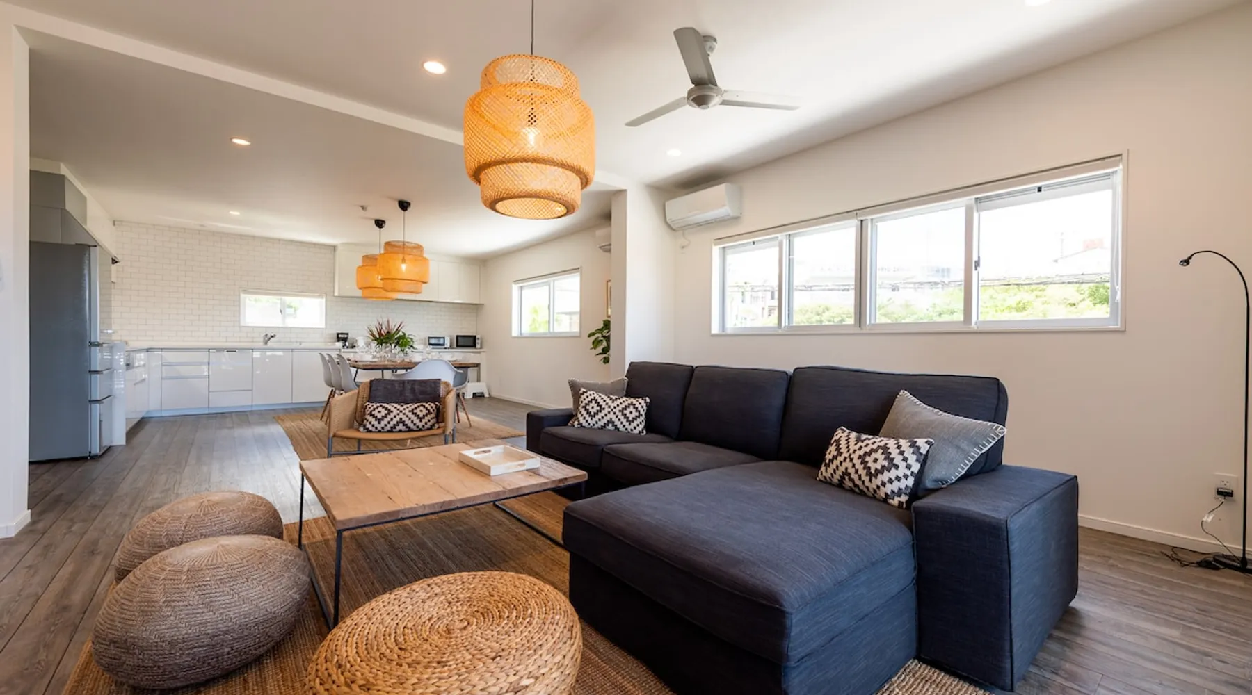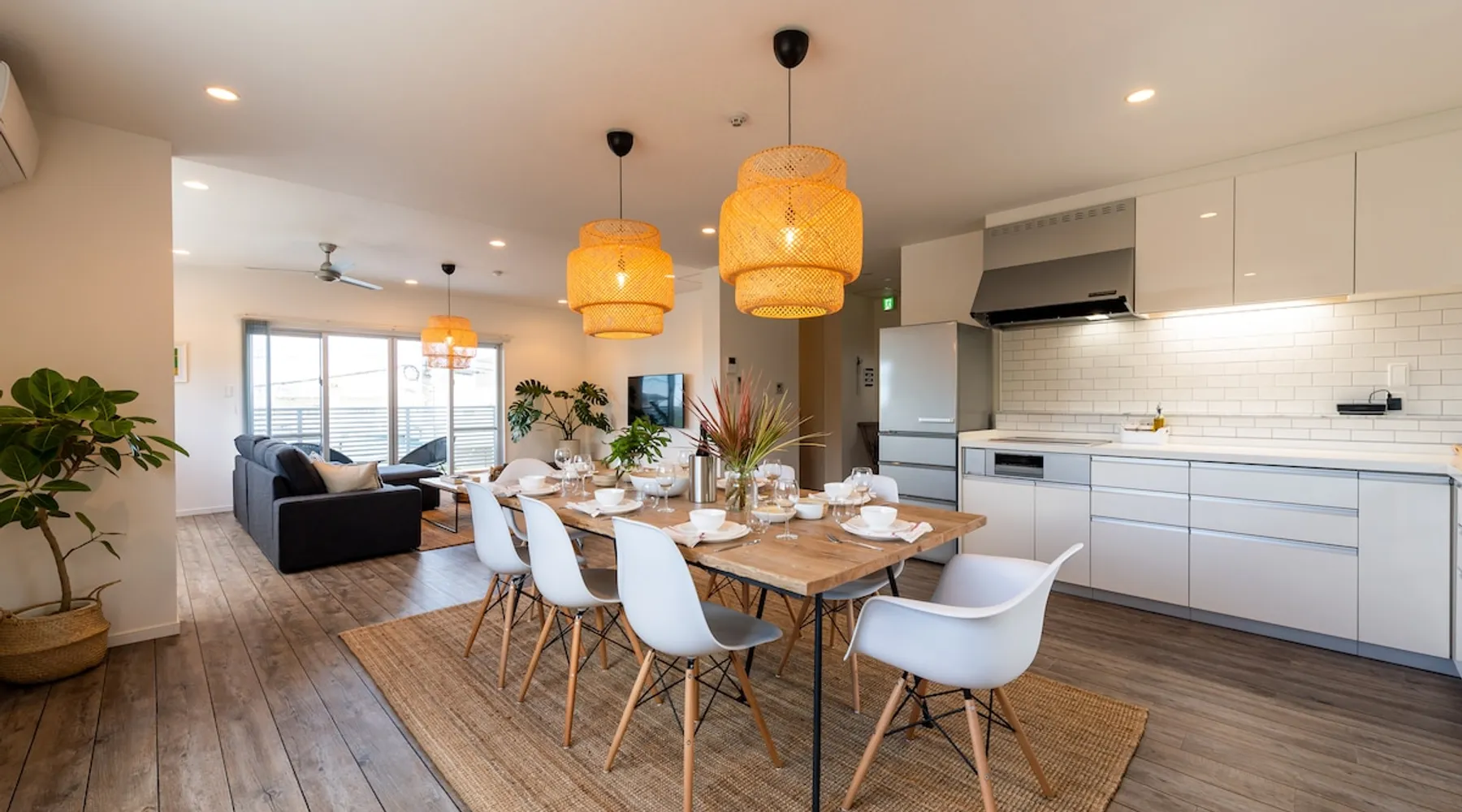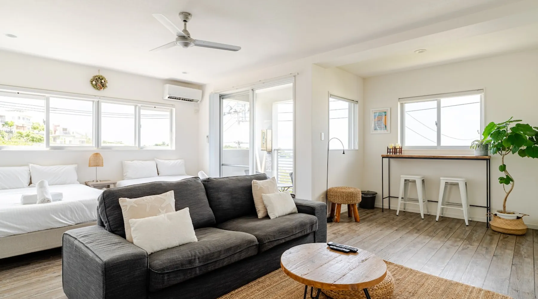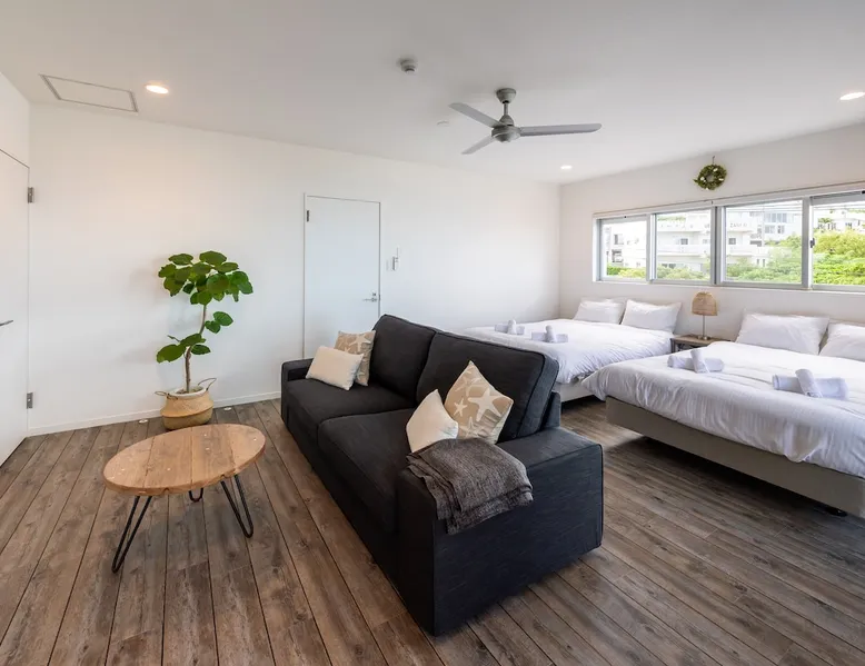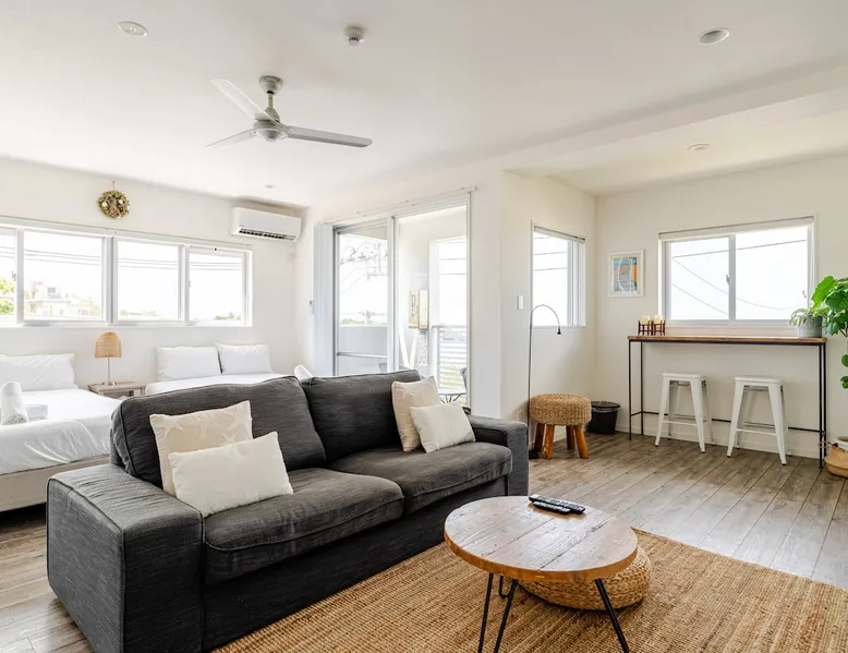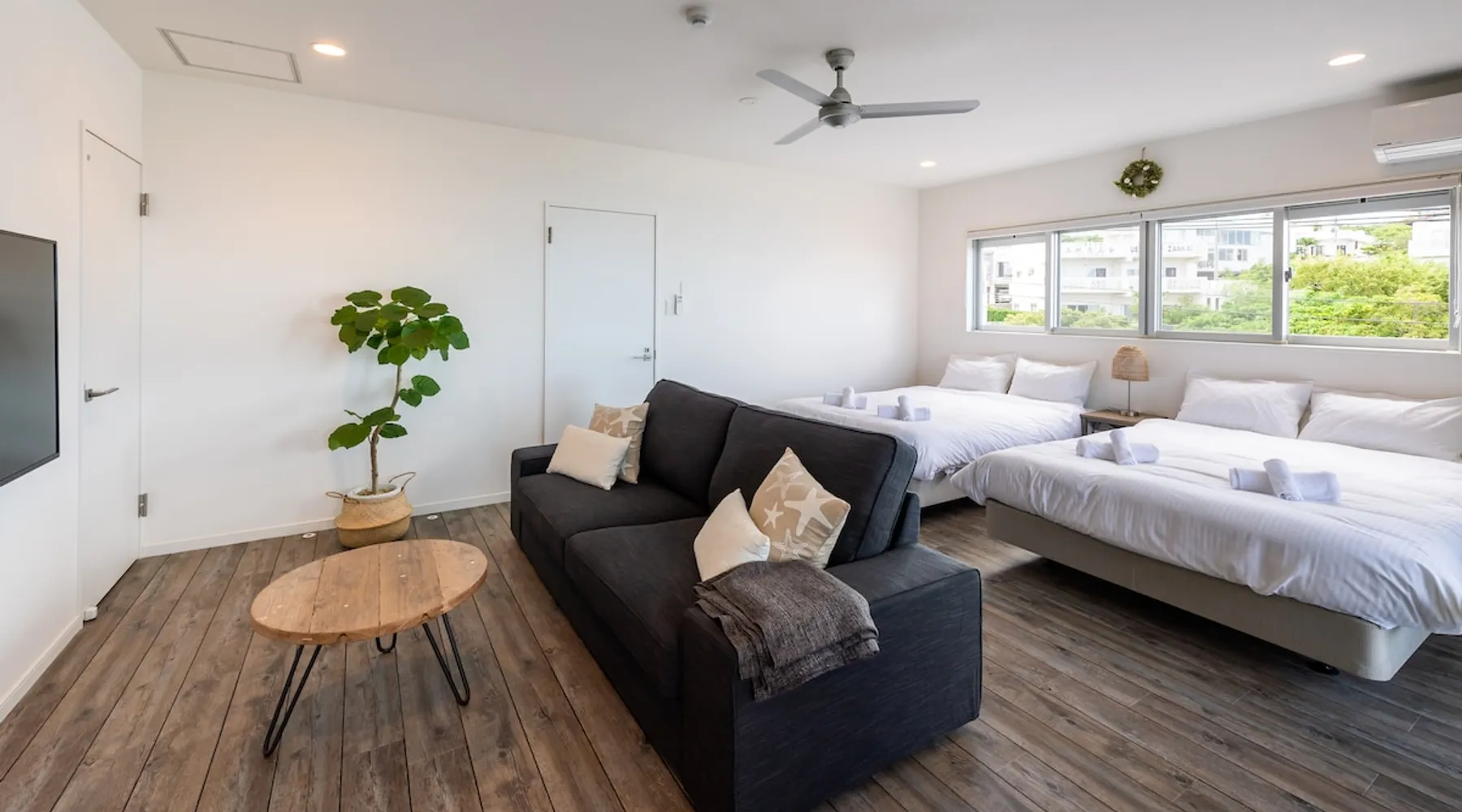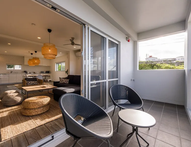 Nagahama in Yomitan is located between Cape Maeda and Cape Zanpa. You can experience the splendid view overlooking the Persian blue ocean, and the green view of the sugar cane fields. It is located 5 minutes by car from the World Heritage Site Zakimi Castle, 25 minutes from Chatan, and 75 minutes from the Churaumi Aquarium. Nagahama Anchored is a Duplex type condominium, divided into an A and B building. The space Nagahama Anchored B (up to 8 people / Non-smoking) The A building (215㎡) has 4 bedrooms and 3.5 bathrooms for up to 12 people (If 2 people sleep on one double bed). The building B (186㎡) has 3 bedrooms and 2.5 bathrooms for up to 8 people (If 2 people sleep on one double bed). You can also use the BBQ area overlooking the Nagahama seashore on the rooftop. ==Check-in / Check-out== - Check-in: 3 PM-10 PM - Check-out: 10 AM or anytime before. ※As our condominium is a large facility, we require about 10 minutes at check-in to provide an explanation of the facilities. Since staff will be dispatched to match your check-in time, please inform us of your expected arrival time. If you do not provide your arrival time, you may be asked to wait at check-in. ※When coming by car, please search "Nagahama Anchored" on your smartphone, so it will go smoothly. == Facilities / Amenities == - 186㎡ - 6 Beds (Double: 2 / Single: 4 / Simmons bed) - Air conditioner - TV - Free Wi-Fi - fire tv stick 4K - Washing machine, Dryer - Vacuum cleaner - Kitchen - Rice cooker - Hot plate - Coffee maker - Microwave - Toaster - Kettle - Dishes - Dishwasher - Towel - Hairdryer - Shampoo, body soap, conditioner (Leaf & Botanics) - Toothbrush, razor, body towel, hair band, shower cap - Clothes iron & ironing board - Vacuum cleaner - Highchair, baby cot, baby bathtub, toilet seat for infant, bed rails (Please let us know if you need.) - Car parking space (Garage: 2 cars, In front of the garage: 1 car, Total: 3 cars) - BBQ space on the rooftop terrace (Rental gas grill: ¥5000/stay) Other things to note Please read the following carefully before making a reservation: ▪️There have been frequent cases of guests violating manners and house rules. Please make sure to read and follow the house rules. ▪️The property has 6 beds and can accommodate up to 8 guests. In such cases, the double bed in the master bedroom will need to be shared by two guests. For groups exceeding 6 guests, an additional fee of 5,000 JPY per person per night will be charged. ▪️Okinawa is in typhoon season from mid-July to early November, and there is a high chance of delays or cancellations with travel arrangements on your way to Okinawa. Please be advised there are no exceptions to our standard cancellation policy for this situation. We kindly advise that you take out adequate travel insurance to cover this situation. ▪️According to Japanese law, since April 1, 2005, all foreign guests without a residential address in Japan are required to provide: *Name, *Address, *Occupation, *Nationality, and *Passport number, along with presenting and allowing a copy of their passport. For a smooth check-in, we kindly ask you to send us a copy of your passport via the Airbnb message thread before your arrival. ▪️There is a construction site adjacent to the property, and on some days construction noise may occur. If you are sensitive to noise, please refrain from booking or kindly understand this in advance. ▪️In recent years, there have been increasing reports of guests showing high-handed attitudes toward staff at accommodations. Similar cases have been observed at our facility. Please note that intimidating or disrespectful behavior toward staff or other guests may result in immediate termination of your stay, regardless of reason. Thank you for your understanding and cooperation in maintaining a comfortable environment. ==HOUSE RULE== ▪️The principle of our condominium rental is to return the unit as close as possible to the condition in which it was provided. Please wash and return to their original state any kitchen utensils, dishes, or other items you use. Please note that if you check out without cleaning up, you may be charged an additional cleaning fee. ▪️As our condominium is a large facility, we require about 10 minutes at check-in to provide an explanation of the facilities. Since staff will be dispatched to match your check-in time, please inform us of your expected arrival time. If you do not provide your arrival time, you may be asked to wait at check-in. ▪️In recent years, cases of underreporting the number of staying guests have occurred. If underreporting is found, a penalty of 30,000 JPY and the difference in accommodation fees will be charged. ▪️Our condominium requires 4–5 hours of cleaning after check-out. Therefore, in order to prepare for the next guests, check-out time is strictly at 10:00. Exceeding this time will incur a penalty fee of 30,000 JPY. ▪️To prevent mold, please keep the air conditioner in “Dehumidify” mode at all times. (During summer: when going out, please set to Dehumidify at 26℃ and do not turn it off.) ▪️Parties and loud music are strictly prohibited. Please also be mindful of noise on the rooftop BBQ area and balcony after 21:00. ▪️Regarding noise indoors, complaints from other guests have increased due to late-night loud conversations, banging on tables, etc. Please take care to avoid causing disturbances. ▪️Smoking is prohibited inside the facility (allowed only on the balcony and rooftop area). If smoking occurs indoors, a deodorizing cleaning fee of 30,000 JPY will be charged. ▪️The use of fire is prohibited inside the facility. BBQs, yakiniku, or any activities producing smoke or strong odors are allowed only in the rooftop BBQ area. If strong odors remain upon check-out, a deodorizing cleaning fee of 30,000 JPY will be charged. ▪️Fireworks are prohibited inside the facility, on the rooftop, and in surrounding areas. Any damage or 