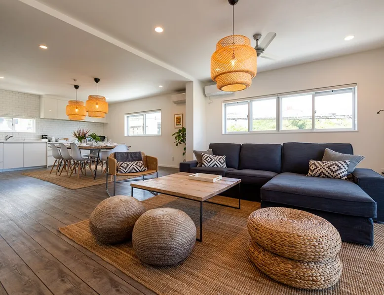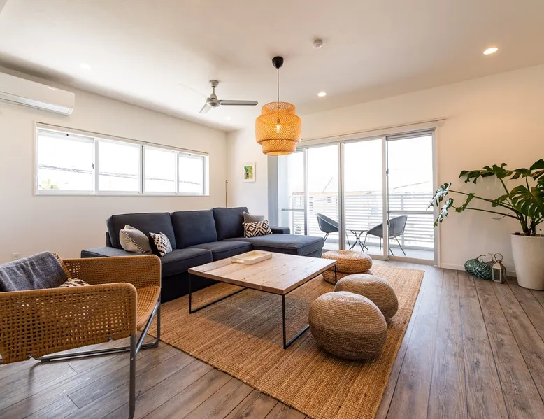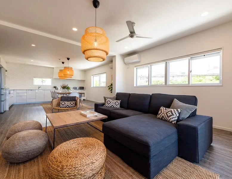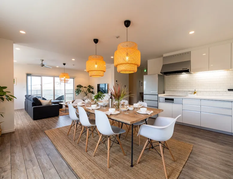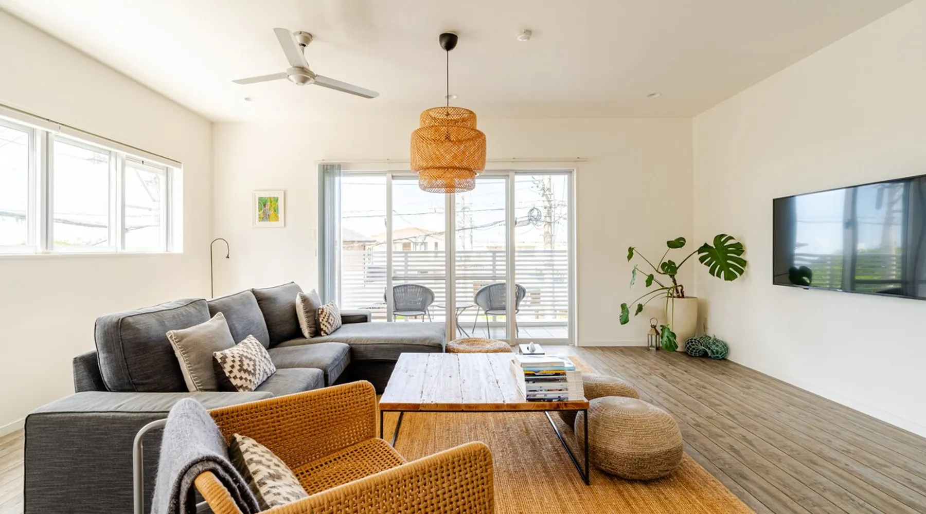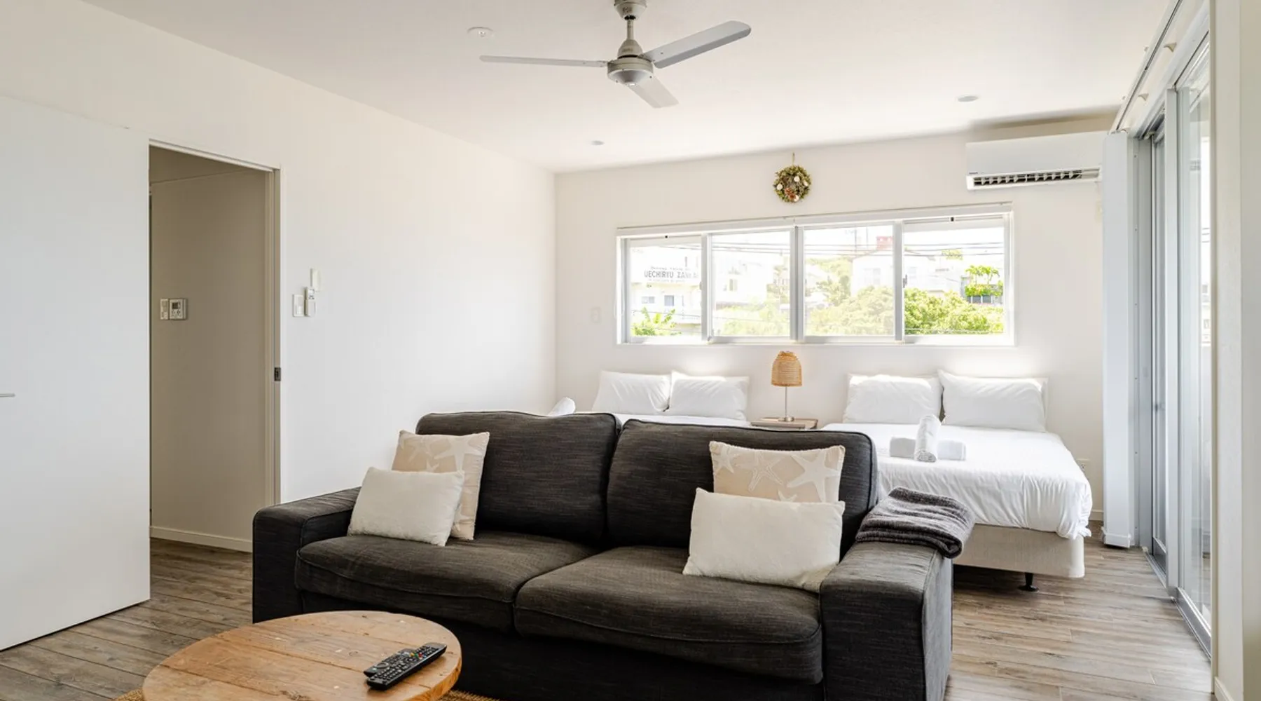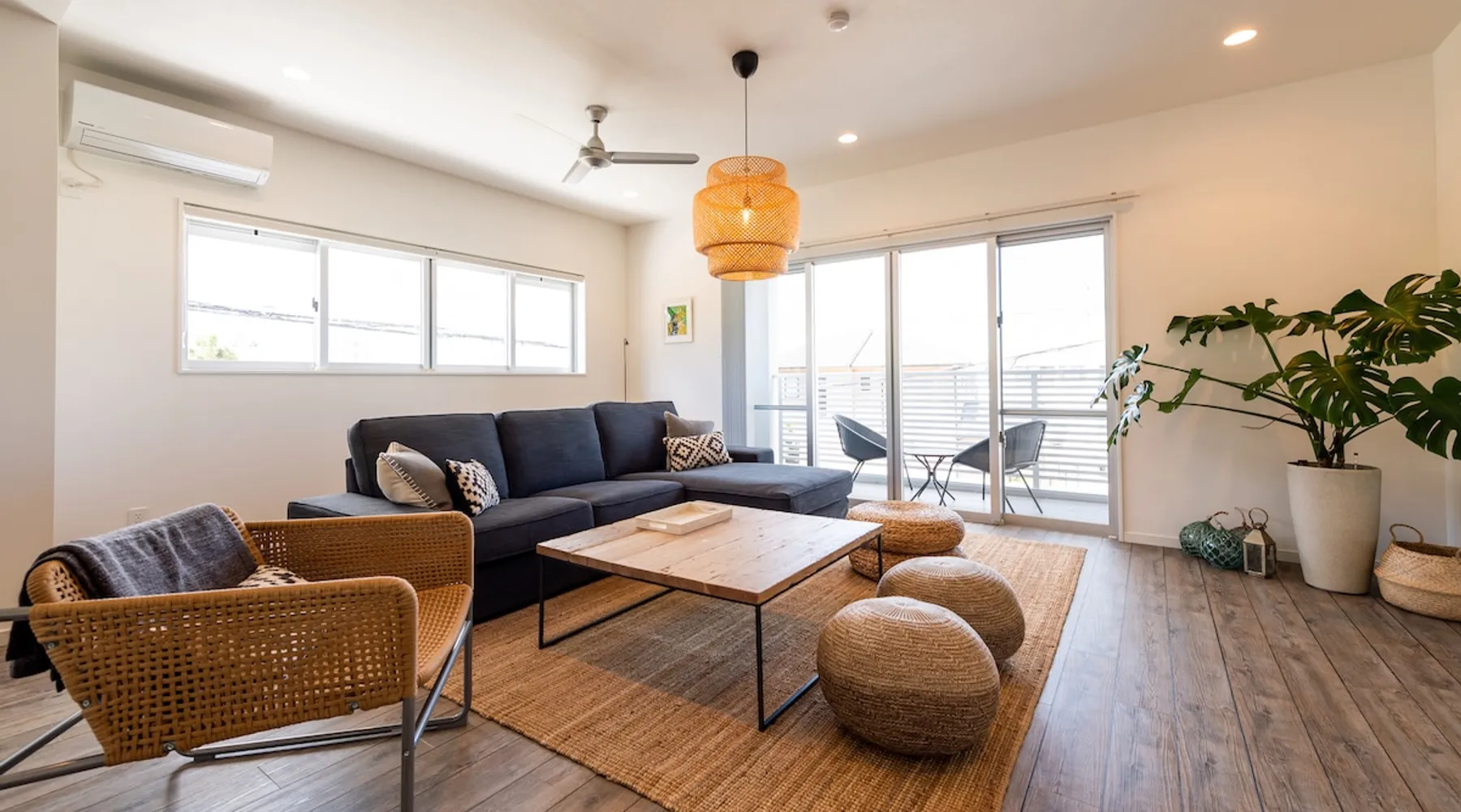 Nagahama in Yomitan is located between Cape Maeda and Cape Zanpa. You can experience the splendid view overlooking the Persian blue ocean, and the green view of the sugar cane fields. It is located 5 minutes by car from the World Heritage Site Zakimi Castle, 25 minutes from Chatan, and 75 minutes from the Churaumi Aquarium. Nagahama Anchored is a Duplex type condominium, divided into an A and B building. The space Nagahama Anchored B (up to 8 people / Non-smoking) The A building (215㎡) has 4 bedrooms and 3.5 bathrooms for up to 12 people (If 2 people sleep on one double bed). The building B (186㎡) has 3 bedrooms and 2.5 bathrooms for up to 8 people (If 2 people sleep on one double bed). You can also use the BBQ area overlooking the Nagahama seashore on the rooftop. ==Check-in / Check-out== - Check-in: 3 PM-10 PM - Check-out: 10 AM or anytime before. ※As our condominium is a large facility, we require about 10 minutes at check-in to provide an explanation of the facilities. Since staff will be dispatched to match your check-in time, please inform us of your expected arrival time. If you do not provide your arrival time, you may be asked to wait at check-in. ※When coming by car, please search "Nagahama Anchored" on your smartphone, so it will go smoothly. == Facilities / Amenities == - 186㎡ - 6 Beds (Double: 2 / Single: 4 / Simmons bed) - Air conditioner - TV - Free Wi-Fi - fire tv stick 4K - Washing machine, Dryer - Vacuum cleaner - Kitchen - Rice cooker - Hot plate - Coffee maker - Microwave - Toaster - Kettle - Dishes - Dishwasher - Towel - Hairdryer - Shampoo, body soap, conditioner (Leaf & Botanics) - Toothbrush, razor, body towel, hair band, shower cap - Clothes iron & ironing board - Vacuum cleaner - Highchair, baby cot, baby bathtub, toilet seat for infant, bed rails (Please let us know if you need.) - Car parking space (Garage: 2 cars, In front of the garage: 1 car, Total: 3 cars) - BBQ space on the rooftop terrace (Rental gas grill: ¥5000/stay) Other things to note Please read the following carefully before making a reservation: ▪️There have been frequent cases of guests violating manners and house rules. Please make sure to read and follow the house rules. ▪️The property has 6 beds and can accommodate up to 8 guests. In such cases, the double bed in the master bedroom will need to be shared by two guests. For groups exceeding 6 guests, an additional fee of 5,000 JPY per person per night will be charged. ▪️Okinawa is in typhoon season from mid-July to early November, and there is a high chance of delays or cancellations with travel arrangements on your way to Okinawa. Please be advised there are no exceptions to our standard cancellation policy for this situation. We kindly advise that you take out adequate travel insurance to cover this situation. ▪️According to Japanese law, since April 1, 2005, all foreign guests without a residential address in Japan are required to provide: *Name, *Address, *Occupation, *Nationality, and *Passport number, along with presenting and allowing a copy of their passport. For a smooth check-in, we kindly ask you to send us a copy of your passport via the Airbnb message thread before your arrival. ▪️There is a construction site adjacent to the property, and on some days construction noise may occur. If you are sensitive to noise, please refrain from booking or kindly understand this in advance. ▪️In recent years, there have been increasing reports of guests showing high-handed attitudes toward staff at accommodations. Similar cases have been observed at our facility. Please note that intimidating or disrespectful behavior toward staff or other guests may result in immediate termination of your stay, regardless of reason. Thank you for your understanding and cooperation in maintaining a comfortable environment. ==HOUSE RULE== ▪️The principle of our condominium rental is to return the unit as close as possible to the condition in which it was provided. Please wash and return to their original state any kitchen utensils, dishes, or other items you use. Please note that if you check out without cleaning up, you may be charged an additional cleaning fee. ▪️As our condominium is a large facility, we require about 10 minutes at check-in to provide an explanation of the facilities. Since staff will be dispatched to match your check-in time, please inform us of your expected arrival time. If you do not provide your arrival time, you may be asked to wait at check-in. ▪️In recent years, cases of underreporting the number of staying guests have occurred. If underreporting is found, a penalty of 30,000 JPY and the difference in accommodation fees will be charged. ▪️Our condominium requires 4–5 hours of cleaning after check-out. Therefore, in order to prepare for the next guests, check-out time is strictly at 10:00. Exceeding this time will incur a penalty fee of 30,000 JPY. ▪️To prevent mold, please keep the air conditioner in “Dehumidify” mode at all times. (During summer: when going out, please set to Dehumidify at 26℃ and do not turn it off.) ▪️Parties and loud music are strictly prohibited. Please also be mindful of noise on the rooftop BBQ area and balcony after 21:00. ▪️Regarding noise indoors, complaints from other guests have increased due to late-night loud conversations, banging on tables, etc. Please take care to avoid causing disturbances. ▪️Smoking is prohibited inside the facility (allowed only on the balcony and rooftop area). If smoking occurs indoors, a deodorizing cleaning fee of 30,000 JPY will be charged. ▪️The use of fire is prohibited inside the facility. BBQs, yakiniku, or any activities producing smoke or strong odors are allowed only in the rooftop BBQ area. If strong odors remain upon check-out, a deodorizing cleaning fee of 30,000 JPY will be charged. ▪️Fireworks are prohibited inside the facility, on the rooftop, and in surrounding areas. Any damage or 