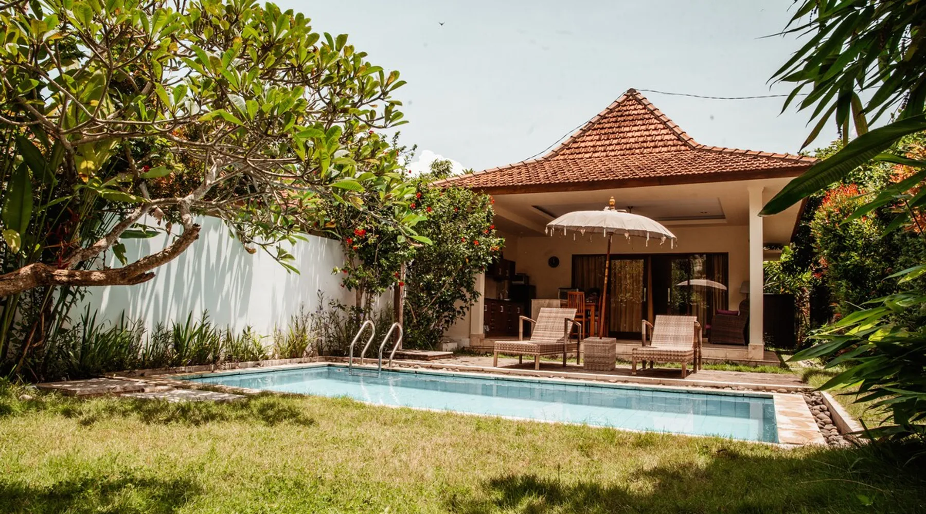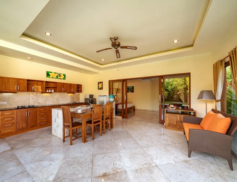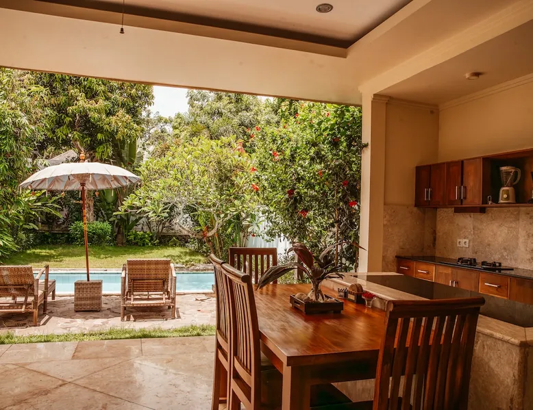When paradise decided to take a nap — it chose our villa. 🌴 Where rosters sing, WIFI flies and stress gets deported. ⍨ Villa: 120 m² ⍨ PRIVATE Garden: 250 m² ⍨ PRIVATE Pool: 5×3 m ➢ Bedroom so comfy it might ghost your plans ➢ Fully stocked kitchen (yes, wine opener included) ➢ Coffee corner for your “don’t talk to me yet” mornings ➢ Terrace ⋙ Wi-Fi: fast enough ⋙ Village life: quiet enough ⋙ Scooters: easy enough 》Perfect for couples, honeymoons, or your “I-quit-my-job” getaway. hzByP The space ⇝ Hidden in the Balangan Beach enclave, where locals surf, sand is still sand (not cement), and peace actually means peace. Shops and restaurants are just 5 min away — close enough for convenience, far enough to forget about them. 🏝️ ------ ⋙ 3 things you’ll absolutely love ⋘ ✔ 1. Our brand-new resto — delicious food, no dishes to wash. ✔ 2. Only 7 min to the nearest beach (and about 10–25 min to seven others, if you get lost). ✔ 3. Your own pool + villa vibes that scream “out of office forever.” ------ ⋙ 2 things you might not love (yet) ⋘ ✘ 1. You must leave by 11am. Yes, even if you’re in denial. ✘ 2. Roosters and dogs = our version of an alarm clock. Authentic Bali soundtrack included. 🎶 ------ ⋙ A few small (but important) things ⋘ ♠ I’m around if you need me — one message and poof, I appear (digitally, not magically). ♠ You’ll self-check-in, but I promise the villa won’t ghost you. ♠ Our staff are ninjas — helpful but practically invisible. ------ ⋙ Clean, green, and (mostly) serene ⋘ ≋ We clean with eco-friendly & organic products — so your conscience can also relax. ≋ Covid-clean standards still apply — sparkle guaranteed. ≋ Linens & towels get a refresh every 4 days (we also enjoy that fresh-sheet feeling). ≋ Sundays = lazy day. We only collect garbage — no cleaning, no judging. ------ ⋙ Breakfast plot twist ⋘ 🍳 Villa = fully equipped kitchen = DIY breakfast. BUT… if cooking feels like too much adulting, our resto serves breakfast daily 7:30am–1pm (Sundays till 10am). ------ Stay, swim, sip, and let Bali do the rest — just don’t blame us if you start Googling “how to move here permanently.” Guest access You have full access to the entire villa — because sharing is overrated. 🏡✨ That means the PRIVATE pool (no towel fights), PRIVATE garden (your only neighbors are butterflies), and our restaurant, where food magically appears if you actually pay for it. 🍽️ Make yourself at home — open drawers, claim the best spot by the pool, and pretend you live here… at least until checkout. Other things to note ❣❣ PLEASE READ BEFORE BOOKING (aka: Let’s manage expectations before they manage us) ❣❣ 🏗 CONSTRUCTION REALITY CHECK Yes, our neighbors decided to build something amazing (we hope). That means there might be some noise between 8:00 AM – 5:00 PM, a.k.a. the time when you should probably be at the beach anyway. As an apology (and a peace offering to your ears), we’ve already lowered the price. Please note: no, we can’t lower it again — unless you bring earplugs as payment. 😉 ------ ❣❣❣ DO NOT BOOK US IF... ❣❣❣ 🐜 1. You’re allergic to nature. We live in a tropical garden, and shockingly — tropical creatures also live here. Expect ants, geckos (the mosquito police), frogs (night DJs), and the occasional spider cameo. Please don’t ask us to evict them — they pay rent in cuteness. 💡Tip: close doors, use bug spray, and accept that frogs fall in love loudly when it rains. ----- 🐕 2. You think barking dogs are personal attacks. Welcome to the Balinese countryside — where every house has a dog on duty. They bark, growl, and judge your scooter speed. But worry not — in7 years, zero guests have been bitten (and many have been serenaded). 🐶🎵 ----- 🛵 3. You think walking is a lifestyle. Here, scooter = survival. Closest beach? 7 minutes. Other 7 beaches? 10–20 minutes. Walking distance? Let’s just say… you’ll reach enlightenment before dinner. If scooters aren’t your thing, call Gojek, Grab, or Bluebird Taxi — they’re our local superheroes. ----- If any of this makes you nervous — we lovingly suggest finding a place that suits you better. You’ll avoid disappointment, and we’ll avoid the “It was noisy, naturey, and tropical" review. Win–win! 😇 ----- But if you’re chill, adventurous, and ready for real Bali vibes — you’ll absolutely love it here. Our team will do everything (and then some) to make your stay unforgettable. 🌺 ----- All extras are paid, prices are moderate, and service is fabulously local. 🌀 QR codes for price lists are waiting in your room. ----- 💸 Money talk (the honest edition) ➽ No 10.5% service fee — we cover it. ➽ No deposit — just please don’t test gravity with our decor. ➽ 11% income tax — government loves Bali too. ➽ Cleaning fee: $5–10, fully given to our hardworking housekeepers (who deserve all the stars and tips 🌟). Come for the paradise, stay for the irony — and maybe a frog concert or two. 🐸✨