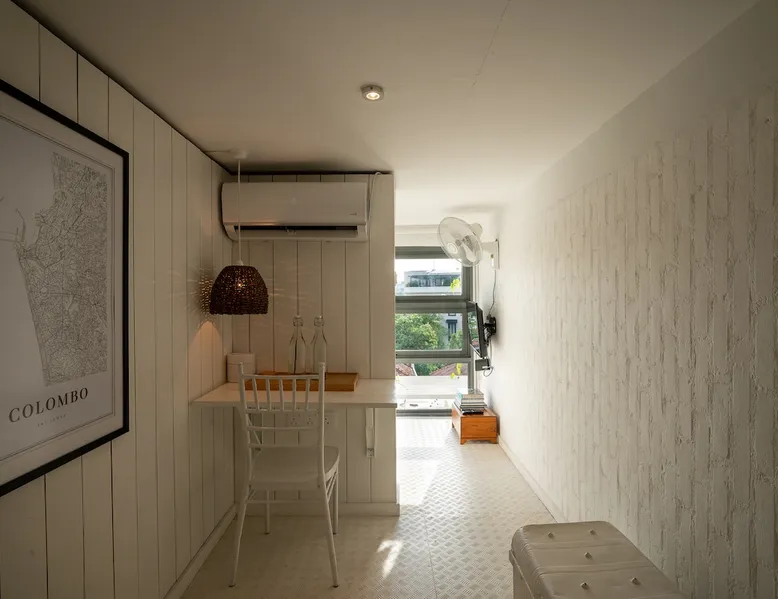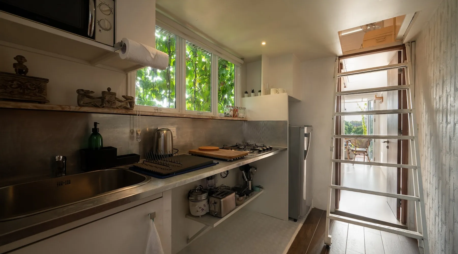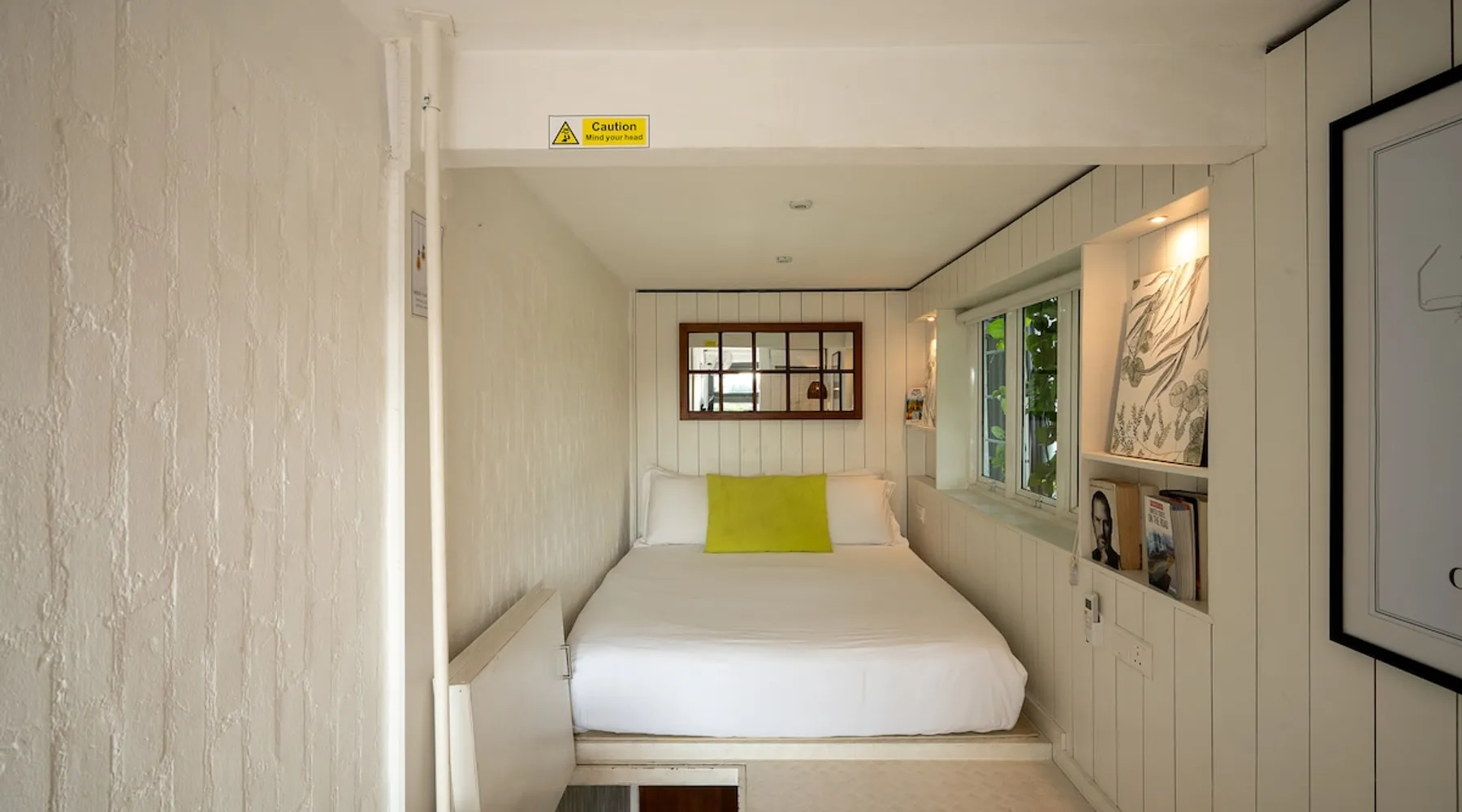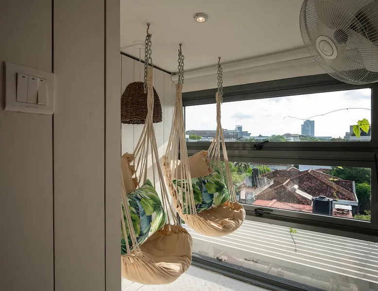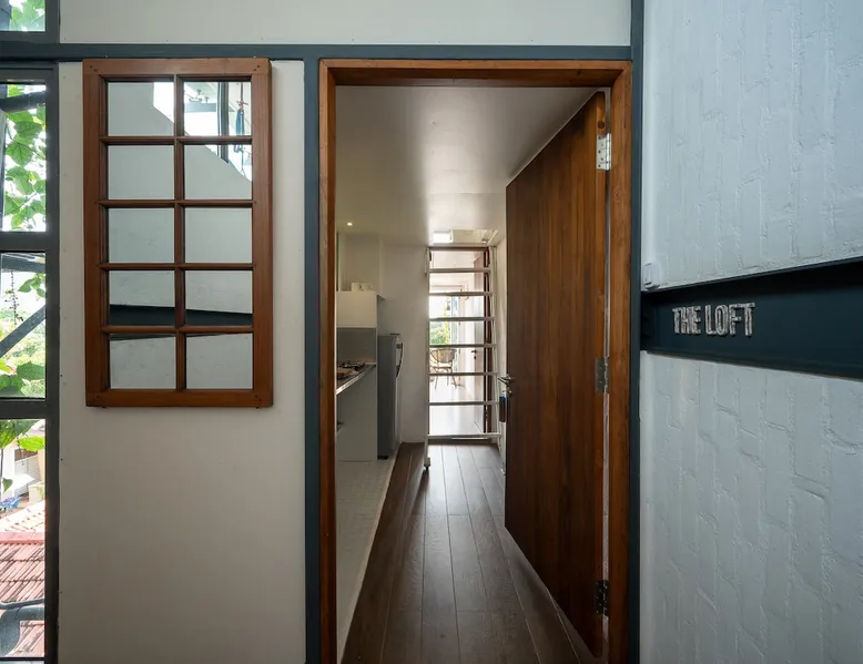 comfort. character. convenience Enjoying an abundance of natural light and ventilation, our tiny unique space sits aloft the tree canopies of neighbouring properties, with almost a defiant nod to the distant big city skyline. Stay with us and experience this charming 280sqft (26sqm) space that if full of tiny-house dwelling features. The space THE LOFT @ FIFTYFIVE offers a unique adventure steeped in comfort, convenience, and character. Designed for two, it can be your fun getaway for a few days, or home for a short-term work visit. The air-conditioned upper level of THE LOFT boasts a queen-mattress, dedicated workspace, and reading nook. Connected by an internal ladder, the lower level comprises a kitchen, washer/dryer, toilet, wardrobe, and alfresco dining area. Privacy is maintained with roller blinds, with blackout blinds on the upper level. The open-plan living spaces have been thoughtfully appointed to meet your every need - in a tiny space. Note: upper level headroom is ~74 inches (187cm) and is accessed by an internal ladder. The toilet with shower provides just enough space to get your jobs done! If you have any concerns; please discuss with us before making your booking. Guest access THE LOFT has a private entrance. The street-level entrance lobby with the elevator and stairs serve the units, rooftop terrace, pool and micro gym, and service areas. Other things to note A 40kva back-up generator gives uninterrupted power supply. Especially in times when the country is experiencing an extended period of dry weather, it's not unusual for the island to have power outages. Two bottles of drinking water are supplied to the apartment and a water dispenser is located in an easy to access location within the building for topping up. The rooftop pool (L20 feet x W6.5 feet x D3.25 feet) and the rooftop area are shared with other guests in the building. The building has five units with a combined maximum capacity of 15 guests. Caveat: The upper level headroom is ~74 inches (187cm) and is accessed by an internal ladder which requires a degree of flexibility of movement to manoeuvre. The upper living level is fully airconditioned. The lower level with the kitchen, toilet, and alfresco dining corner is not airconditioned. The alfresco dining corner with a wall-mounted fan opens out to a small balcony. The toilet with shower provides just enough space to get your jobs done! If you have any concerns; please discuss with us before making your booking.