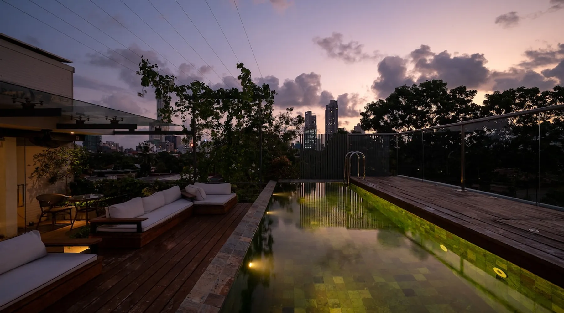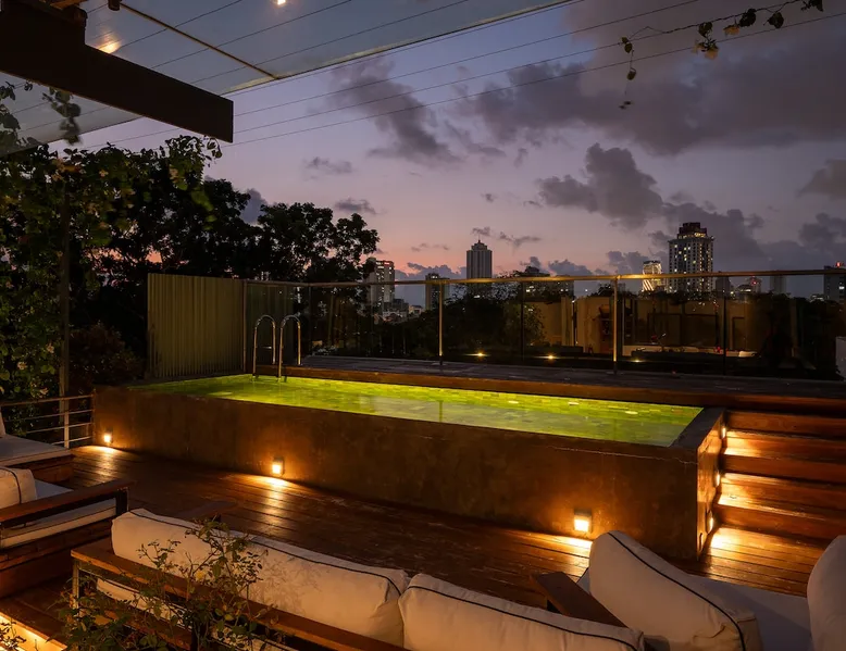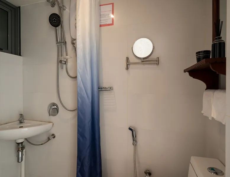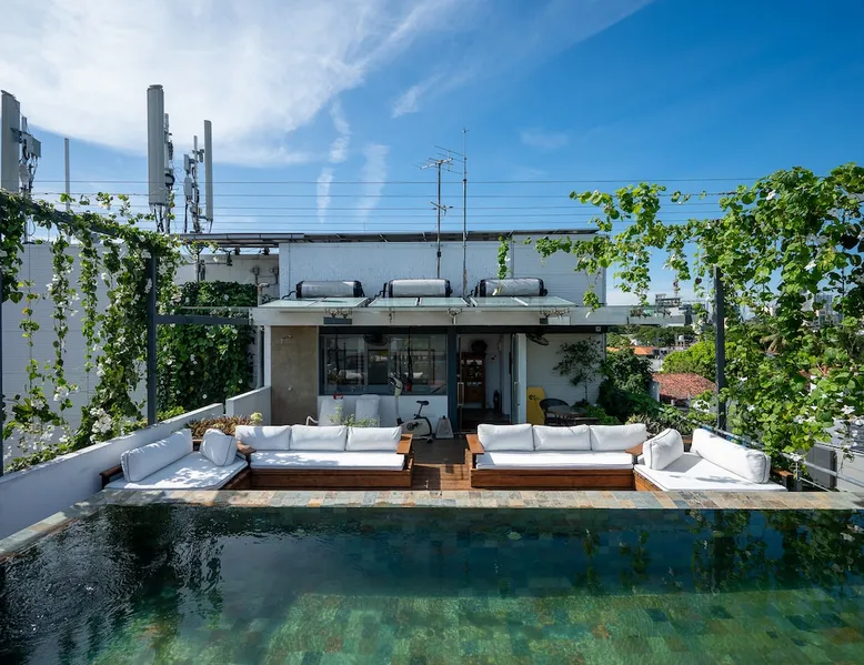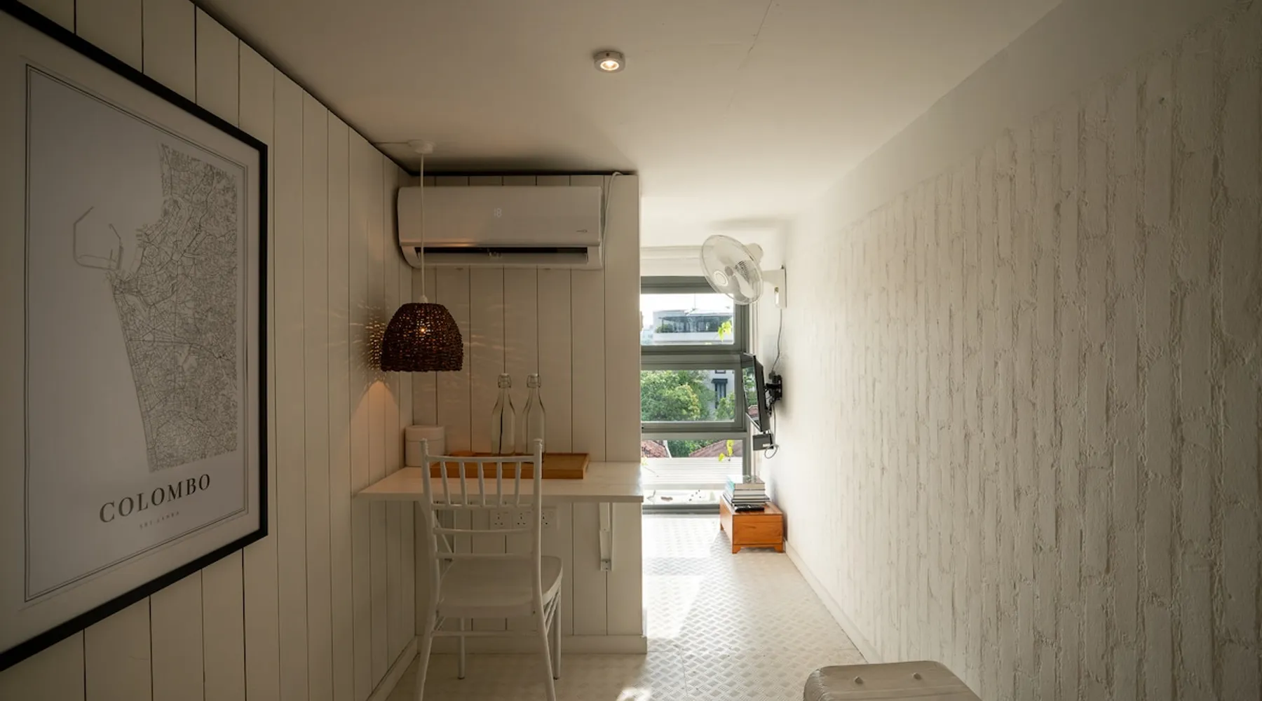 comfort. character. convenience Enjoying an abundance of natural light and ventilation, our tiny unique space sits aloft the tree canopies of neighbouring properties, with almost a defiant nod to the distant big city skyline. Stay with us and experience this charming 280sqft (26sqm) space that if full of tiny-house dwelling features. The space THE LOFT @ FIFTYFIVE offers a unique adventure steeped in comfort, convenience, and character. Designed for two, it can be your fun getaway for a few days, or home for a short-term work visit. The air-conditioned upper level of THE LOFT boasts a queen-mattress, dedicated workspace, and reading nook. Connected by an internal ladder, the lower level comprises a kitchen, washer/dryer, toilet, wardrobe, and alfresco dining area. Privacy is maintained with roller blinds, with blackout blinds on the upper level. The open-plan living spaces have been thoughtfully appointed to meet your every need - in a tiny space. Note: upper level headroom is ~74 inches (187cm) and is accessed by an internal ladder. The toilet with shower provides just enough space to get your jobs done! If you have any concerns; please discuss with us before making your booking. Guest access THE LOFT has a private entrance. The street-level entrance lobby with the elevator and stairs serve the units, rooftop terrace, pool and micro gym, and service areas. Other things to note A 40kva back-up generator gives uninterrupted power supply. Especially in times when the country is experiencing an extended period of dry weather, it's not unusual for the island to have power outages. Two bottles of drinking water are supplied to the apartment and a water dispenser is located in an easy to access location within the building for topping up. The rooftop pool (L20 feet x W6.5 feet x D3.25 feet) and the rooftop area are shared with other guests in the building. The building has five units with a combined maximum capacity of 15 guests. Caveat: The upper level headroom is ~74 inches (187cm) and is accessed by an internal ladder which requires a degree of flexibility of movement to manoeuvre. The upper living level is fully airconditioned. The lower level with the kitchen, toilet, and alfresco dining corner is not airconditioned. The alfresco dining corner with a wall-mounted fan opens out to a small balcony. The toilet with shower provides just enough space to get your jobs done! If you have any concerns; please discuss with us before making your booking.